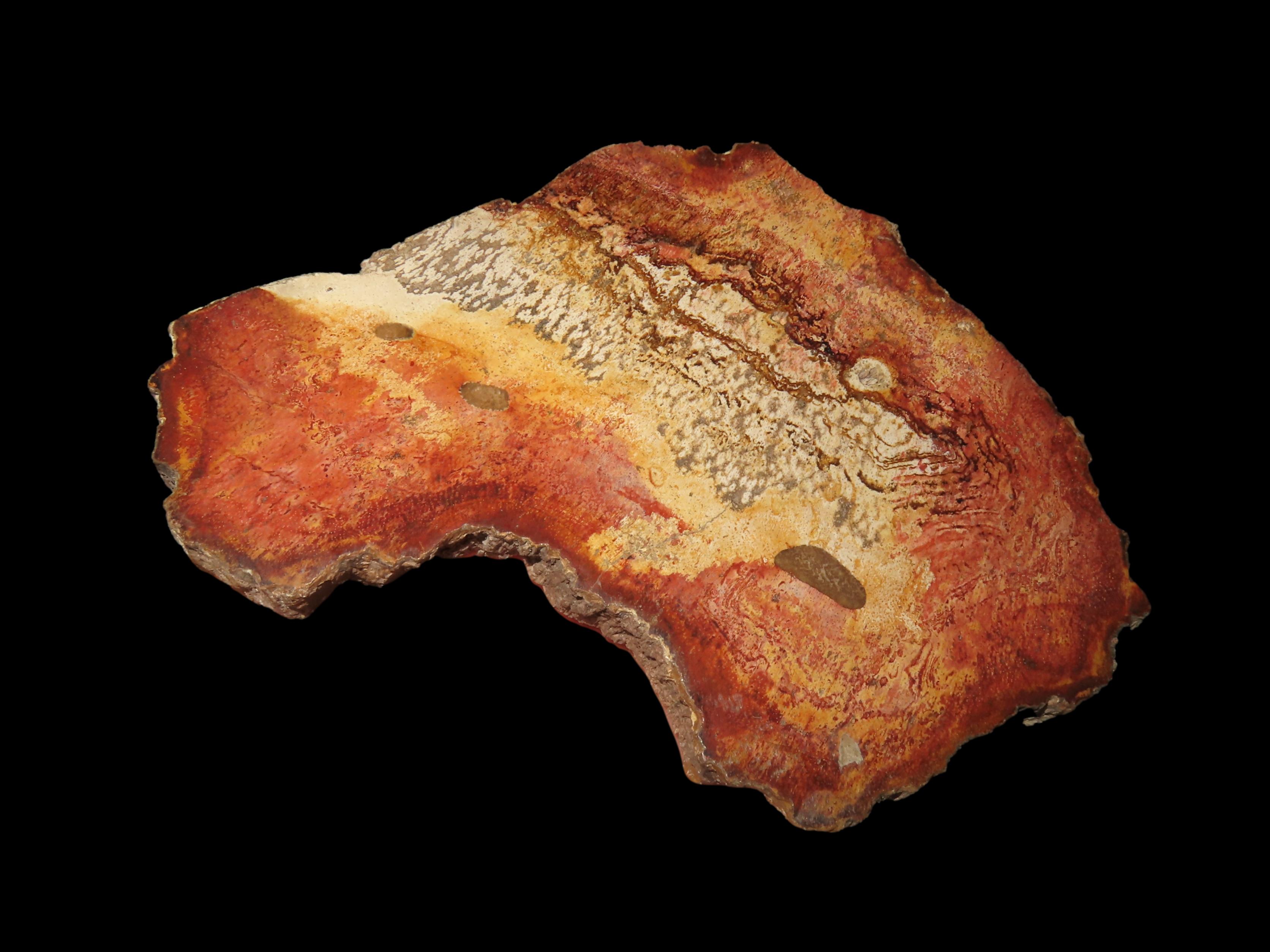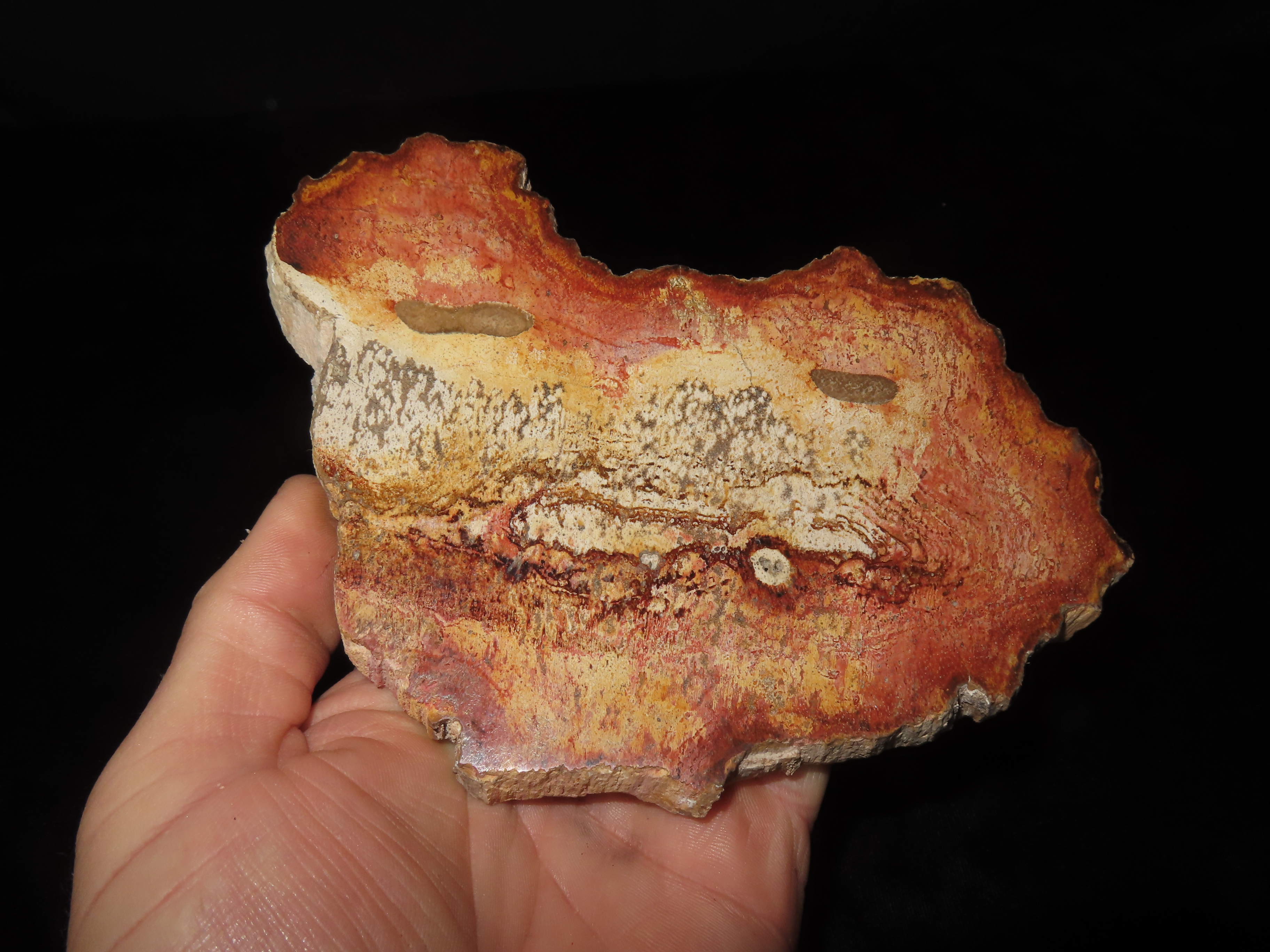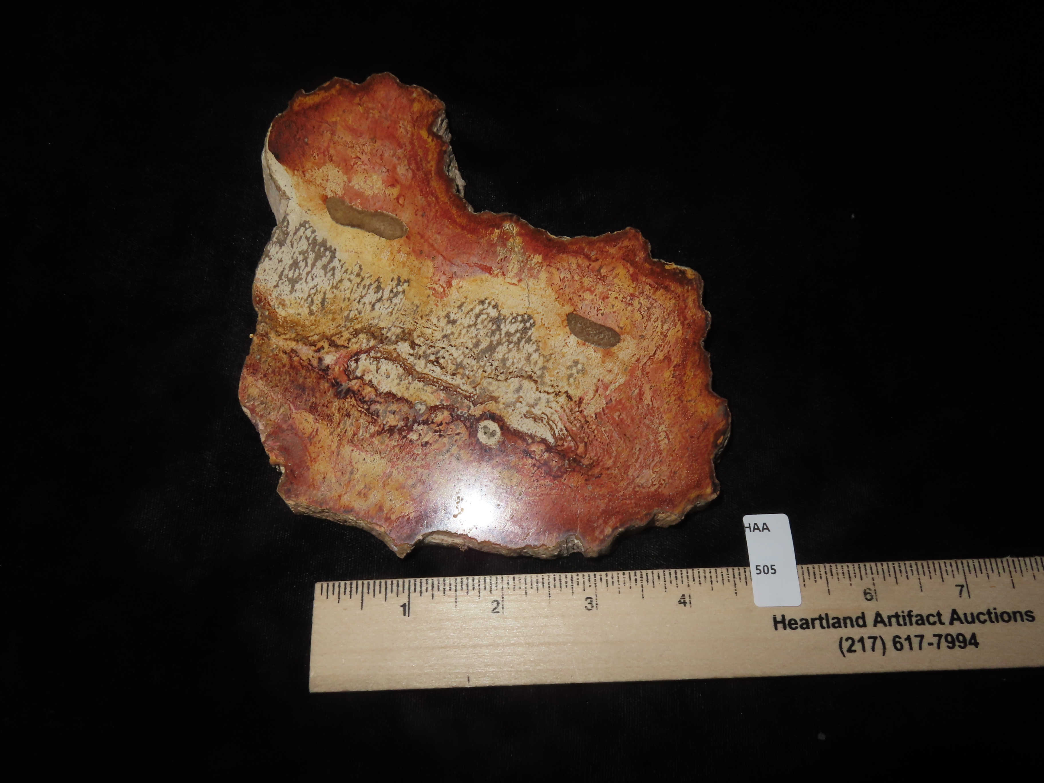 BEAUTIFUL LARGE 7″ SLAB OF PETRIFIED WOOD WITH SOME GREAT COLOR, NICELY POLISHED ON BOTH FACES, GREAT DISPLAY PIECE