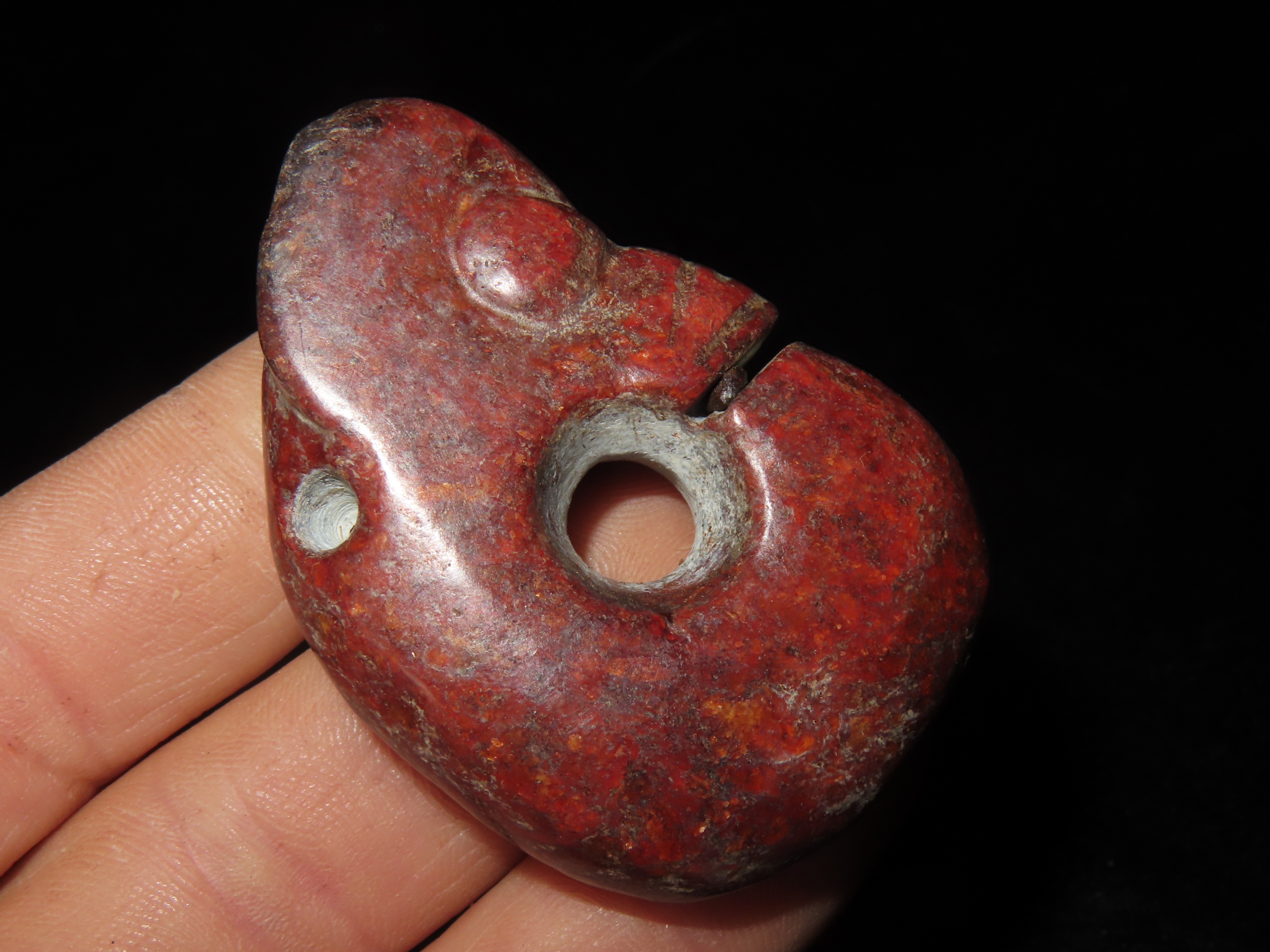 ANTIQUE CHINESE HONGSHAN CULTURE JADE EFFIGY PENDANT, HAND MADE
