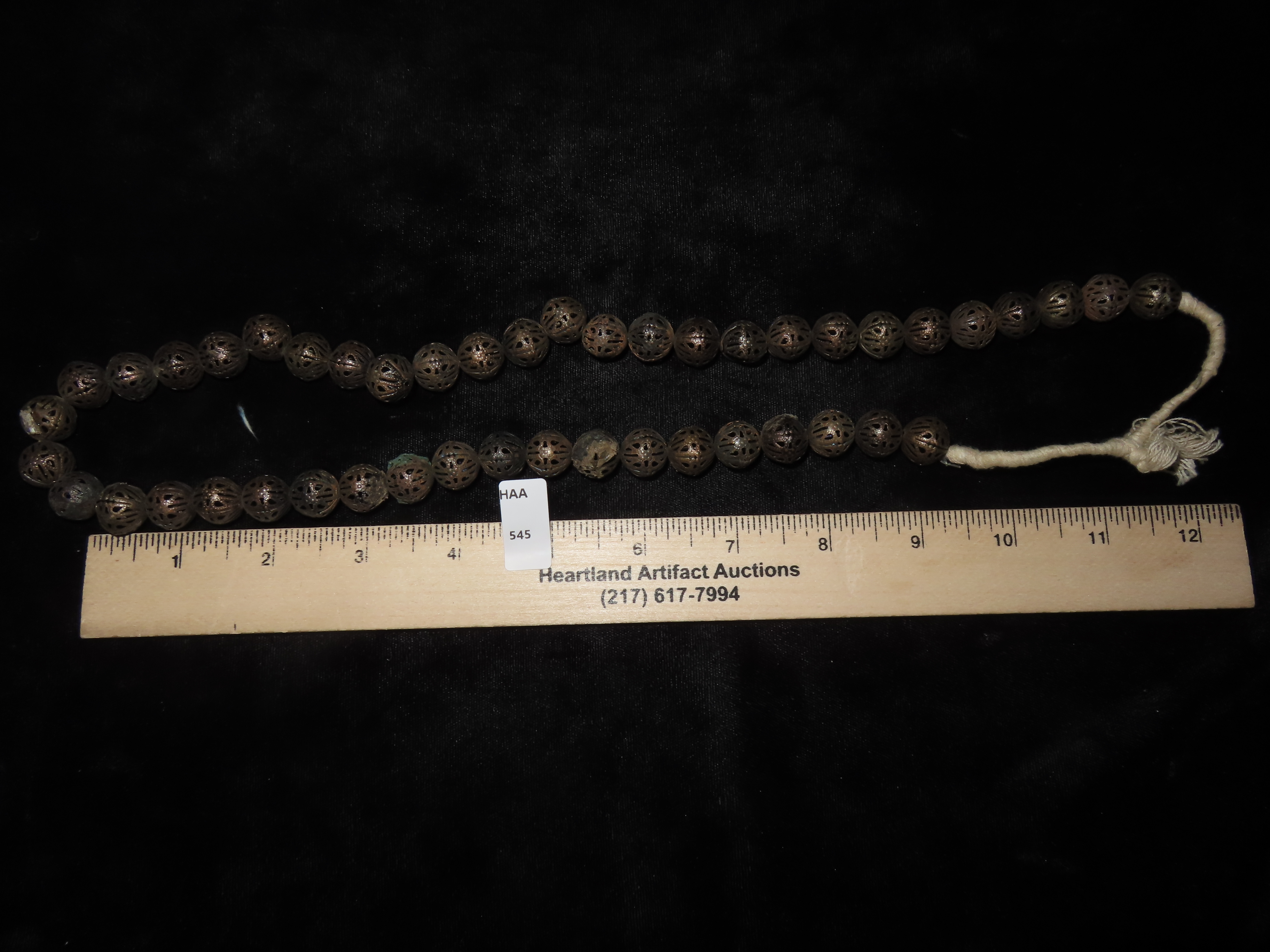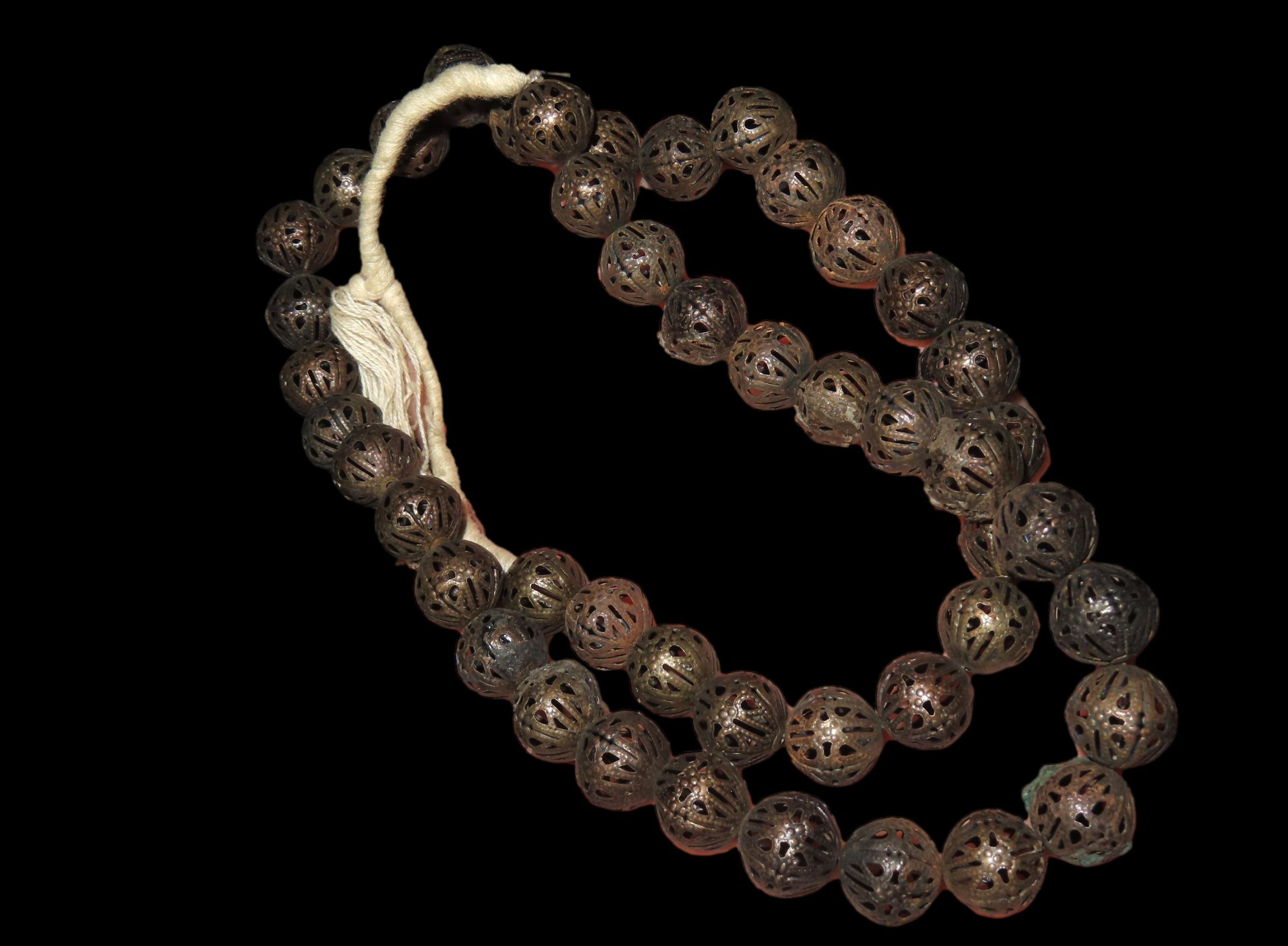 LONG STRAND OF VERY ORNATE COPPER BEADS FROM AFRICA, NICE LARGE NECKLACE