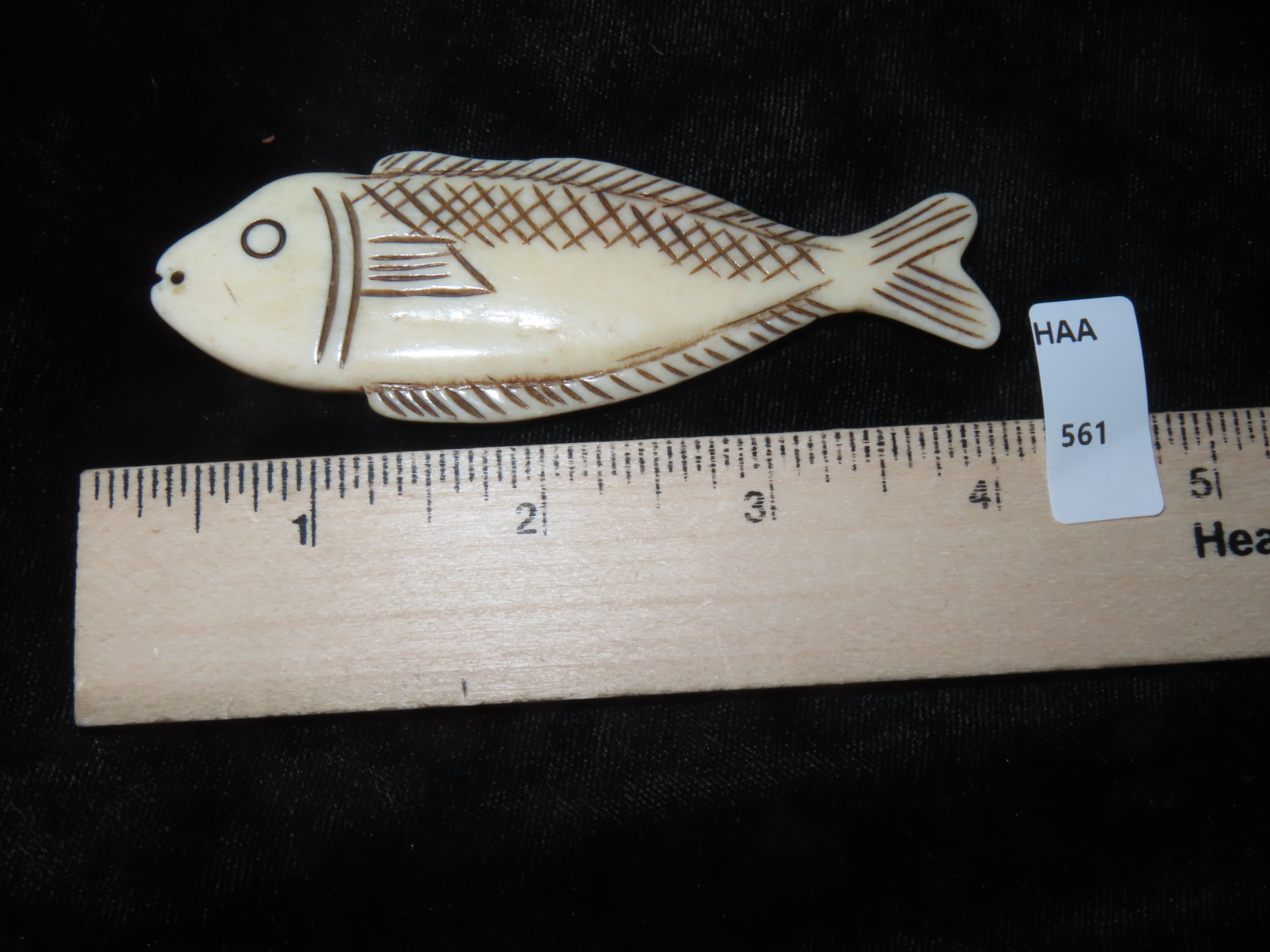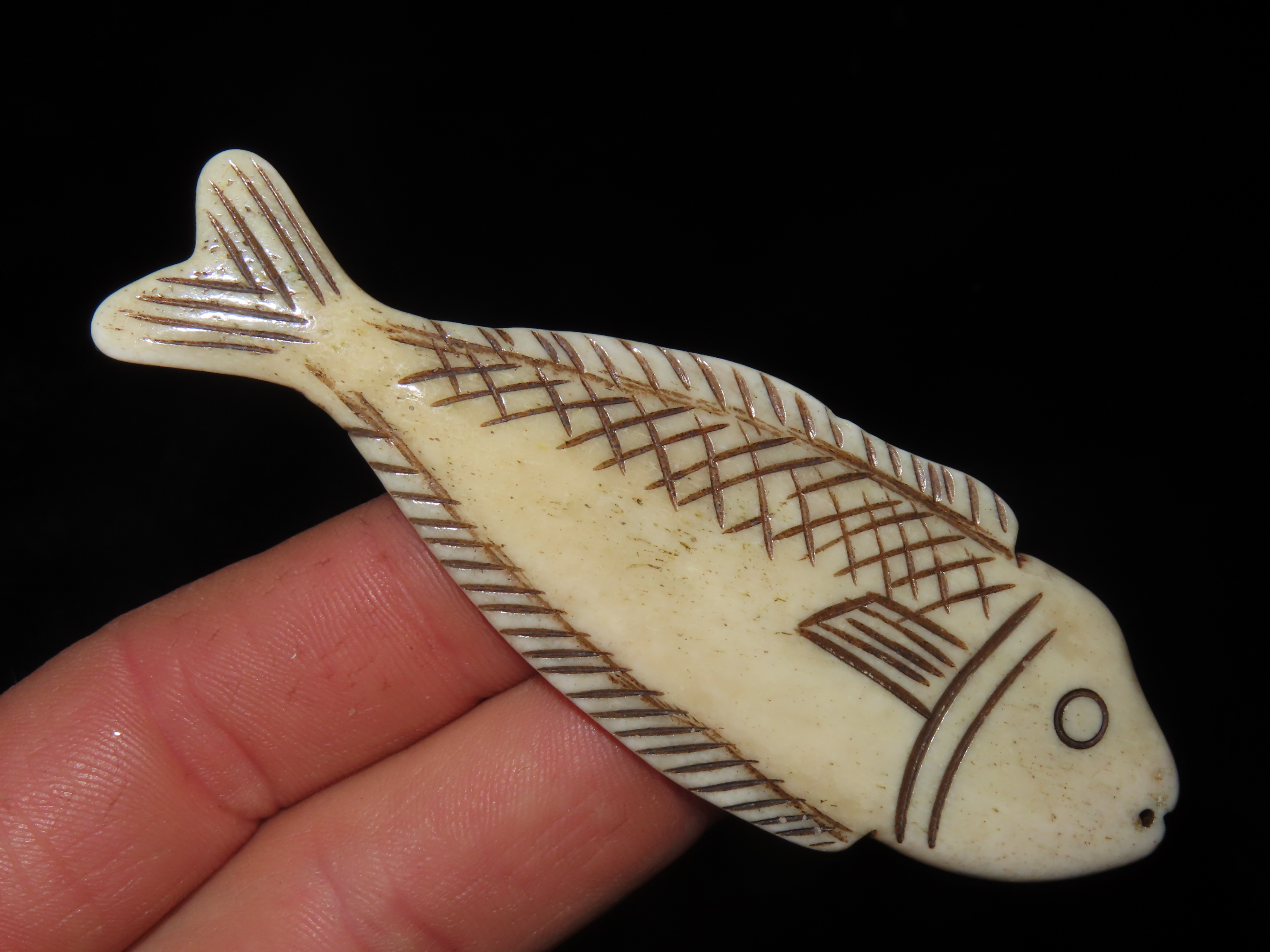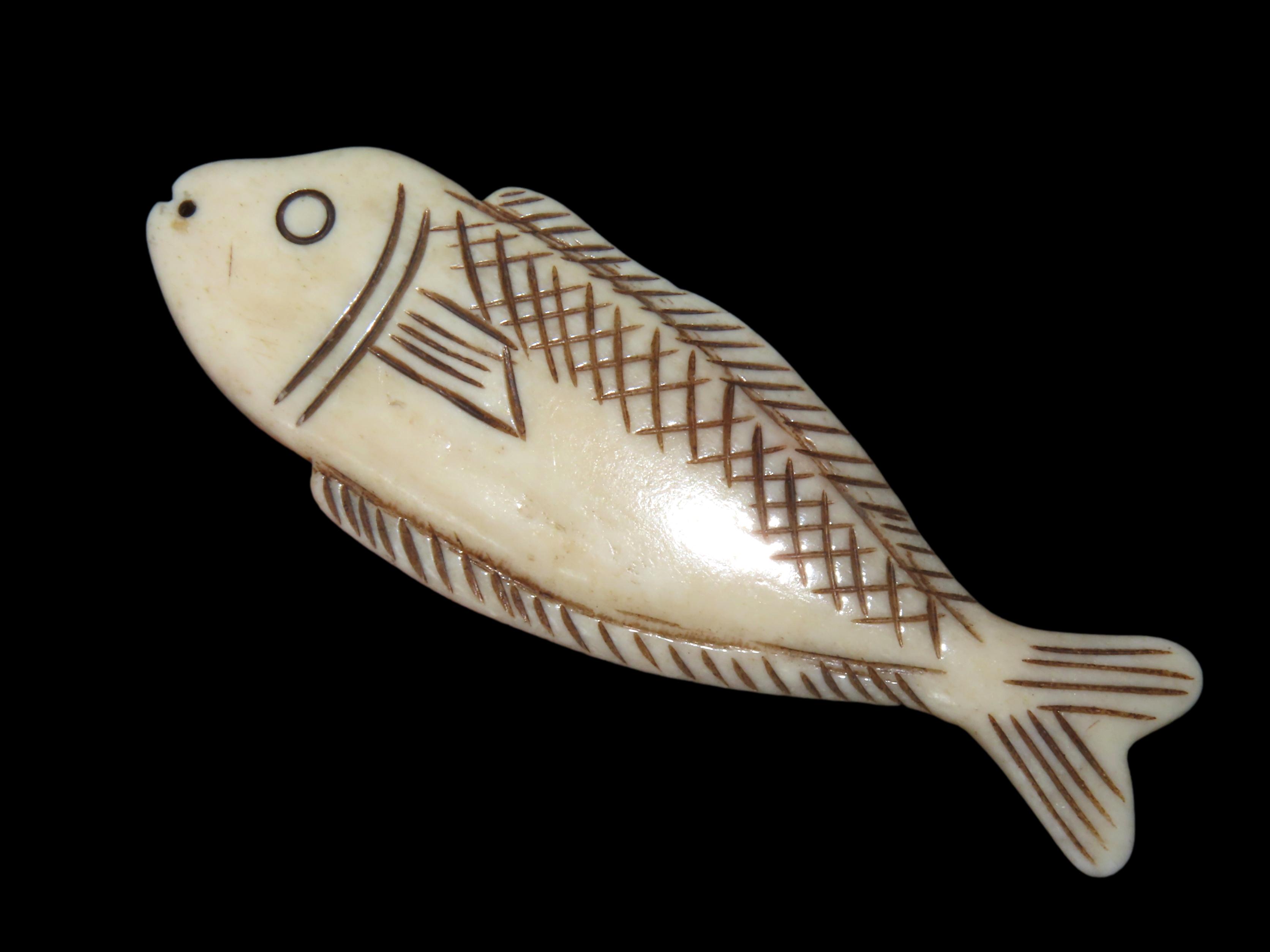 ANTIQUE HAND CARVED AFRICAN FISH EFFIGY PENDANT, CARVED FROM BONE