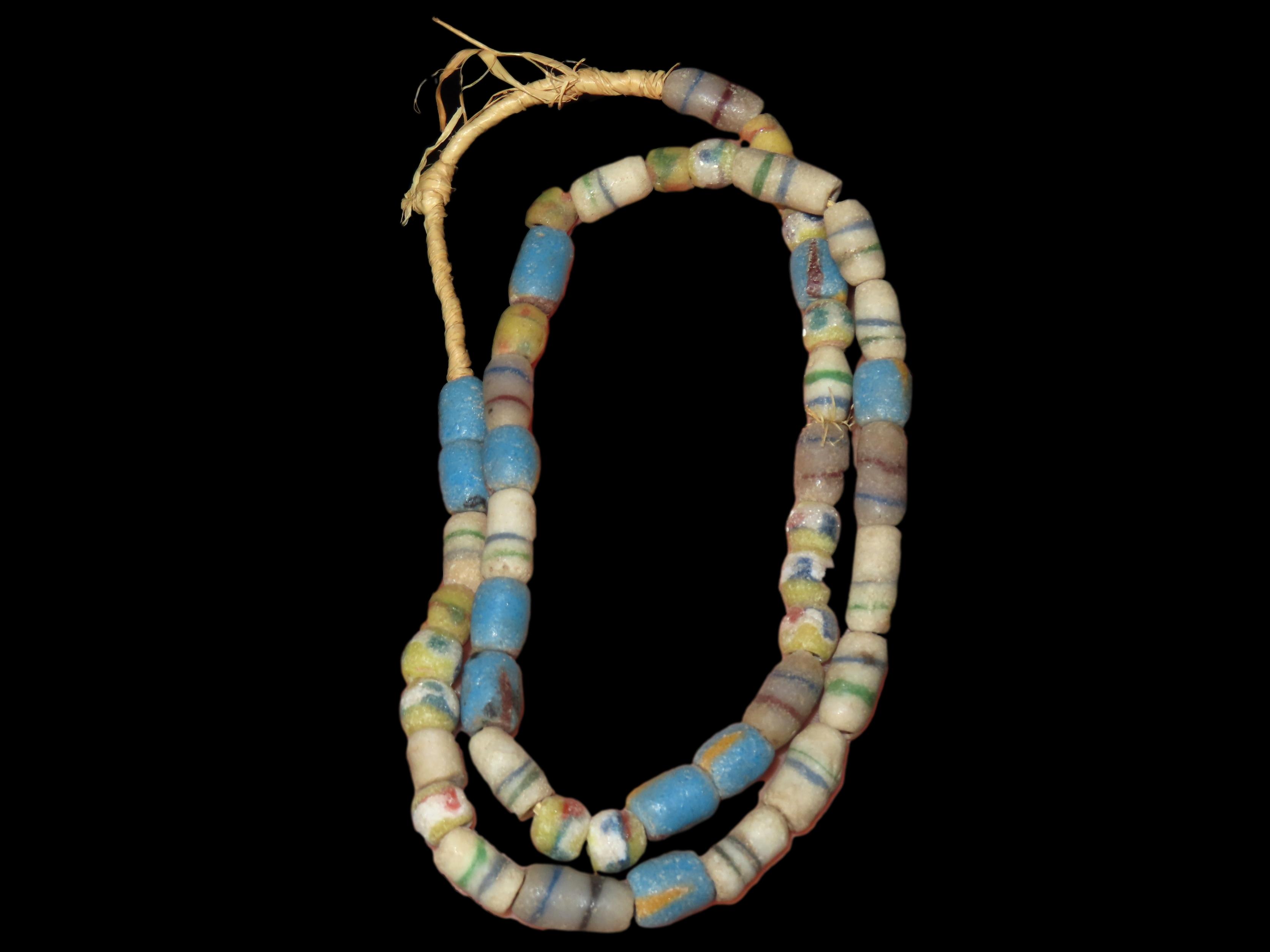 COLORFUL STRAND OF SAND CAST TRADE BEADS FROM AFRICA, GREAT COLOR, NICE NECKLACE OF BEADS