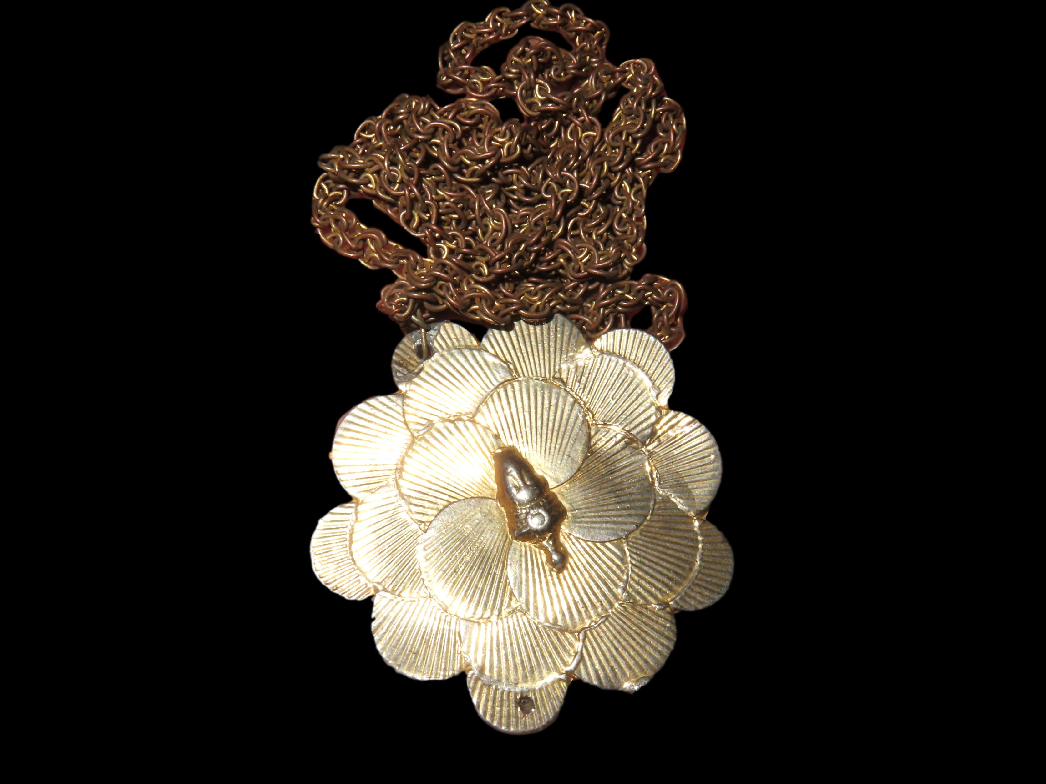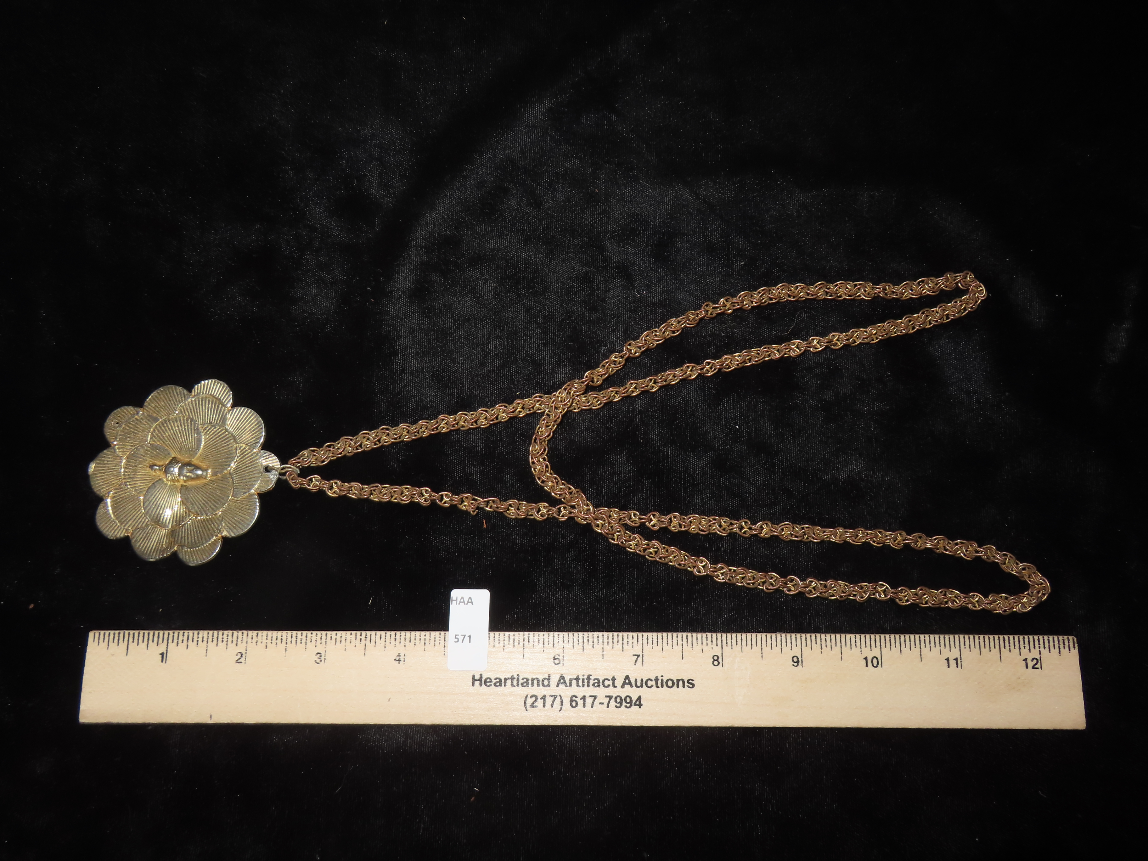 34″ LONG ORNATE METAL NECKLACE & PENDANT FROM AFRICA, NICE LARGE NECKLACE