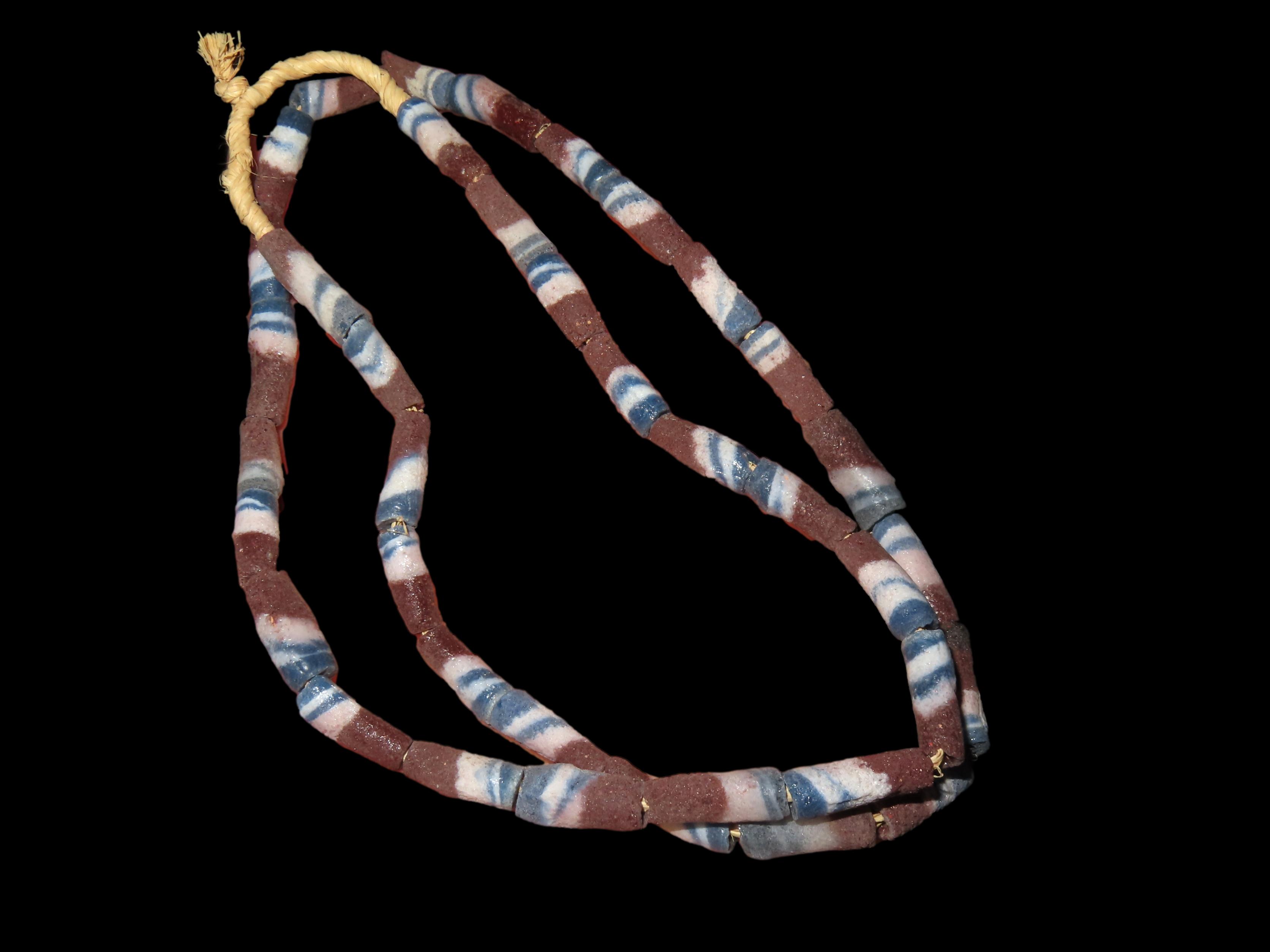 COLORFUL STRAND OF SAND CAST TRADE BEADS FROM AFRICA, GREAT COLOR, NICE NECKLACE OF BEADS
