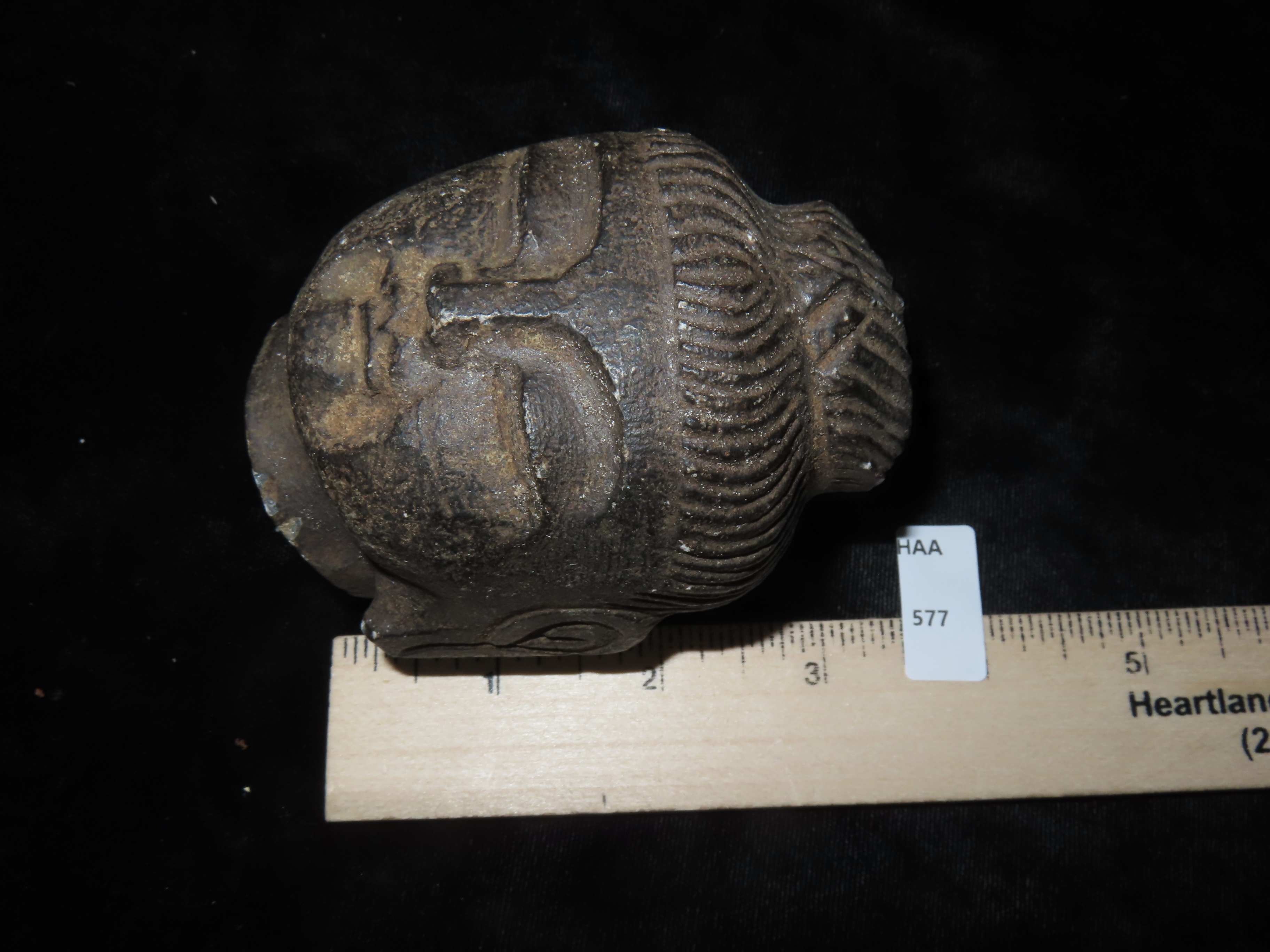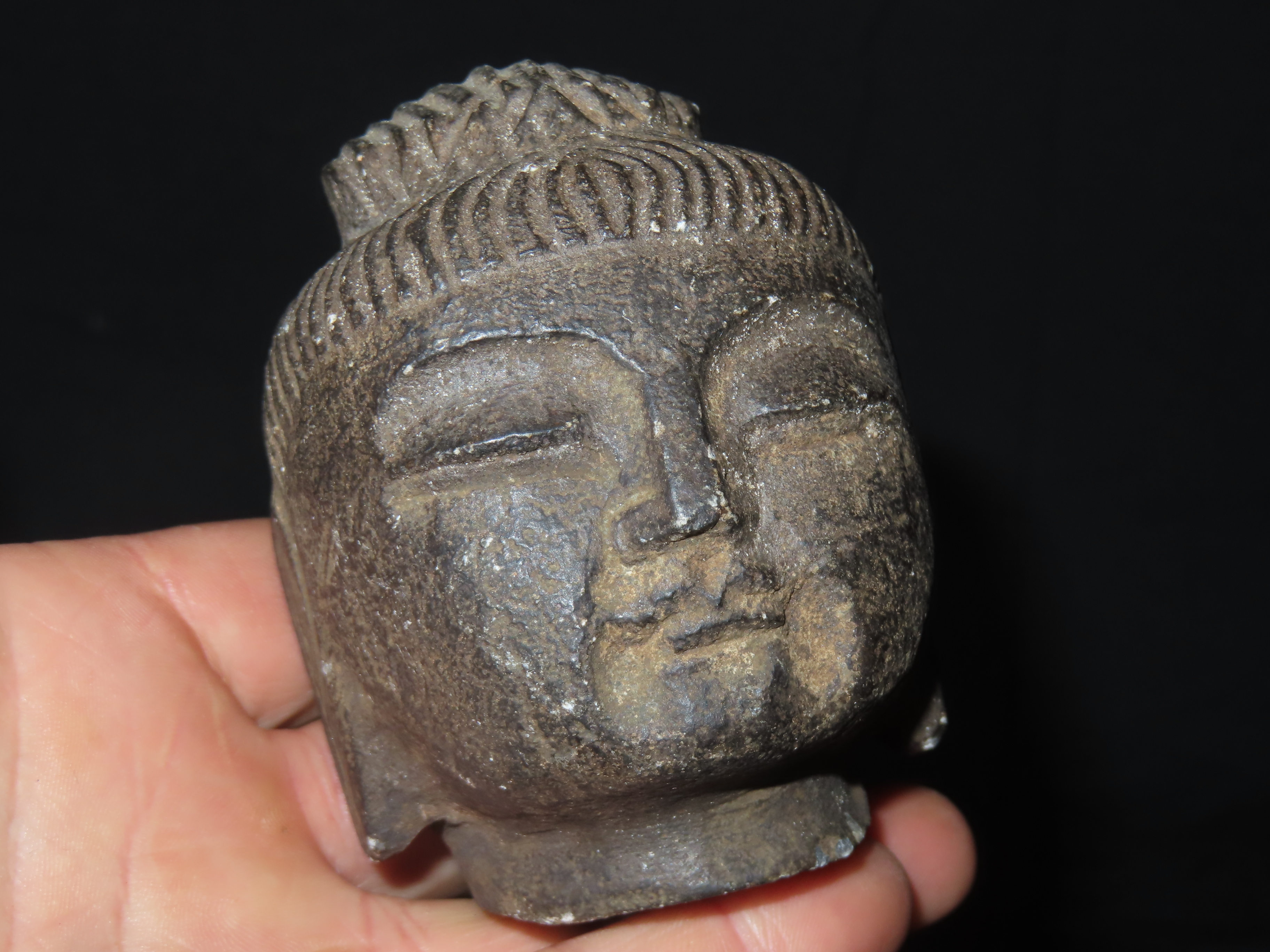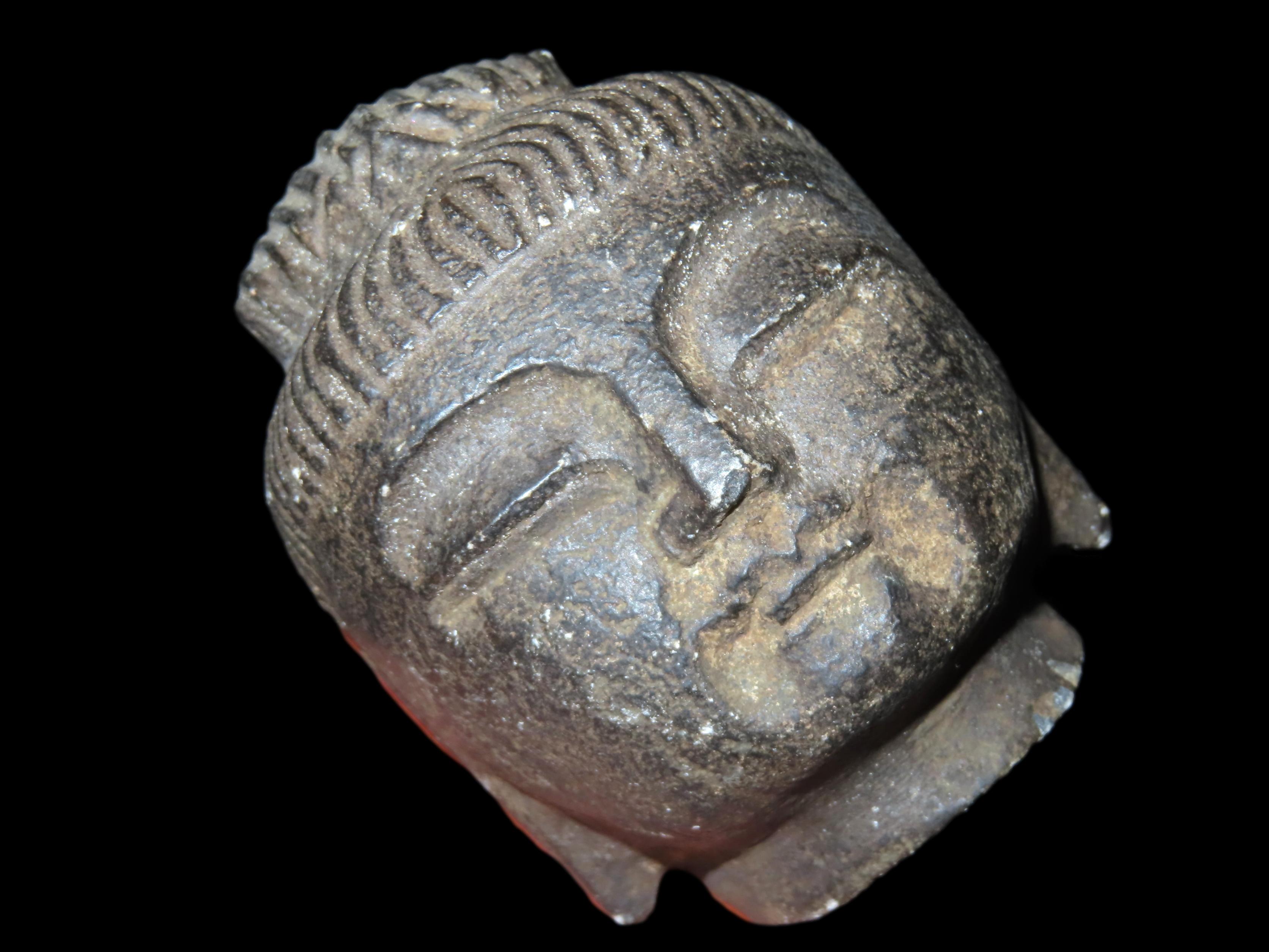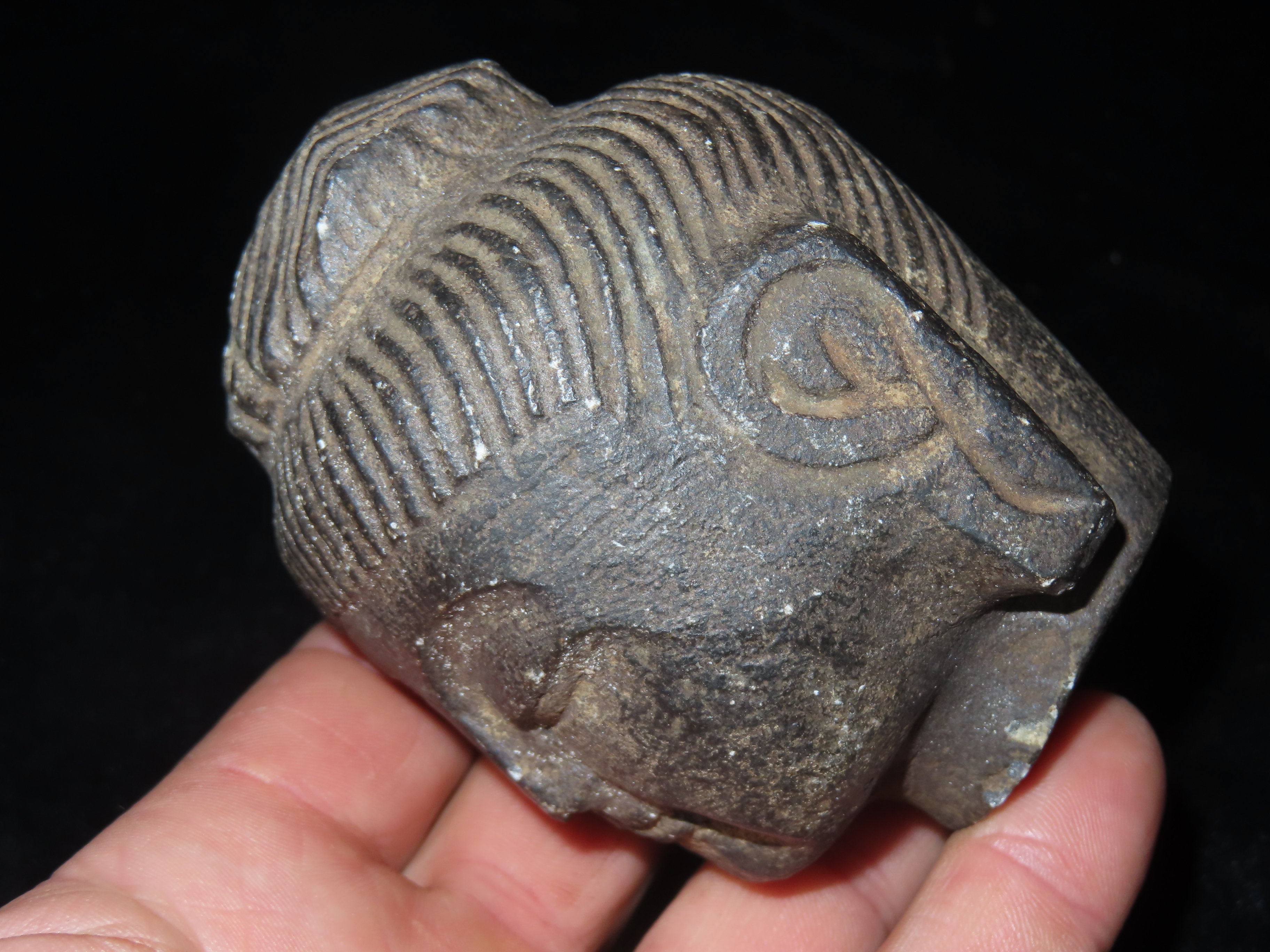 CARVED STONE ASIAN HEAD, NICE DETAIL
