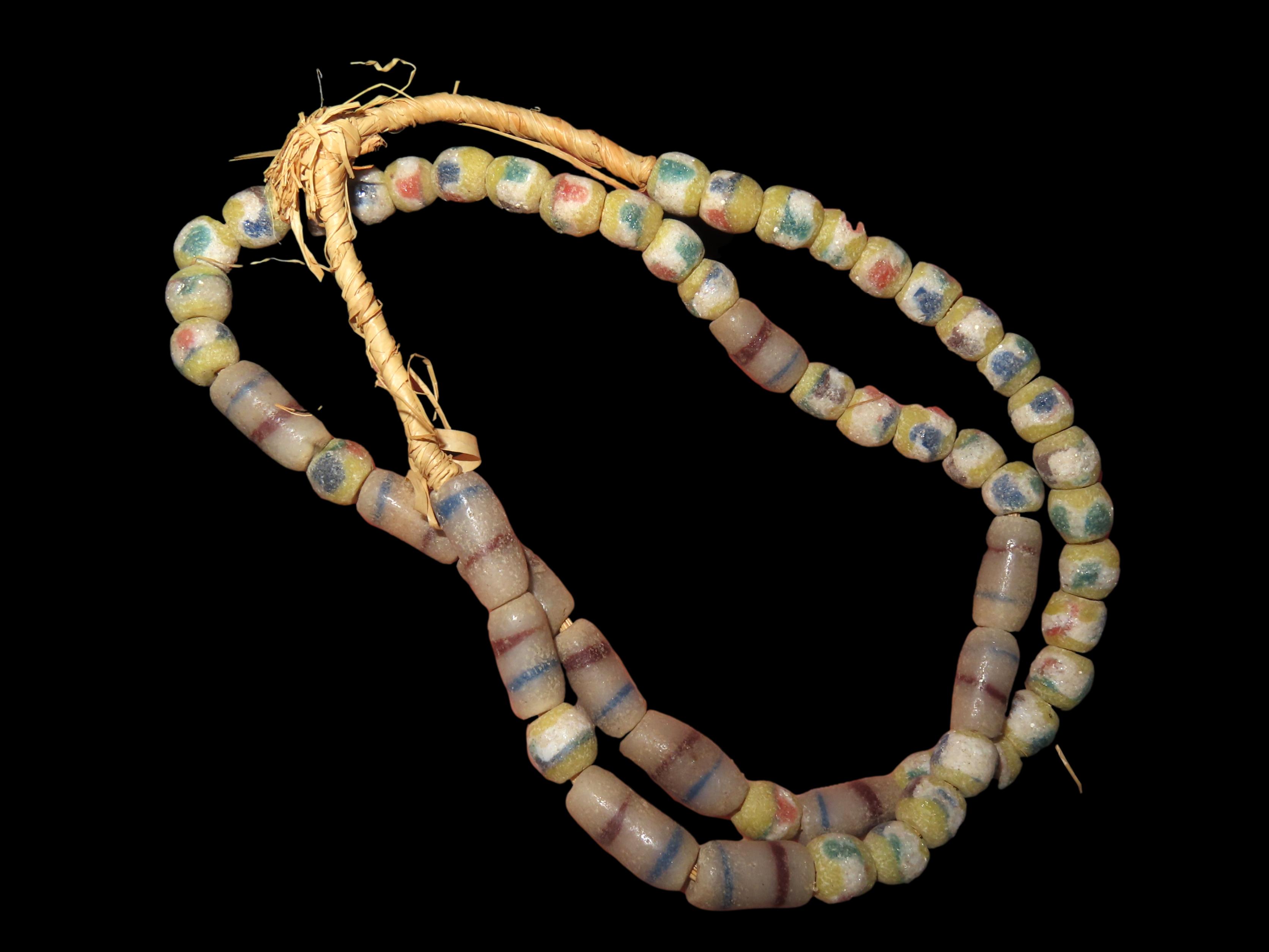 COLORFUL STRAND OF SAND CAST TRADE BEADS FROM AFRICA, GREAT COLOR, NICE NECKLACE OF BEADS
