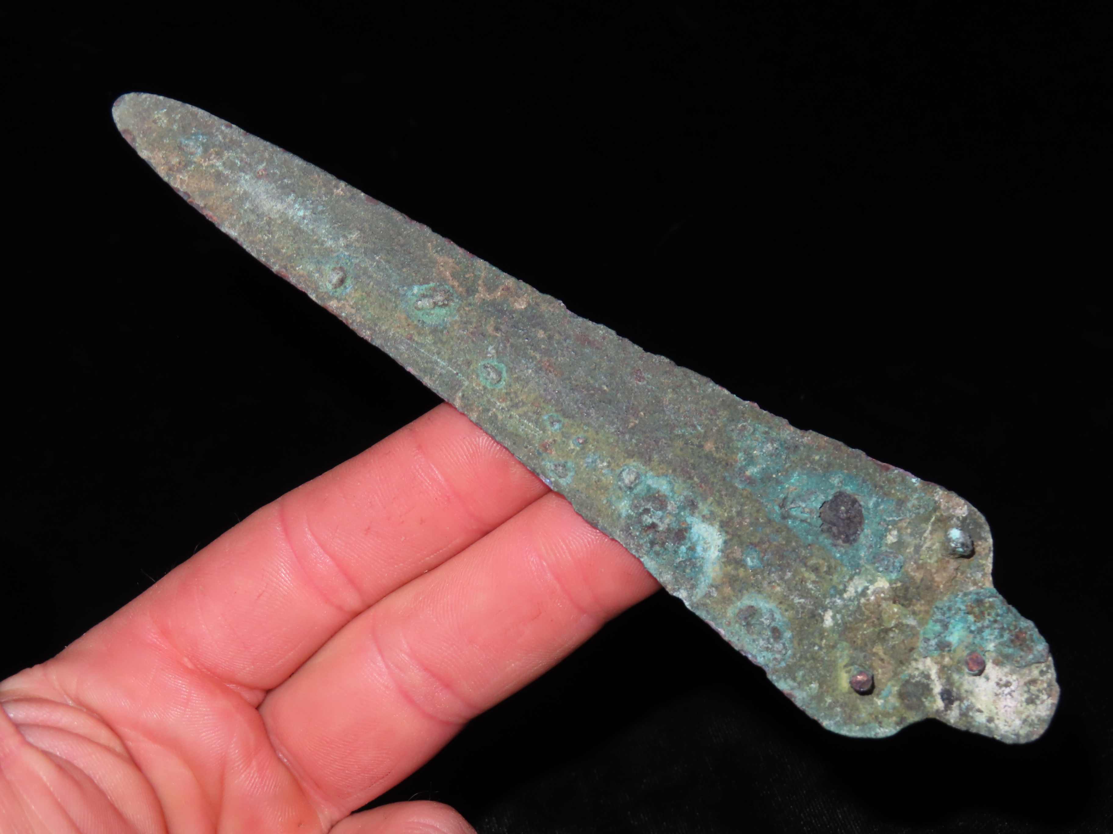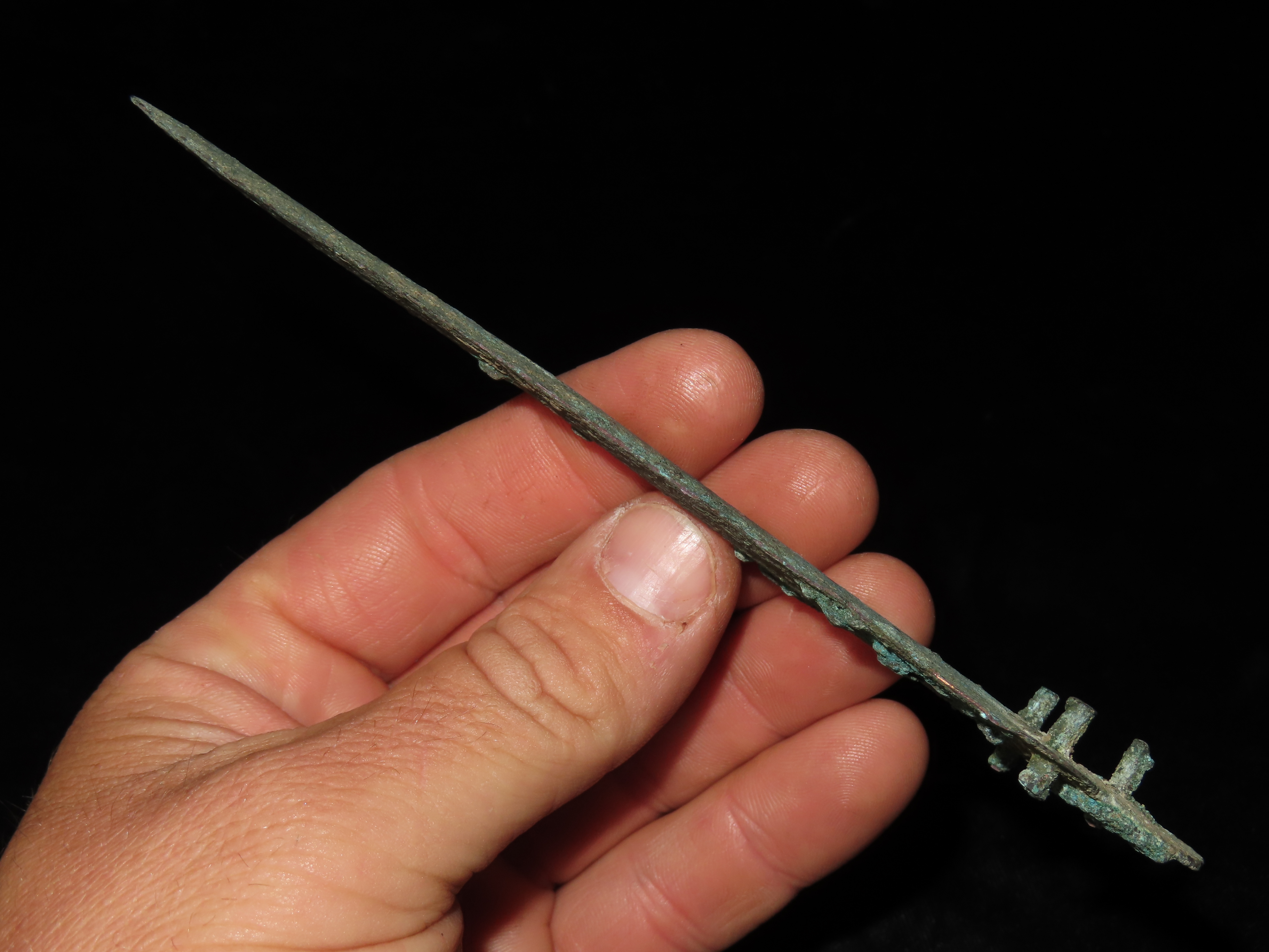 6 1/4″ ROMAN VIKING BRONZE AGE SPEAR TIP, KNIFE, DAGGER, GREAT OLD EXAMPLE, FOUND IN EUROPE, AMAZING PATINA