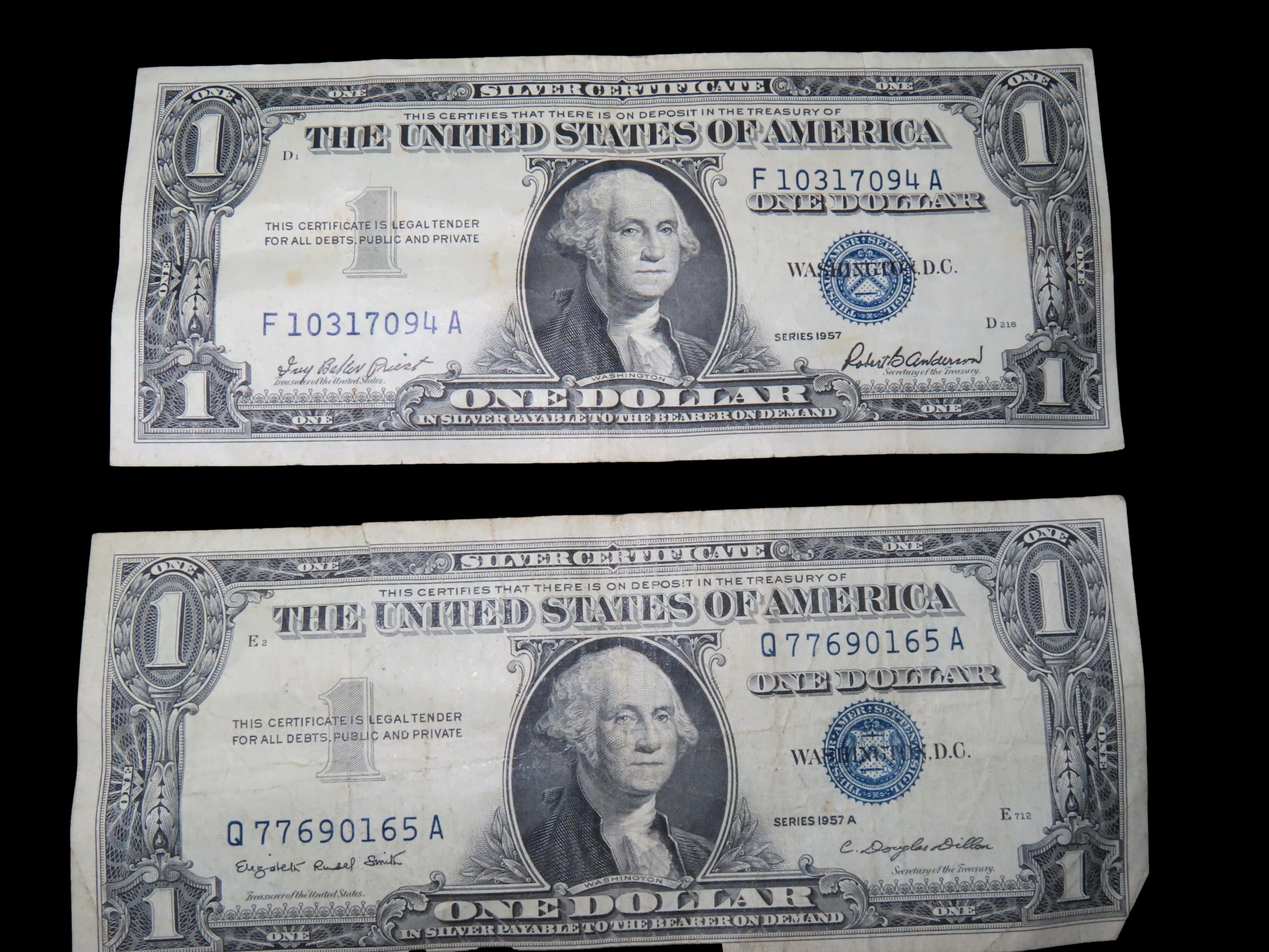 PAIR OF EARLY SILVER CERTIFICATES FROM 1957, GREAT CONDITION