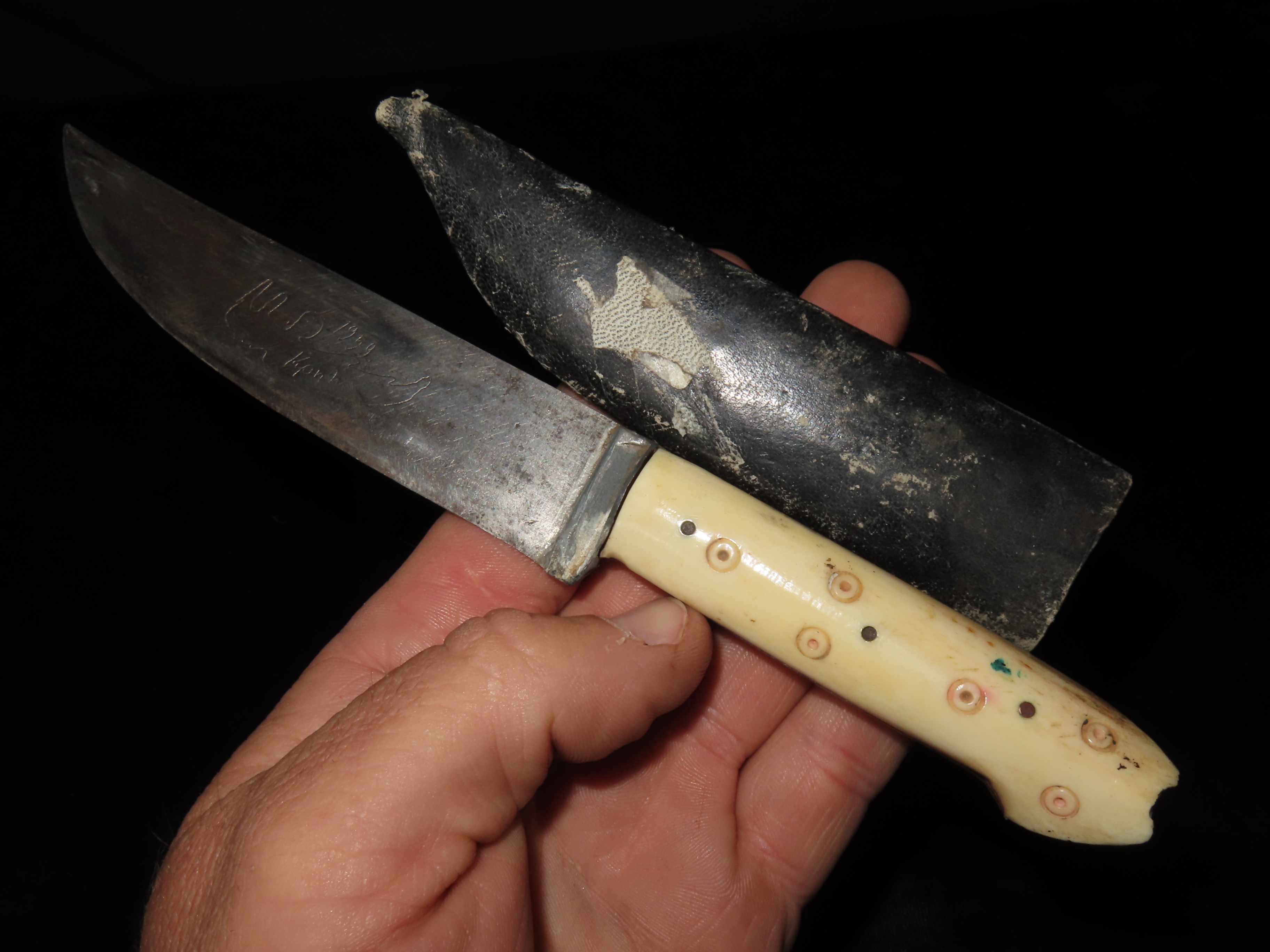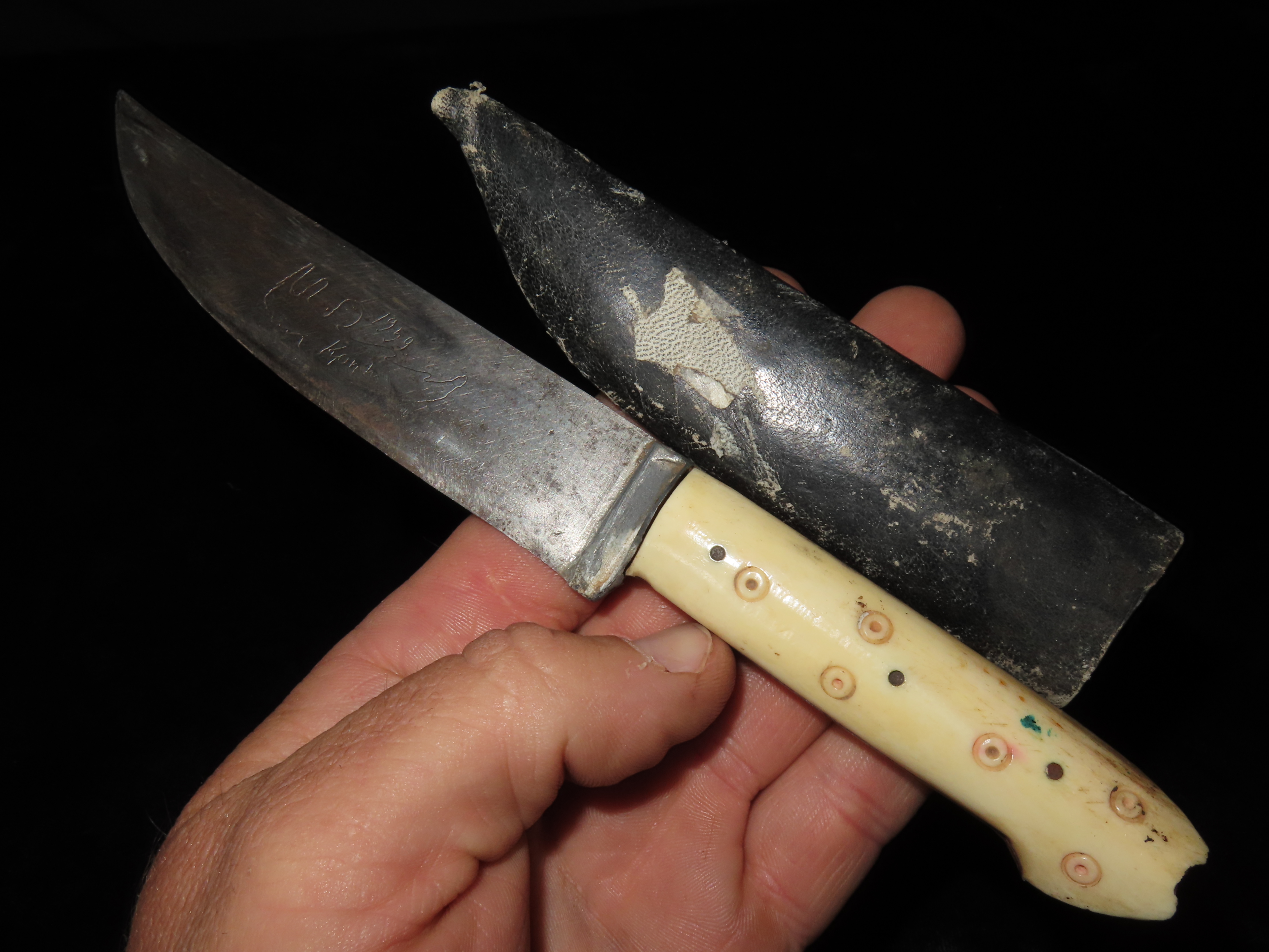 VINTAGE IVORY HANDLE KNIFE WITH CUSTOM MADE SHEATH