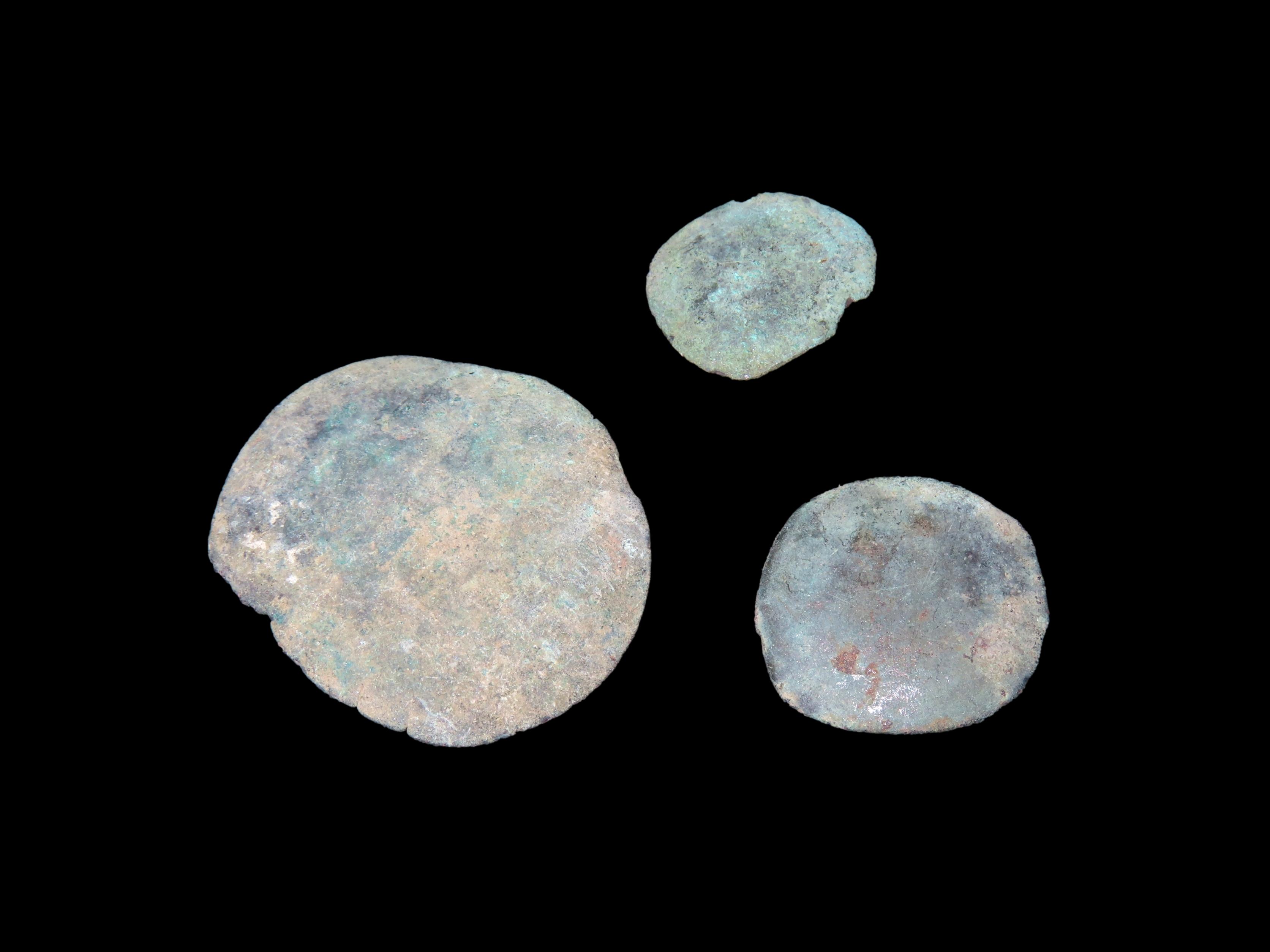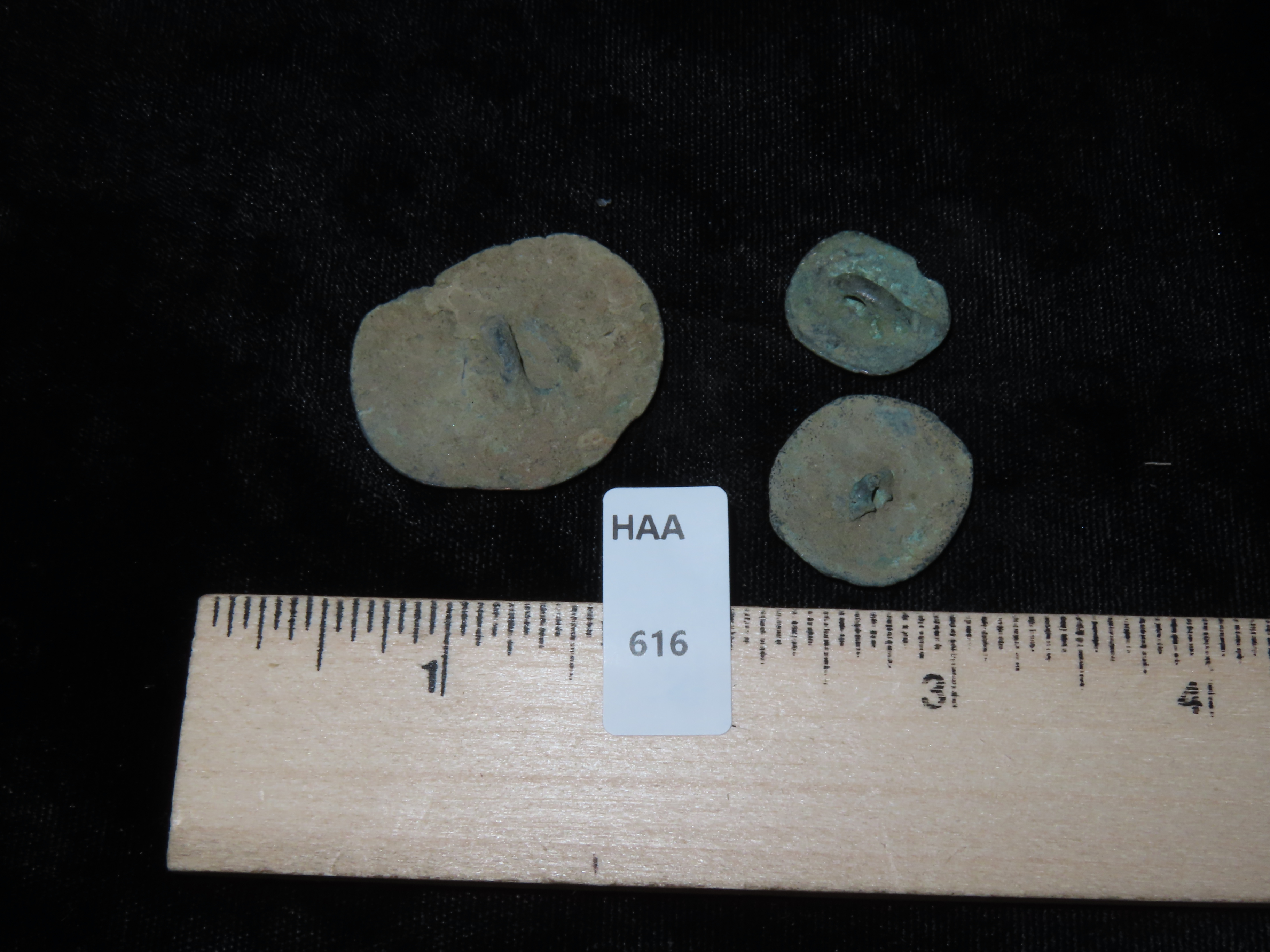 LOT OF 3 ORIGINAL ROMAN HAND MADE BRASS BUTTONS, INTERESTING AUTHENTIC PERIOD RELICS