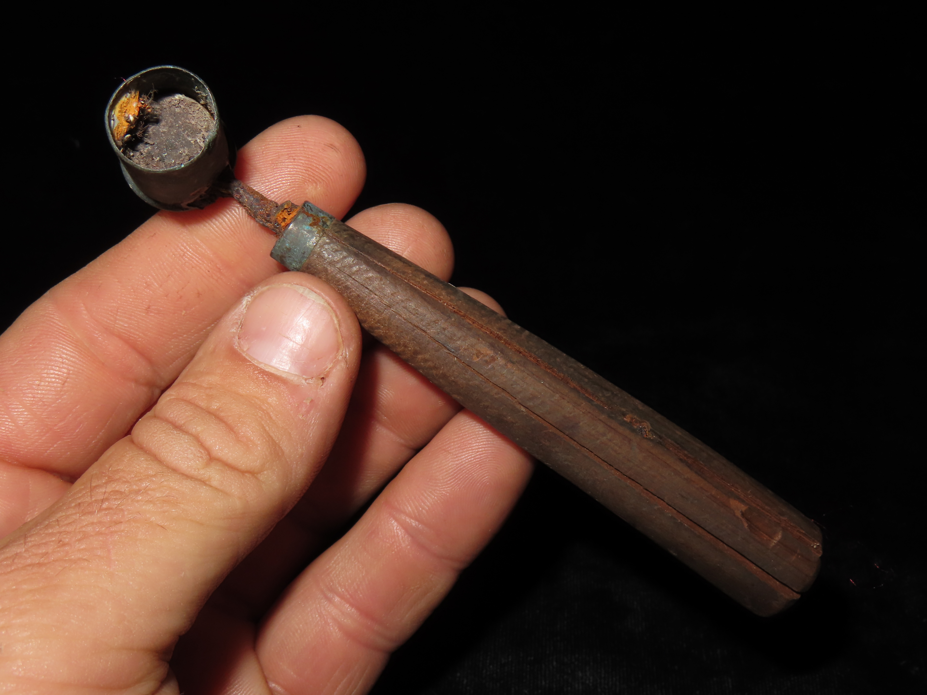 RARE CIVIL WAR POWDER MEASURING CUP, FIELD MADE FOR PERSONAL USE IN WAR TIMES, USING A SPENT SHELL CARTRIDGE