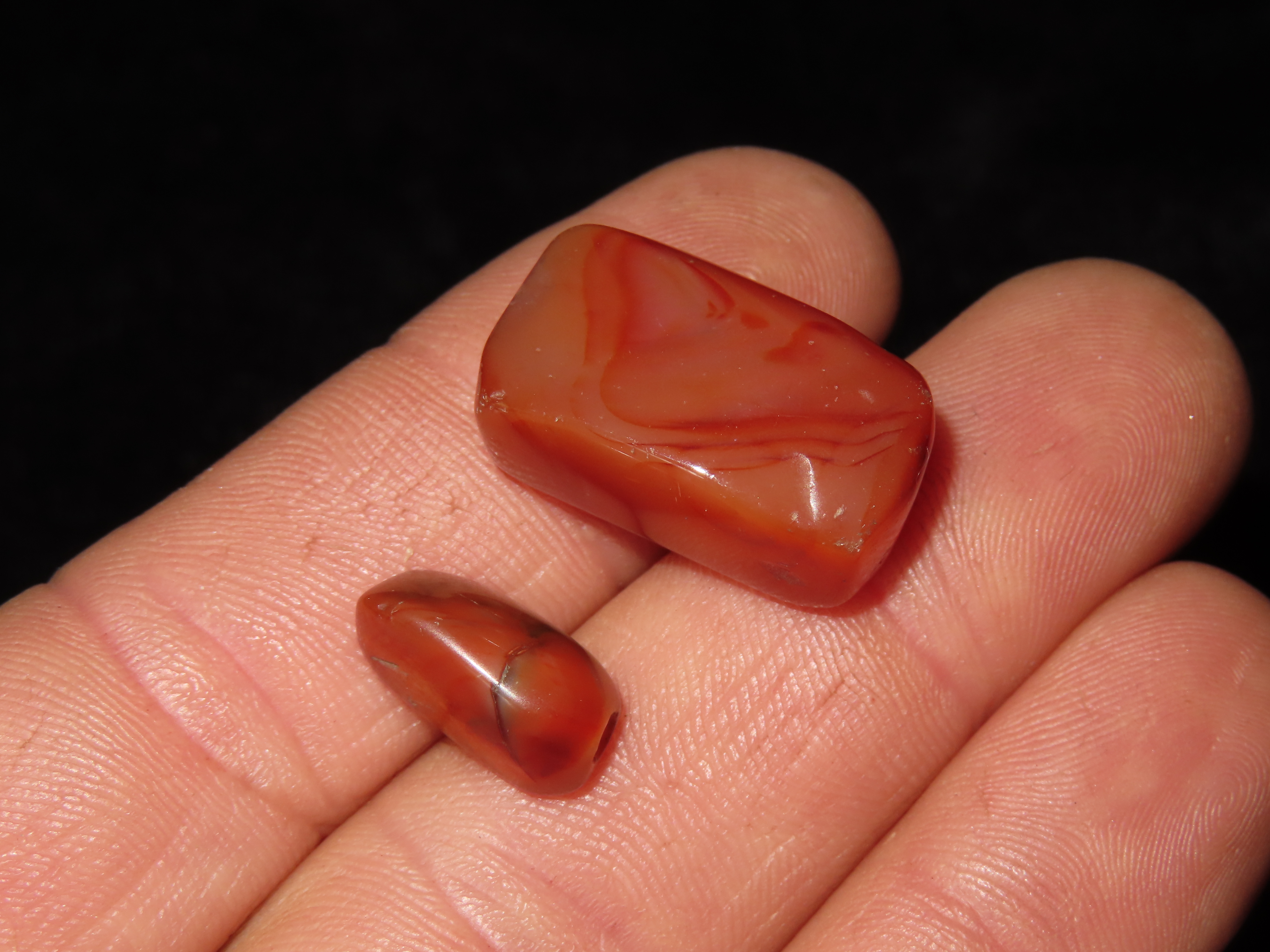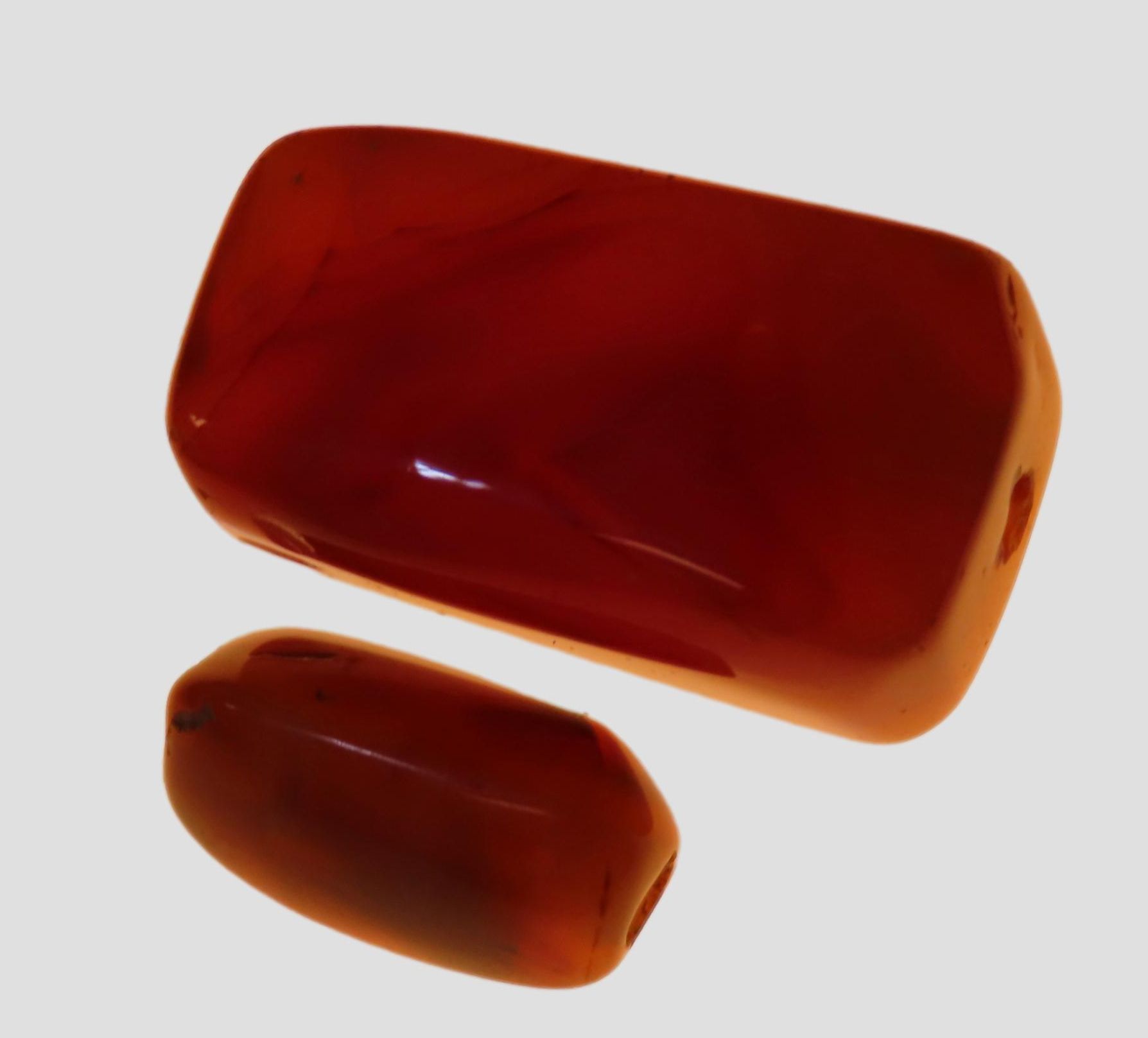 BEAUTIFUL PAIR OF ROMAN DRILLED AGATE BEADS, HIGHLY POLISHED WITH GREAT COLOR, AUTHENTIC ORIGINAL PEERIOD RELICS