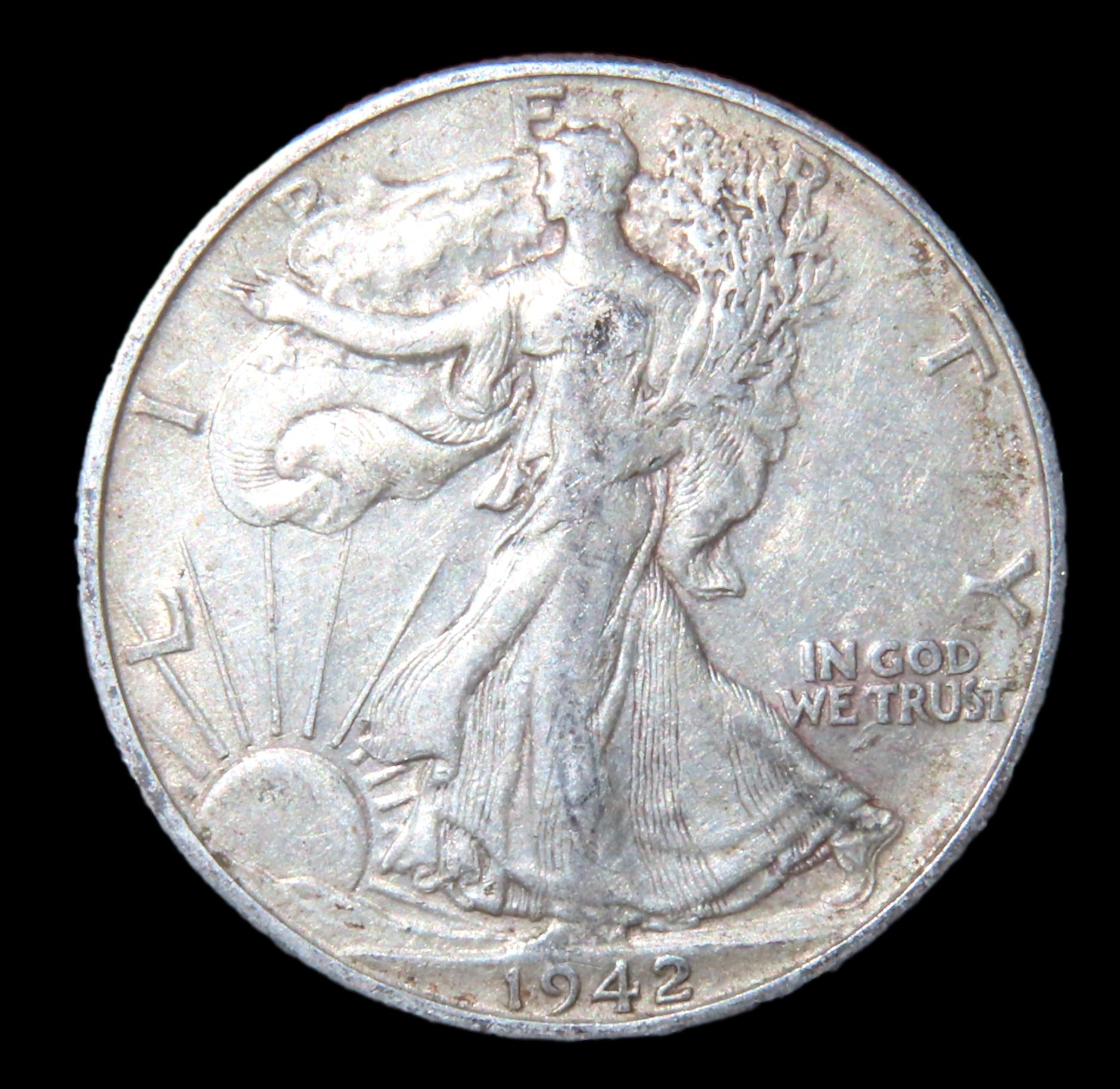 1942-D WALKING LIBERTY SILVER HALF DOLLAR, GREAT ORIGINAL CONDITION, EARLY US SILVER COIN