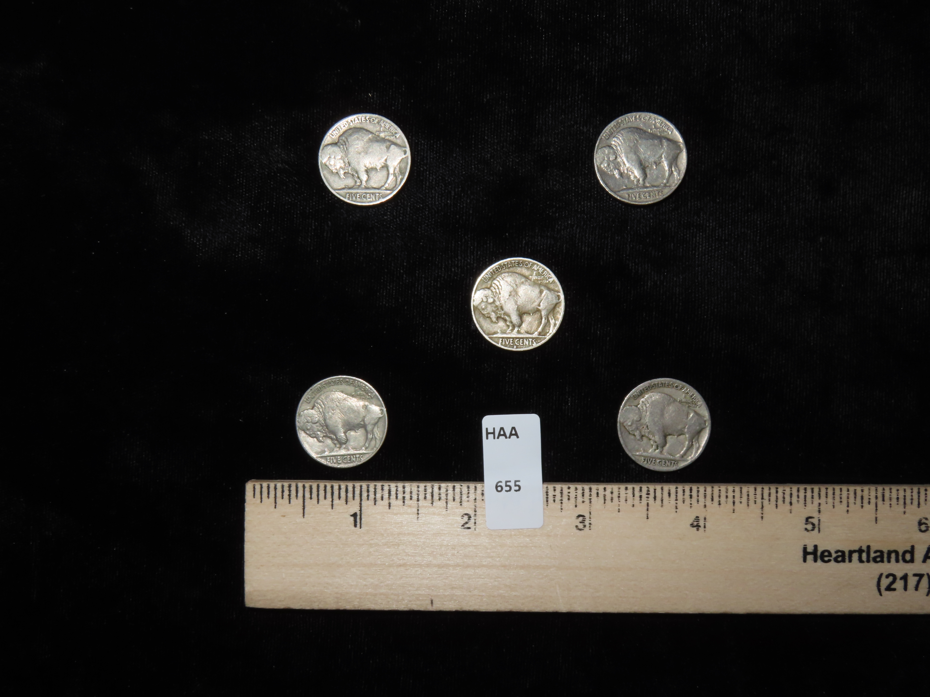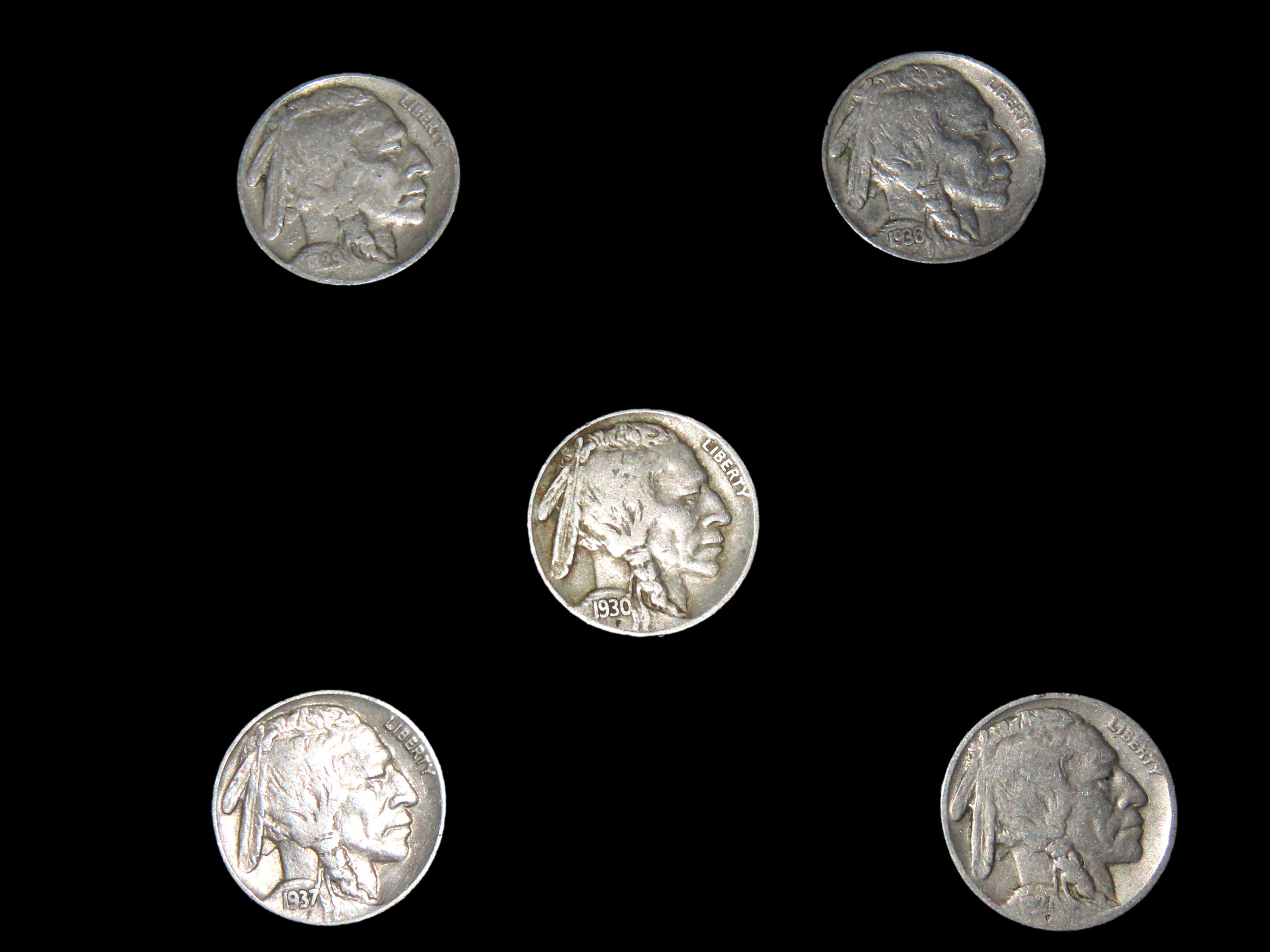 LOT OF 5 BUFFALO NICKELS FROM 1920’S & 1930’S, ALL BETTER CONDITION WITH FULL DATES, INDIAN HEAD DESIGN
