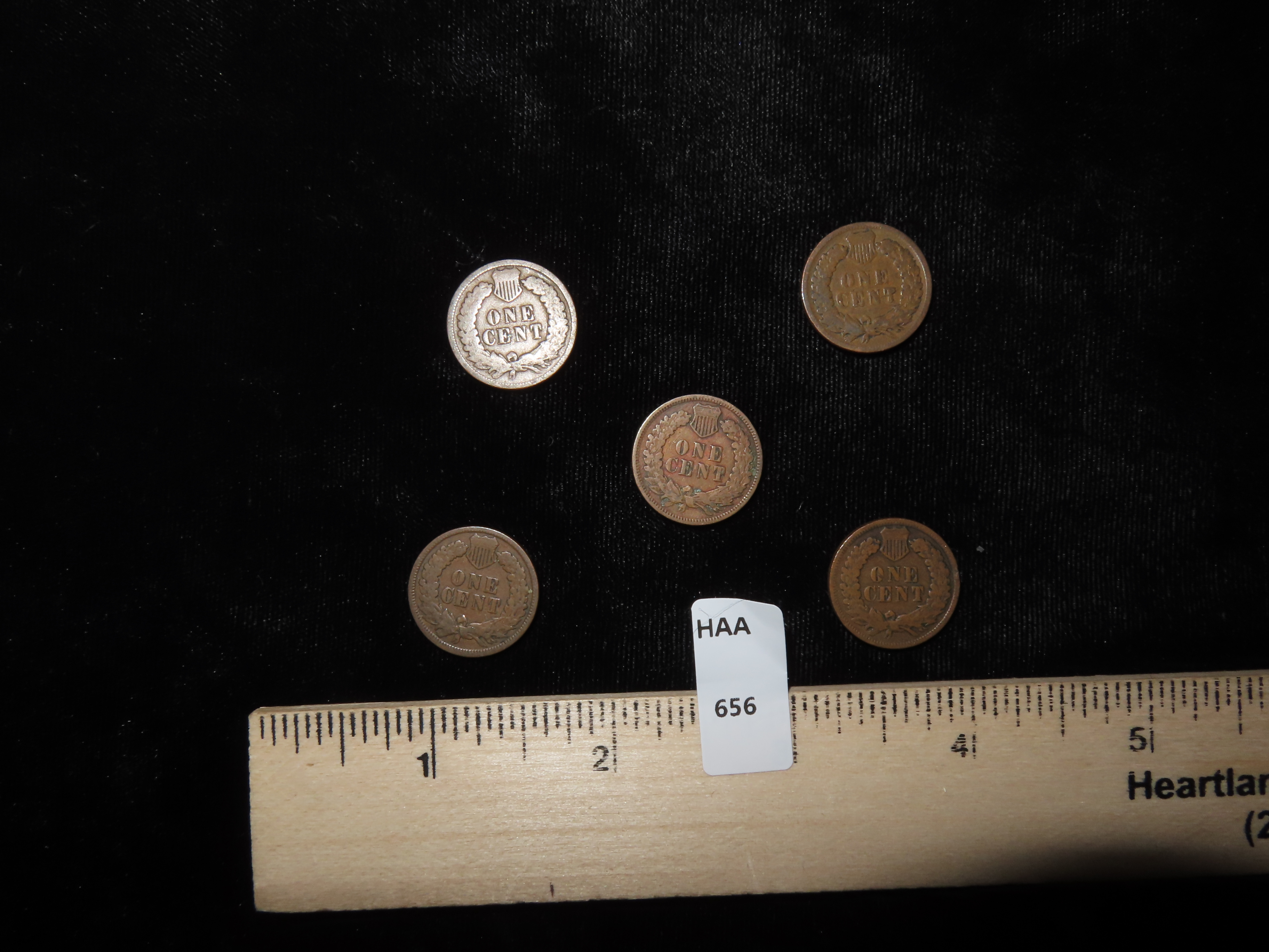 LOT OF 5 DIFFERENT DATE INDIAN HEAD CENTS FROM 1800’S & 1900’S, ALL IN GOOD-FINE CONDITION WITH NICE DETAILS