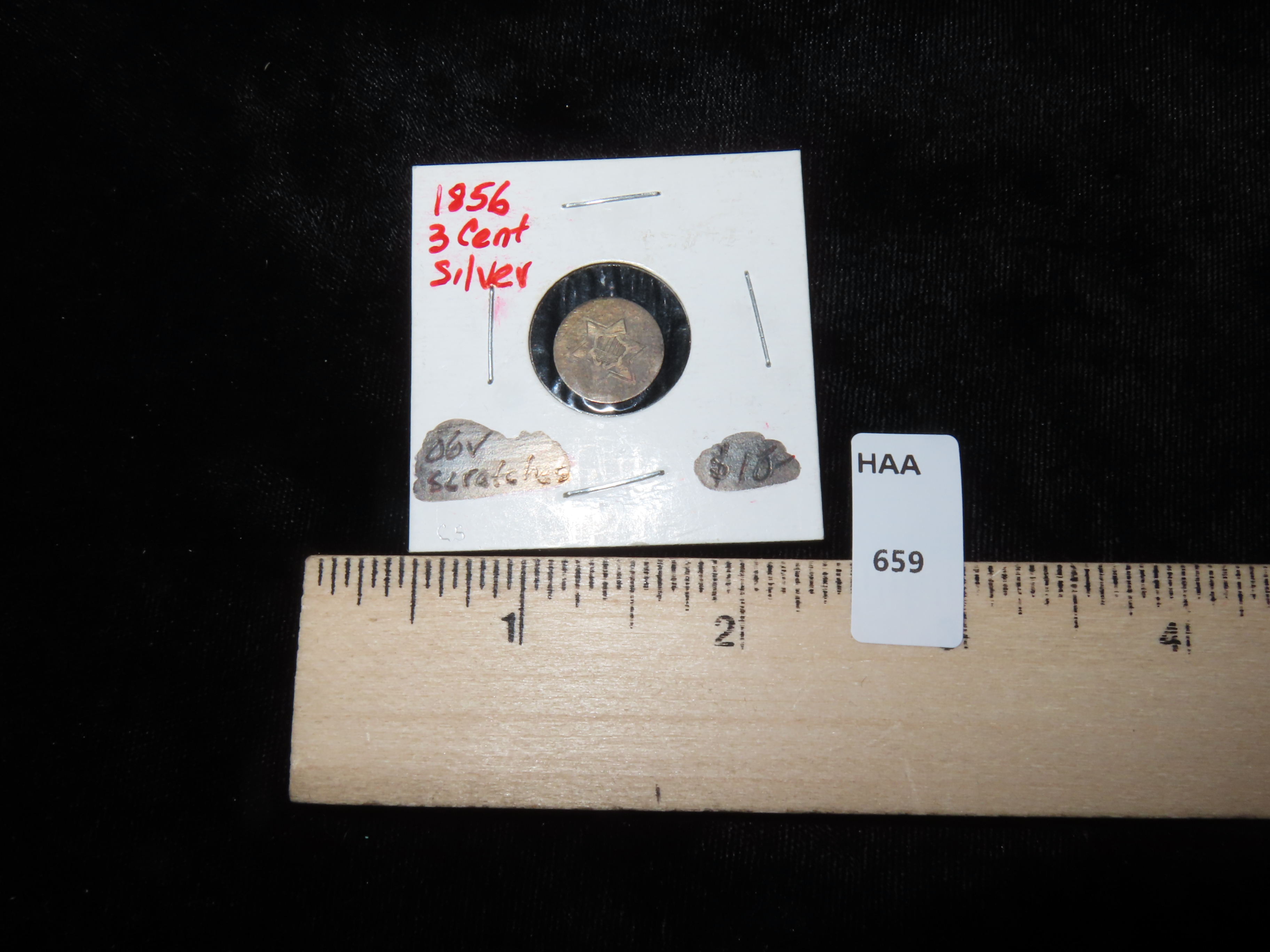 1856 THREE 3 CENT SILVER, RARE EARLY US FRACTIONAL CURRENCY, NICE ORIGINAL CONDITION WITH GREAT DETAILS, HARD TO FIND COIN, EASY TO LOSE TOO