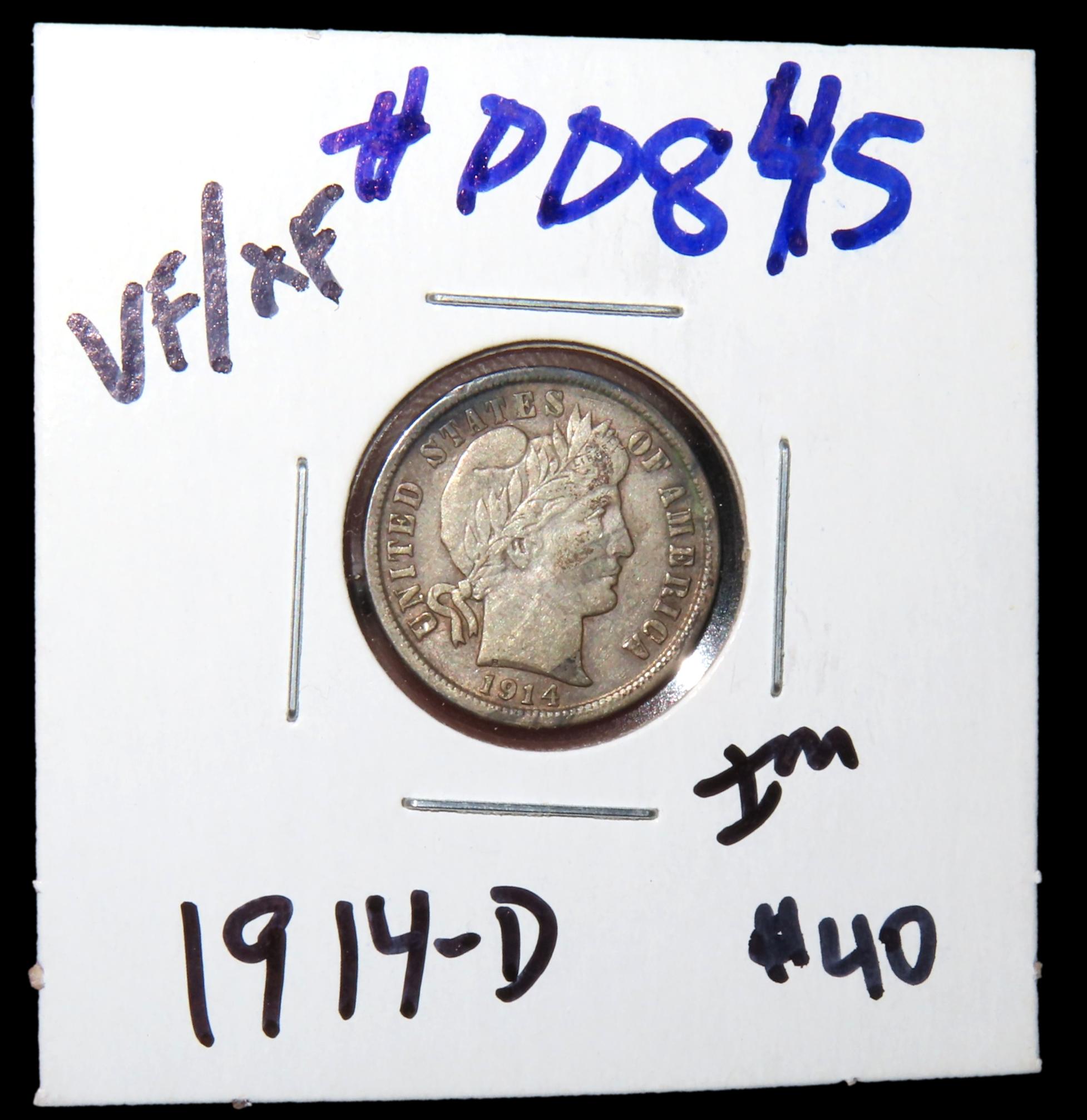 HIGH GRADE VF/XF 1914-D BARBER SILVER DIME, AMAZING CONDITION, GREAT DETAILS