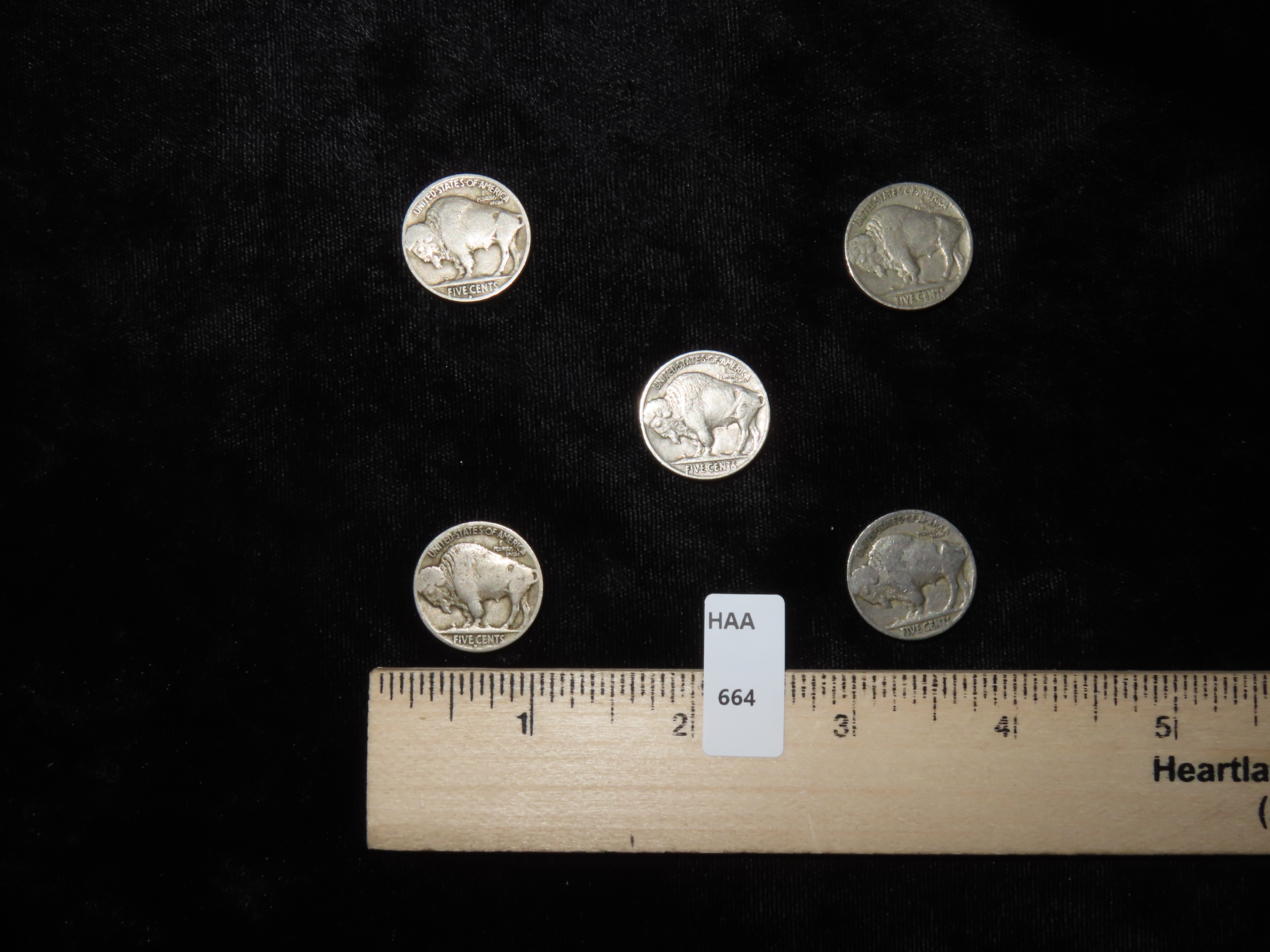 LOT OF 5 BUFFALO NICKELS FROM 1920’S & 1930’S, ALL BETTER CONDITION WITH FULL DATES, INDIAN HEAD DESIGN
