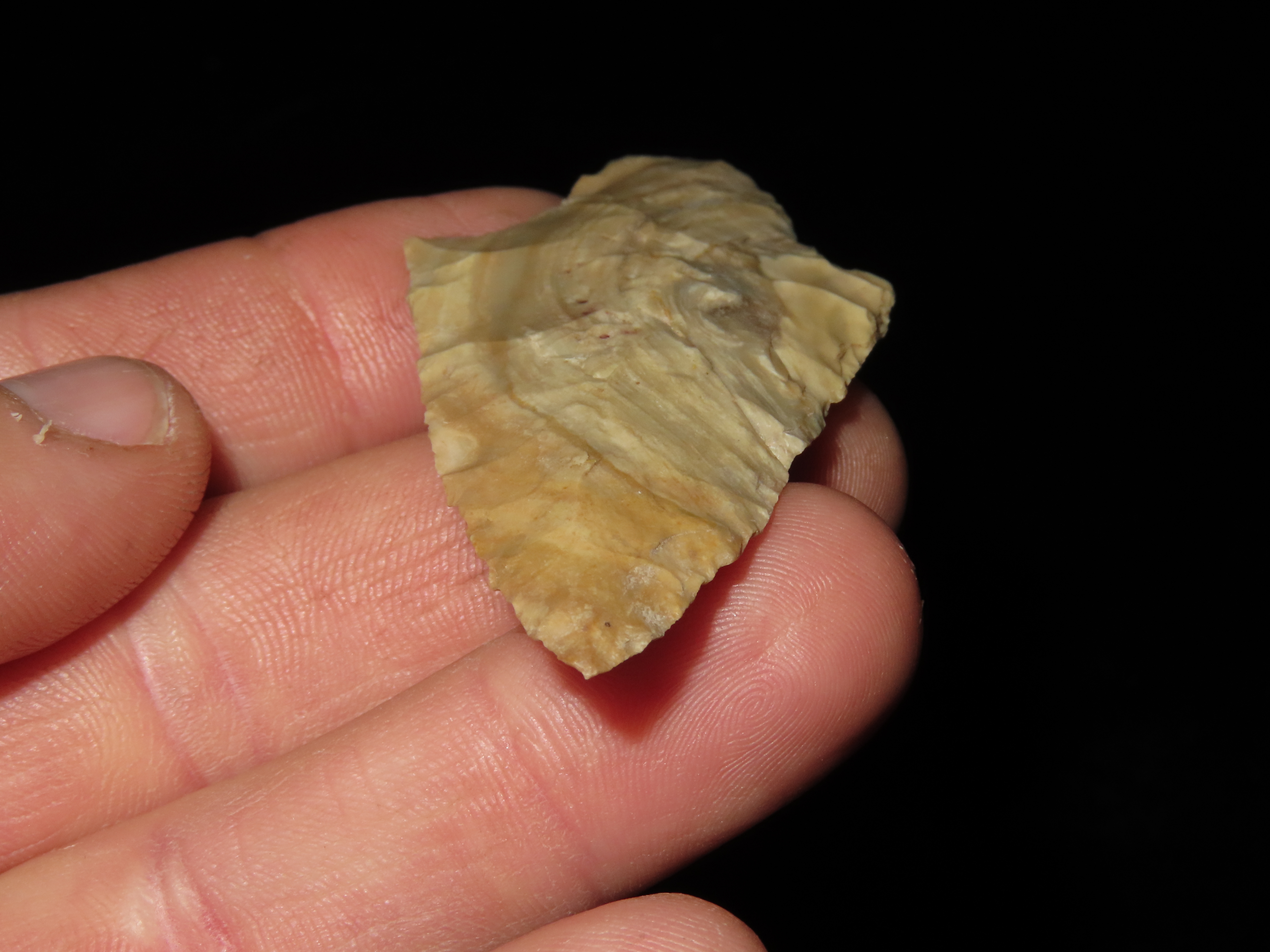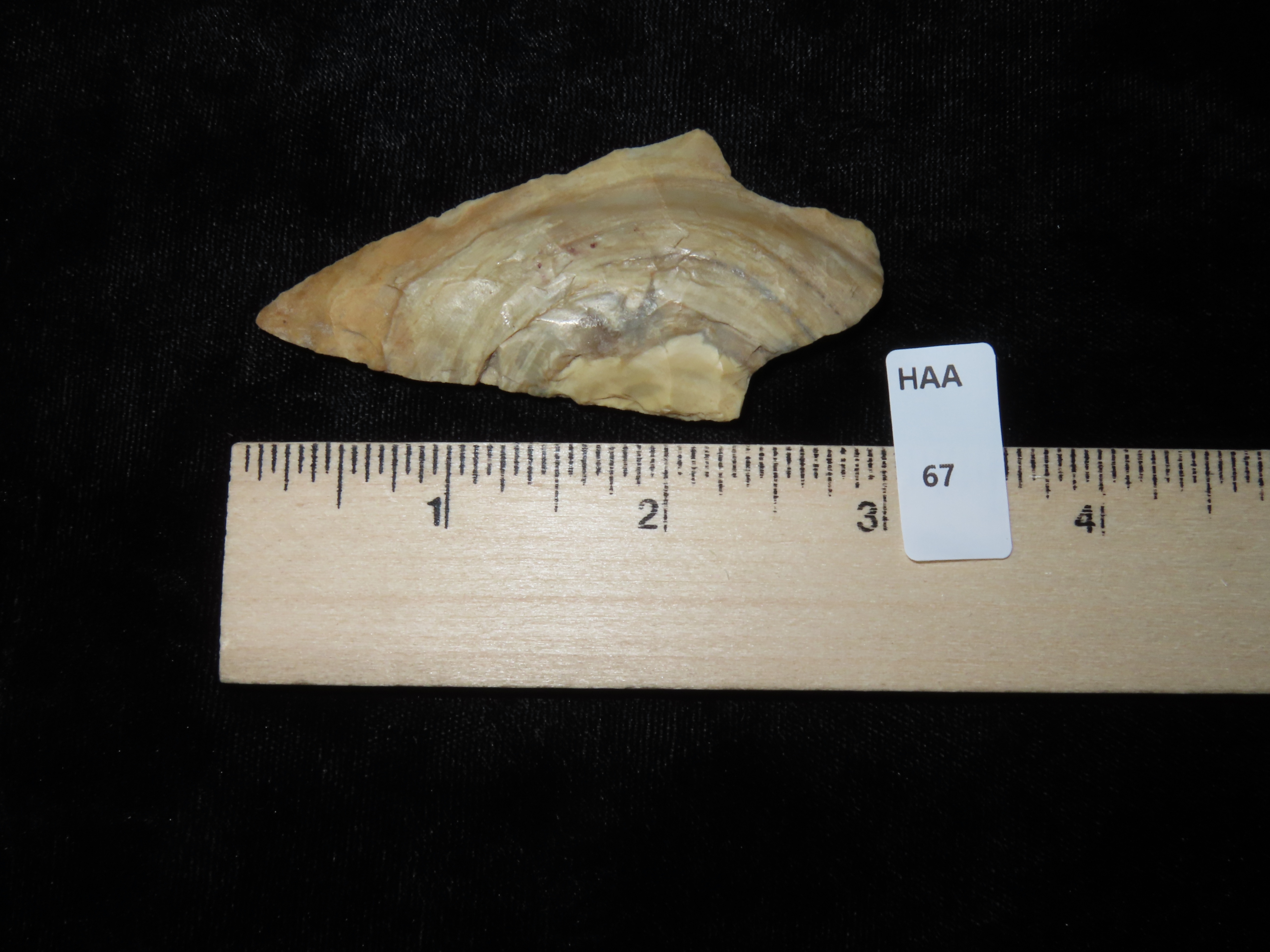 3 1/16″ INCREDIBLE WAUBESA ADENA FOUND IN SALINE COUNTY MISSOURI, OUTSTANDING COLOR AND EXCEPTIONAL FLAKING, INDIAN ARROWHEAD, ARTIFACT