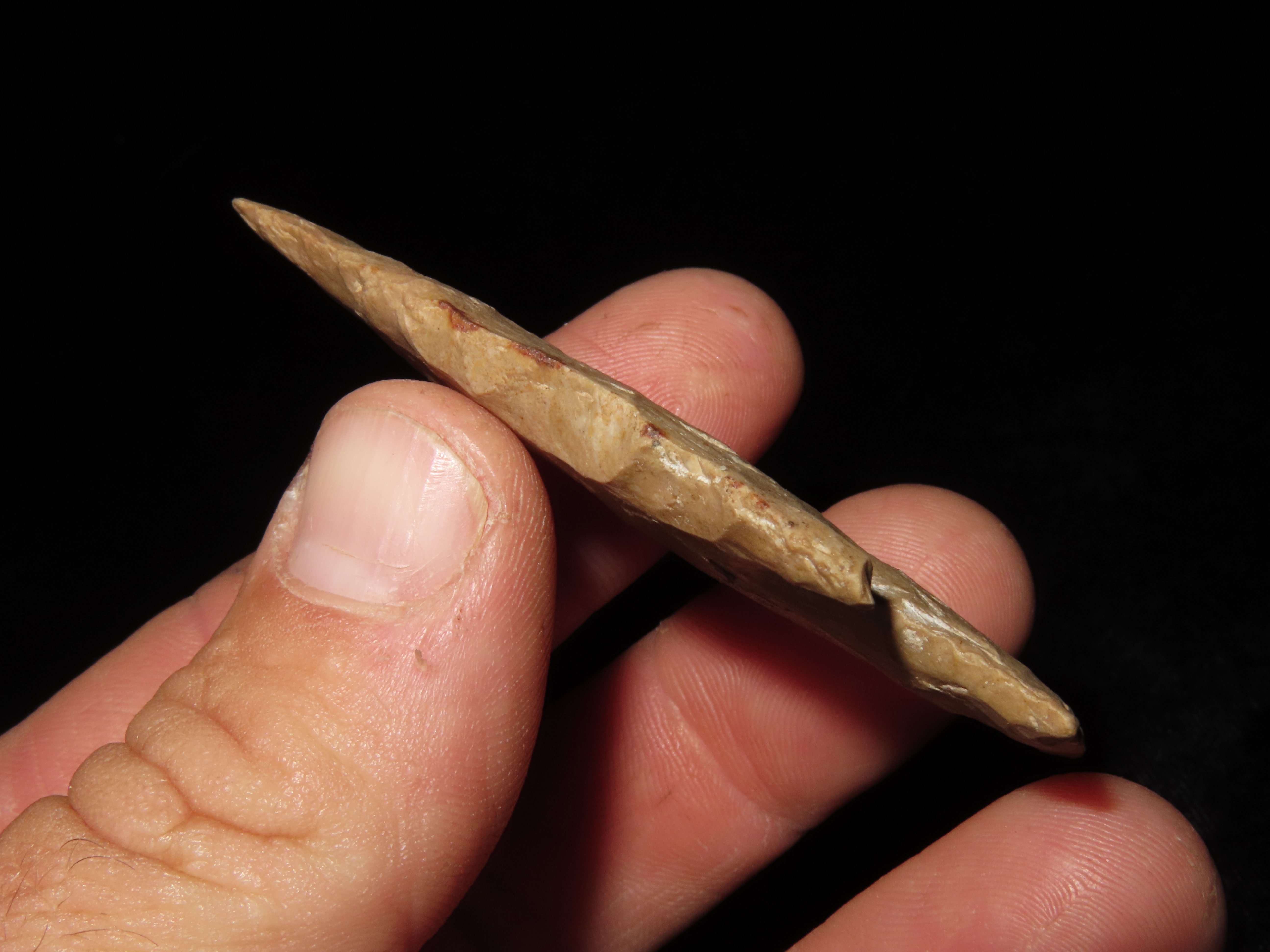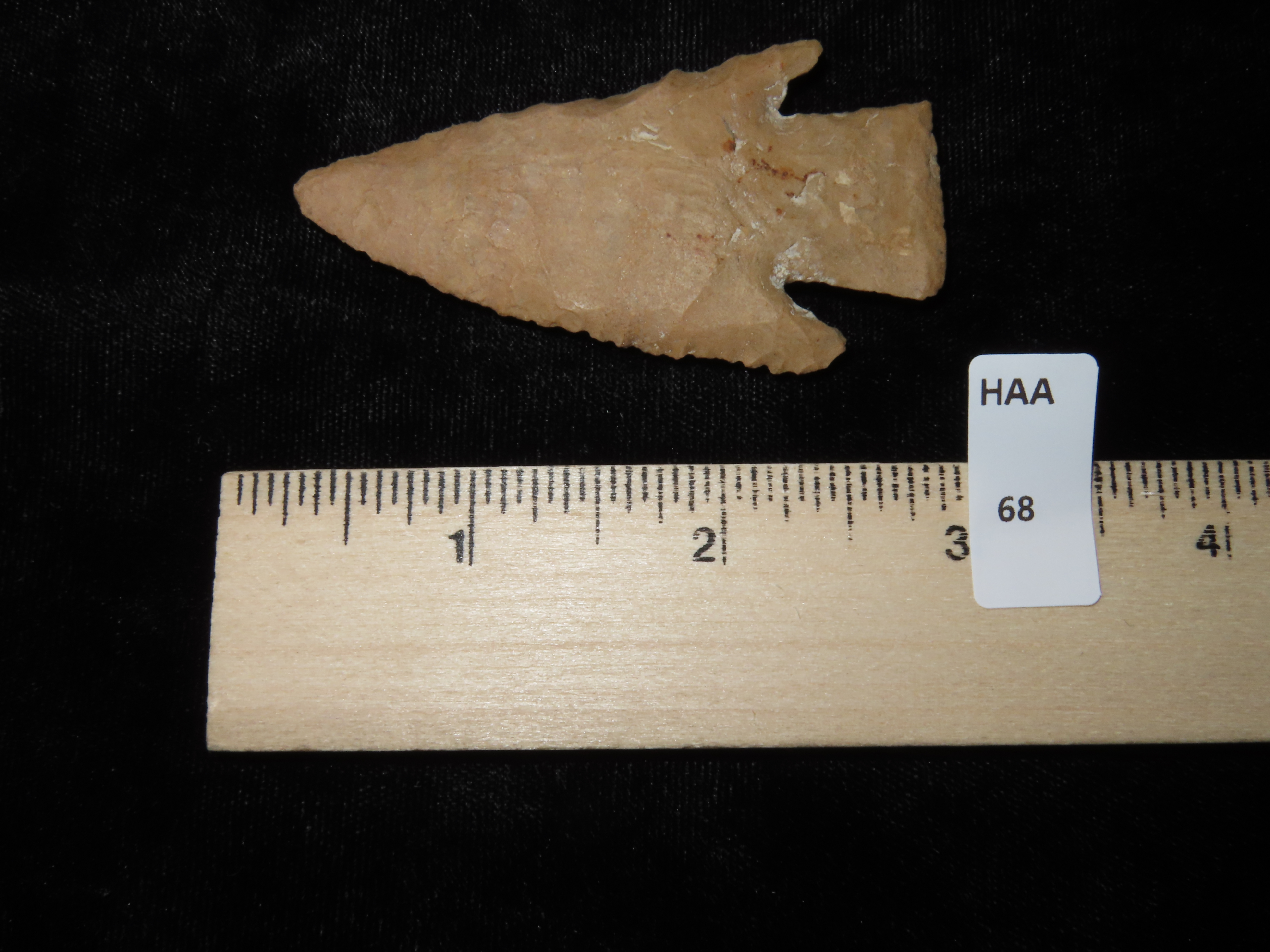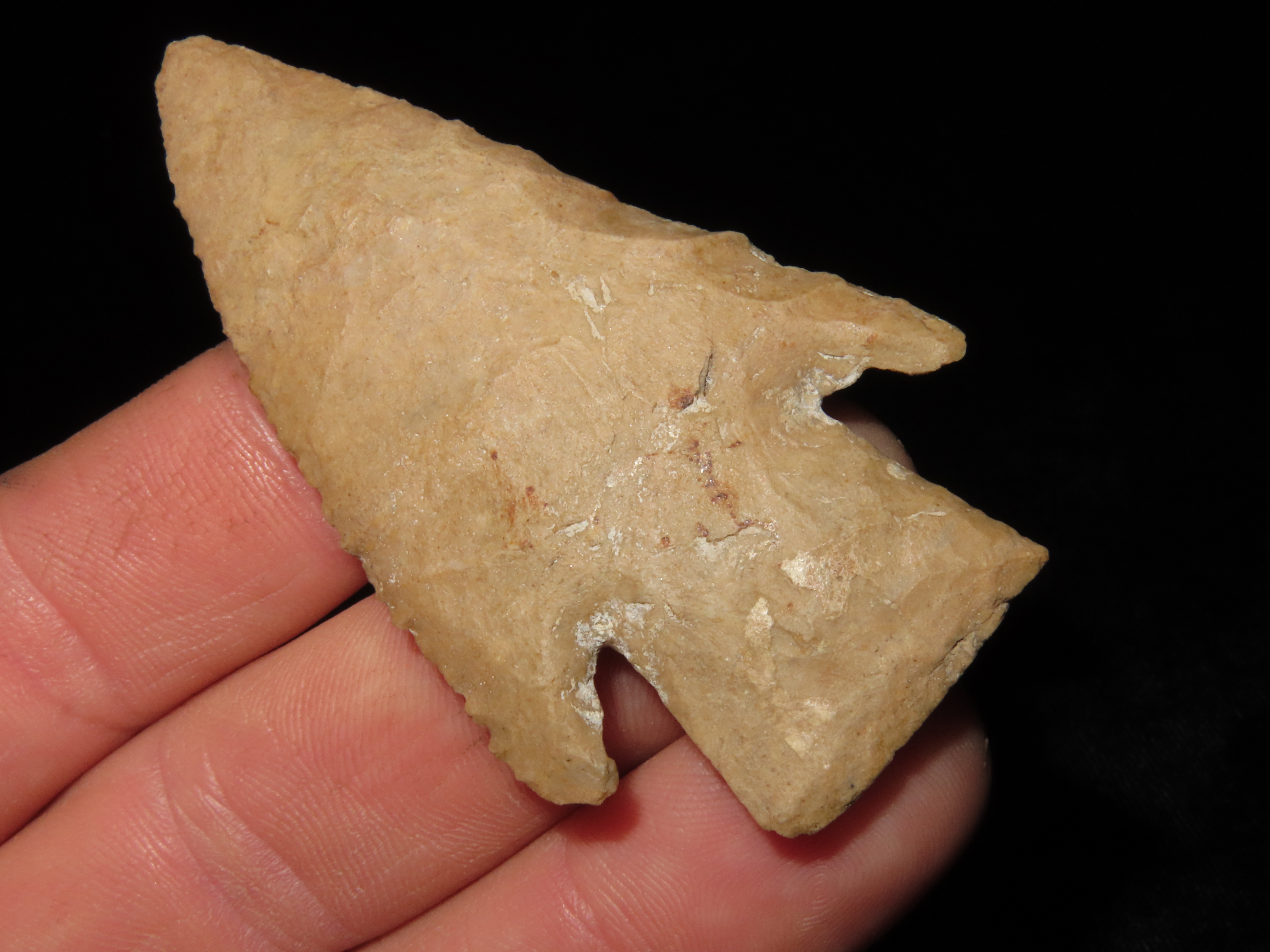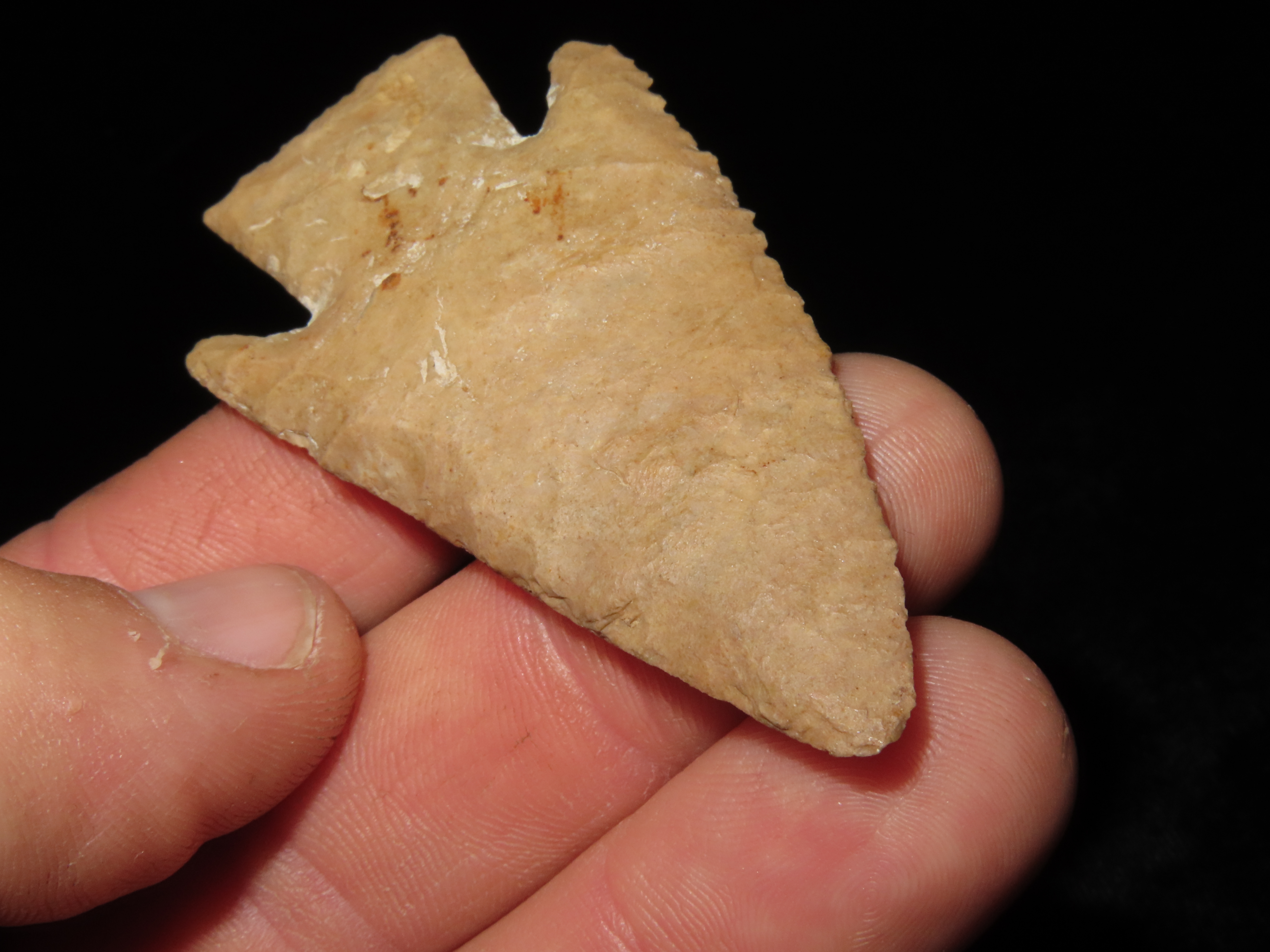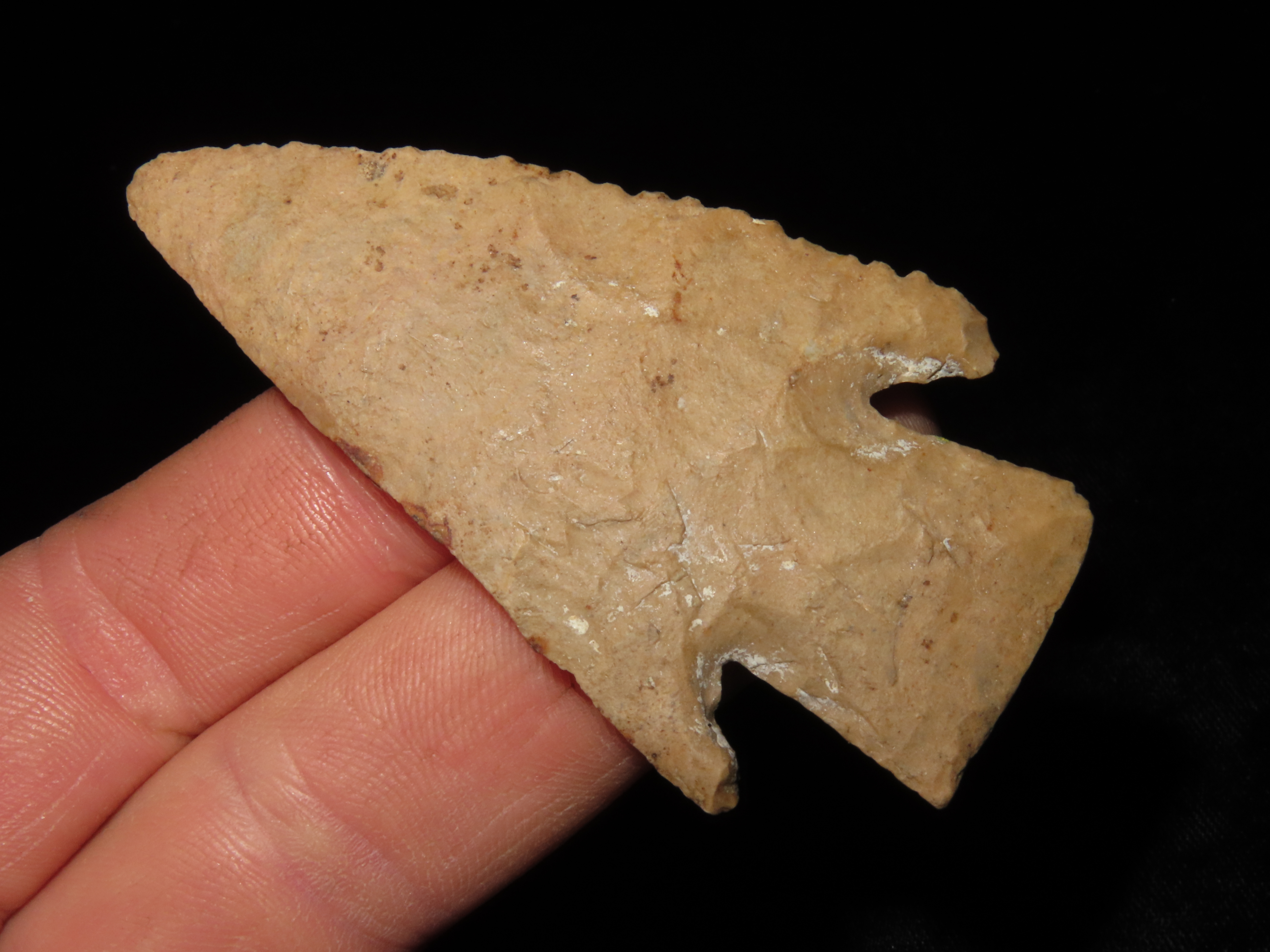 2 3/4″ HARDIN FOUND IN NORTHERN ARKANSAS, WELL FLAKED EXAMPLE WITH GREAT DEPOSITS, INDIAN ARROWHEAD, ARTIFACT