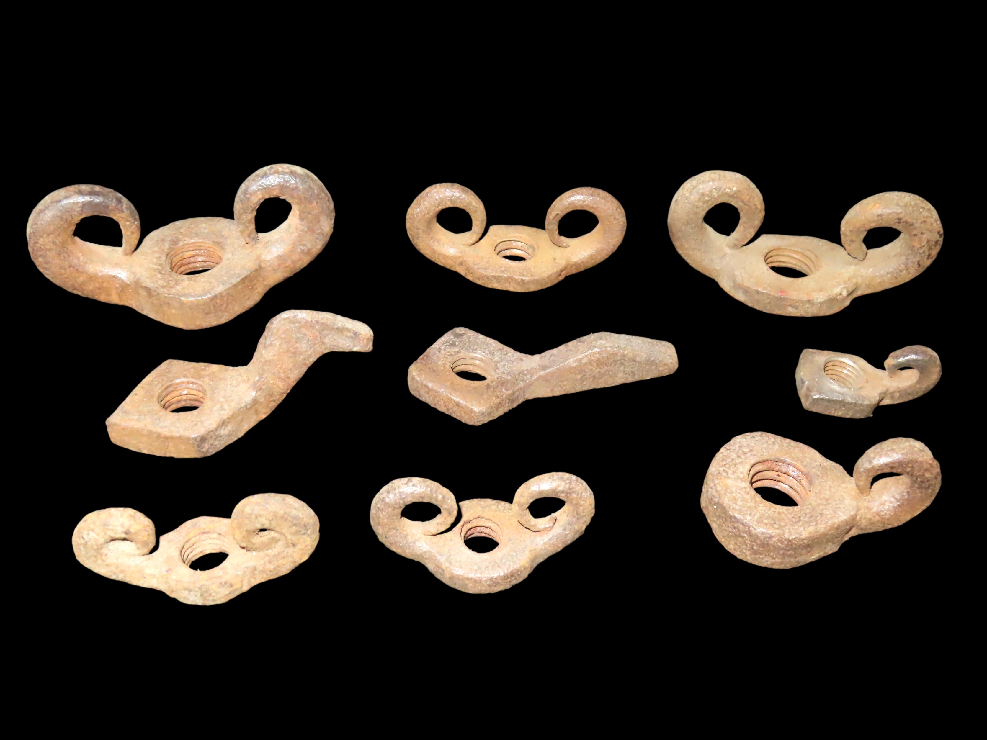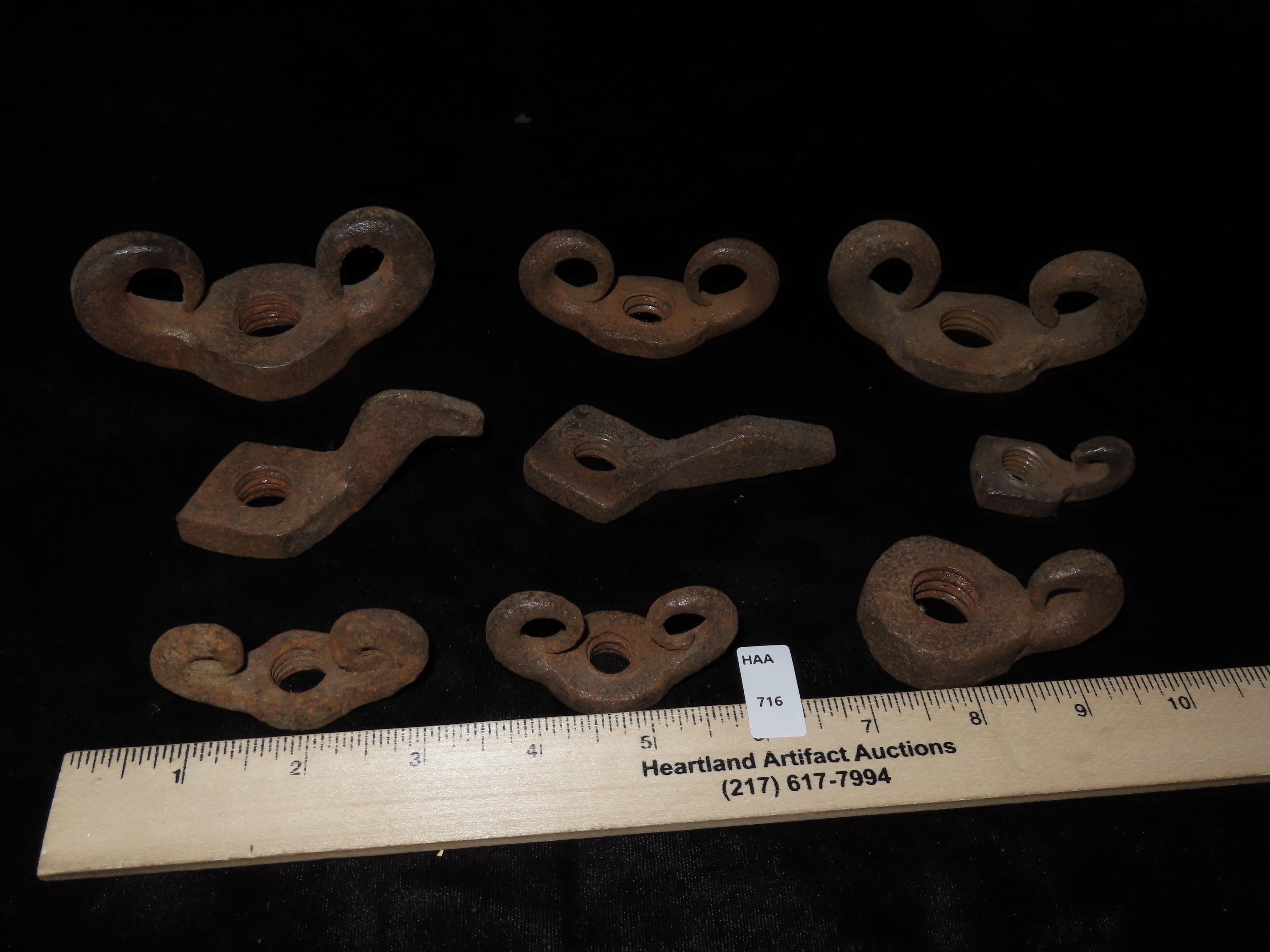 LOT OF OLD BLACKSMITH HAND FORGED IRON HOOKS, CLASPS, TOOLS, VERY OLD & BUILT TO LAST
