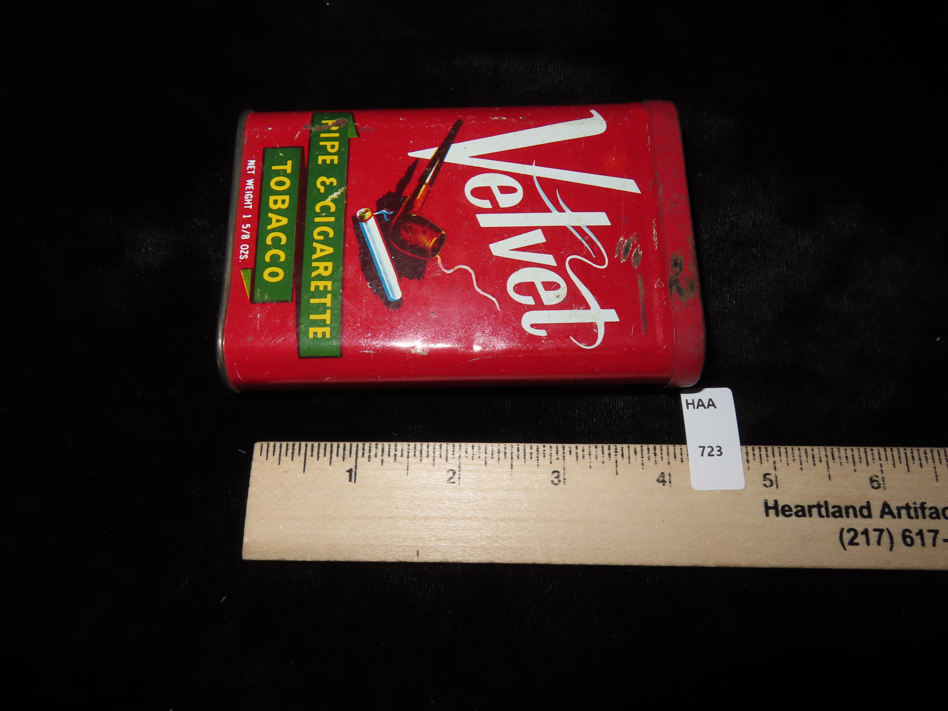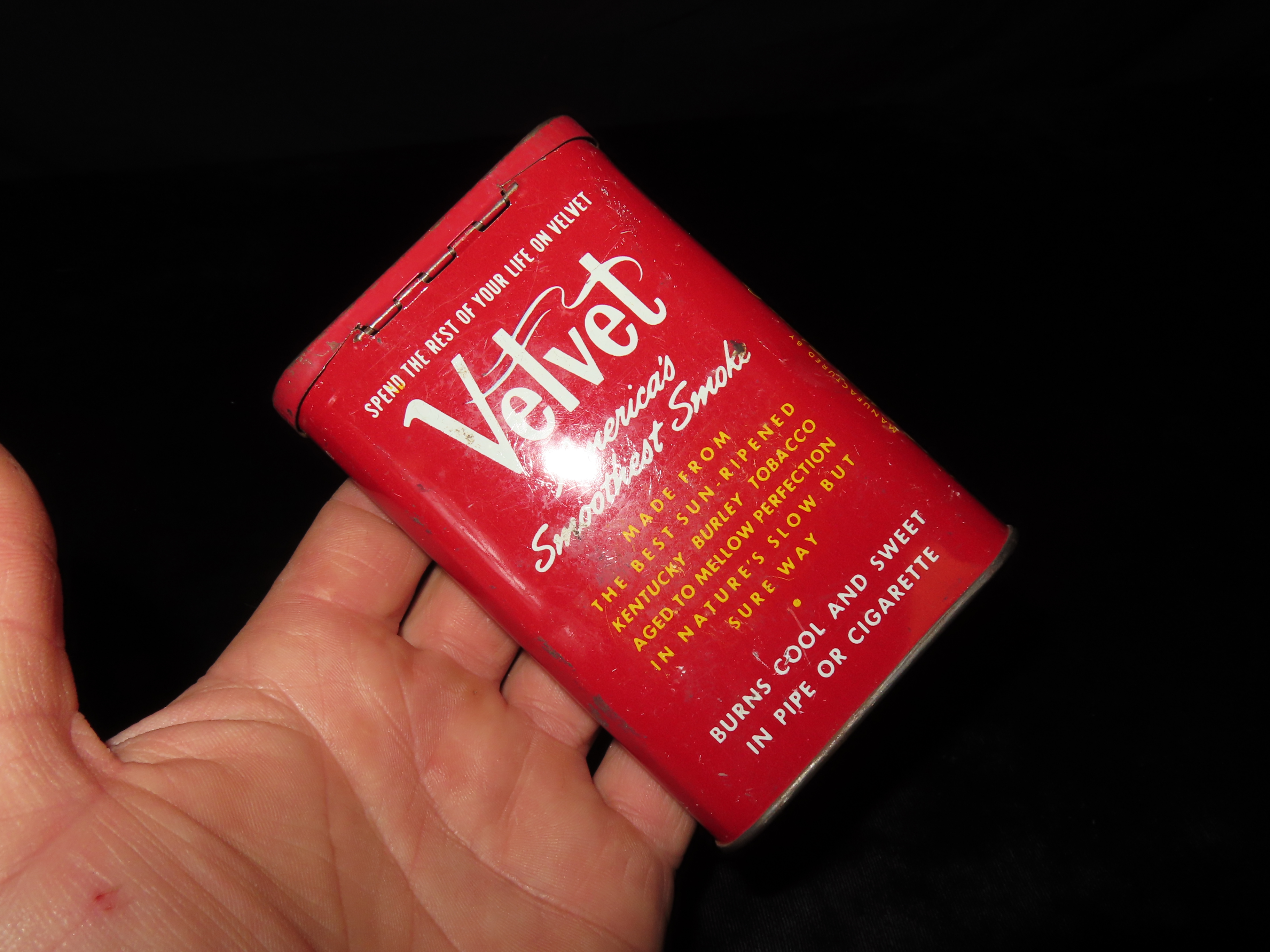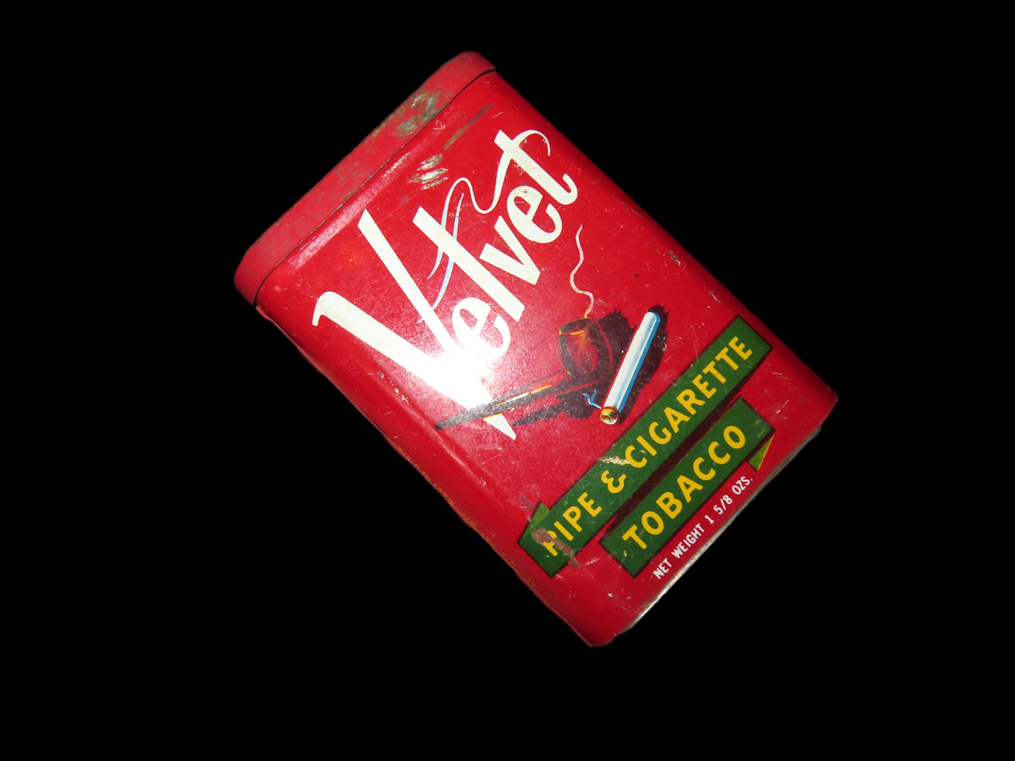 ANTIQUE PIPE & CIGARETTE TOBACCO TIN, VELVET, GREAT CONDITION