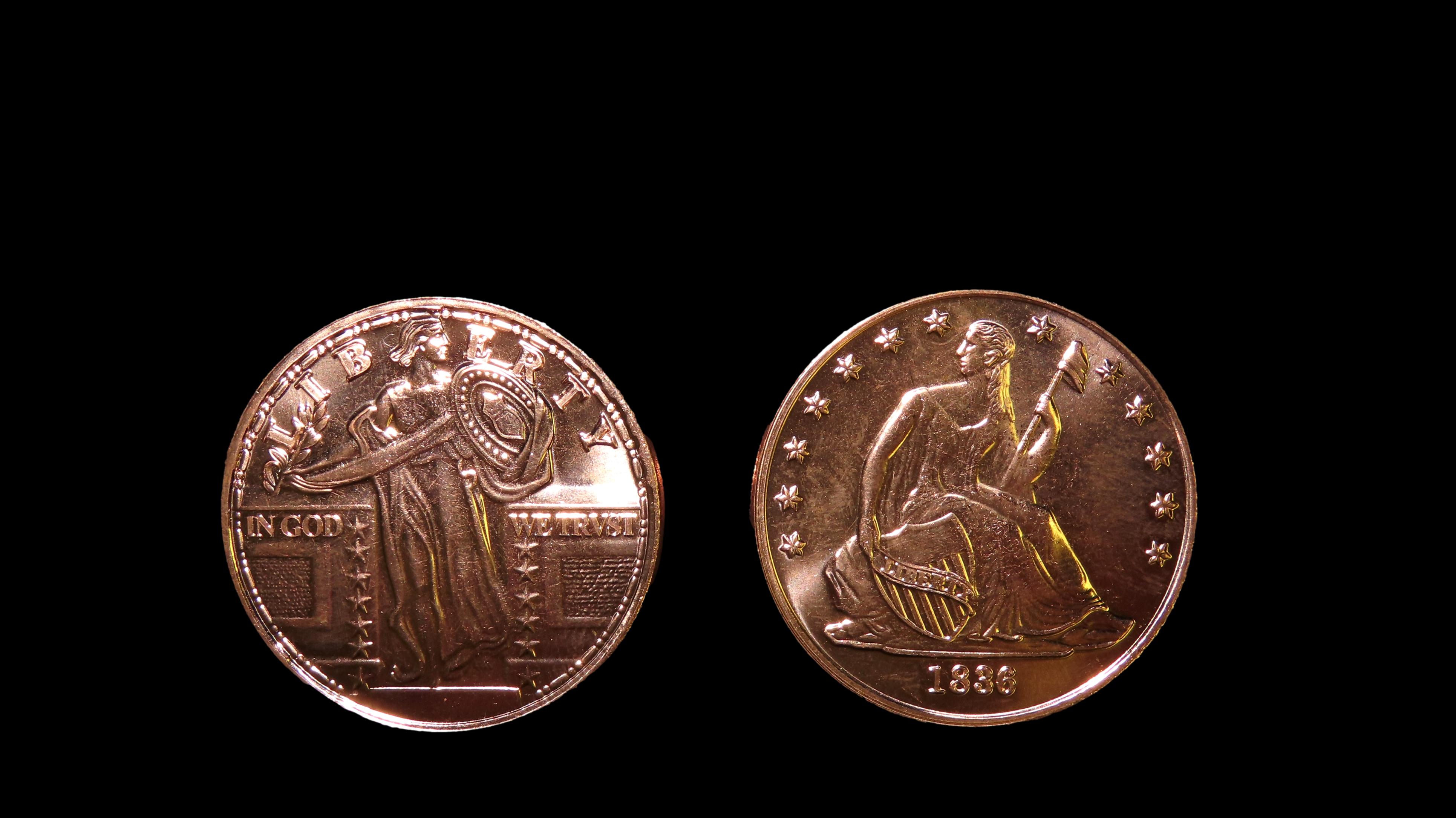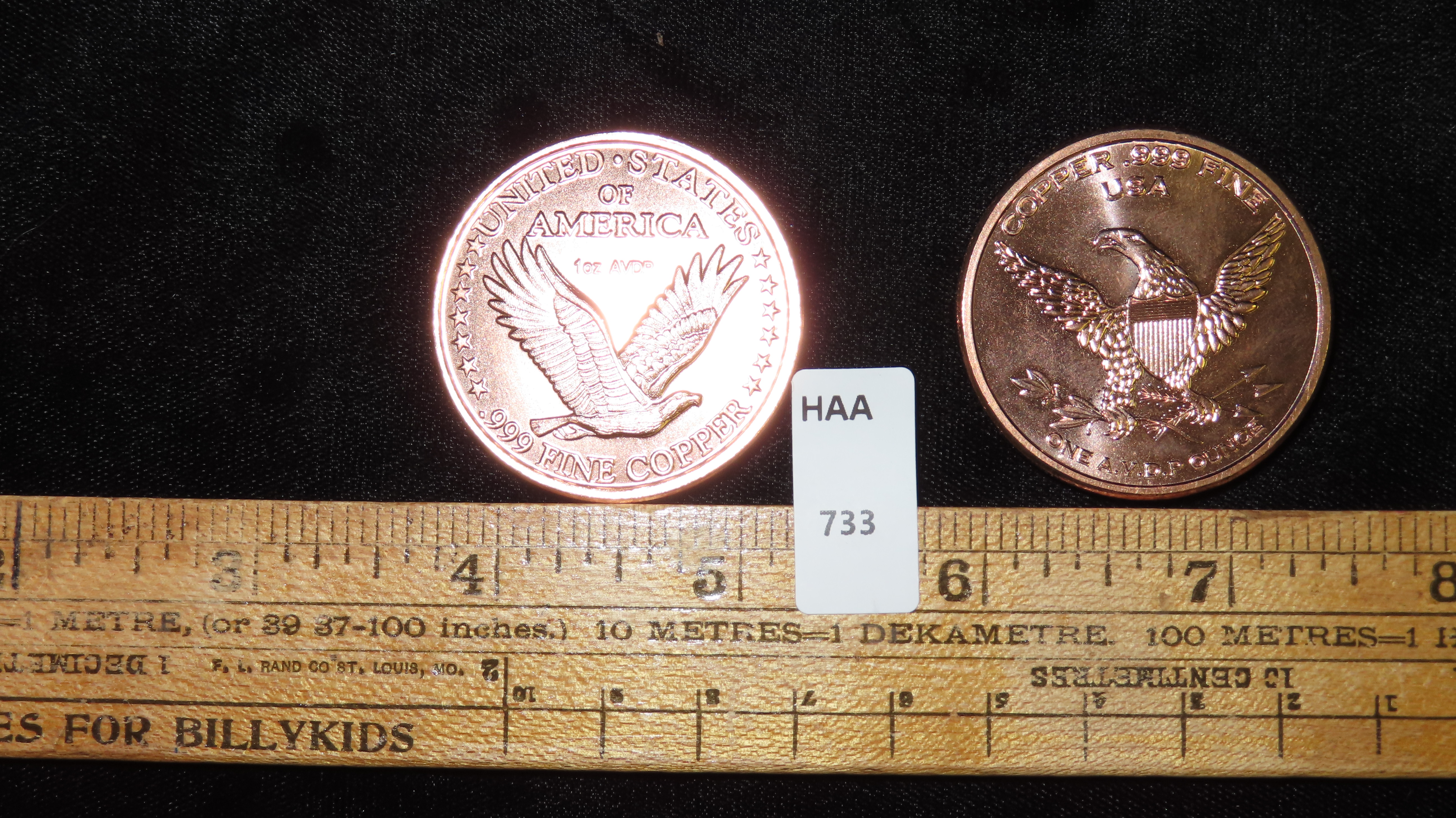 PAIR OF 1 OUNCE COPPER ROUNDS, SEATED HALF & STANDING LIBERTY QUARTER DOLLAR