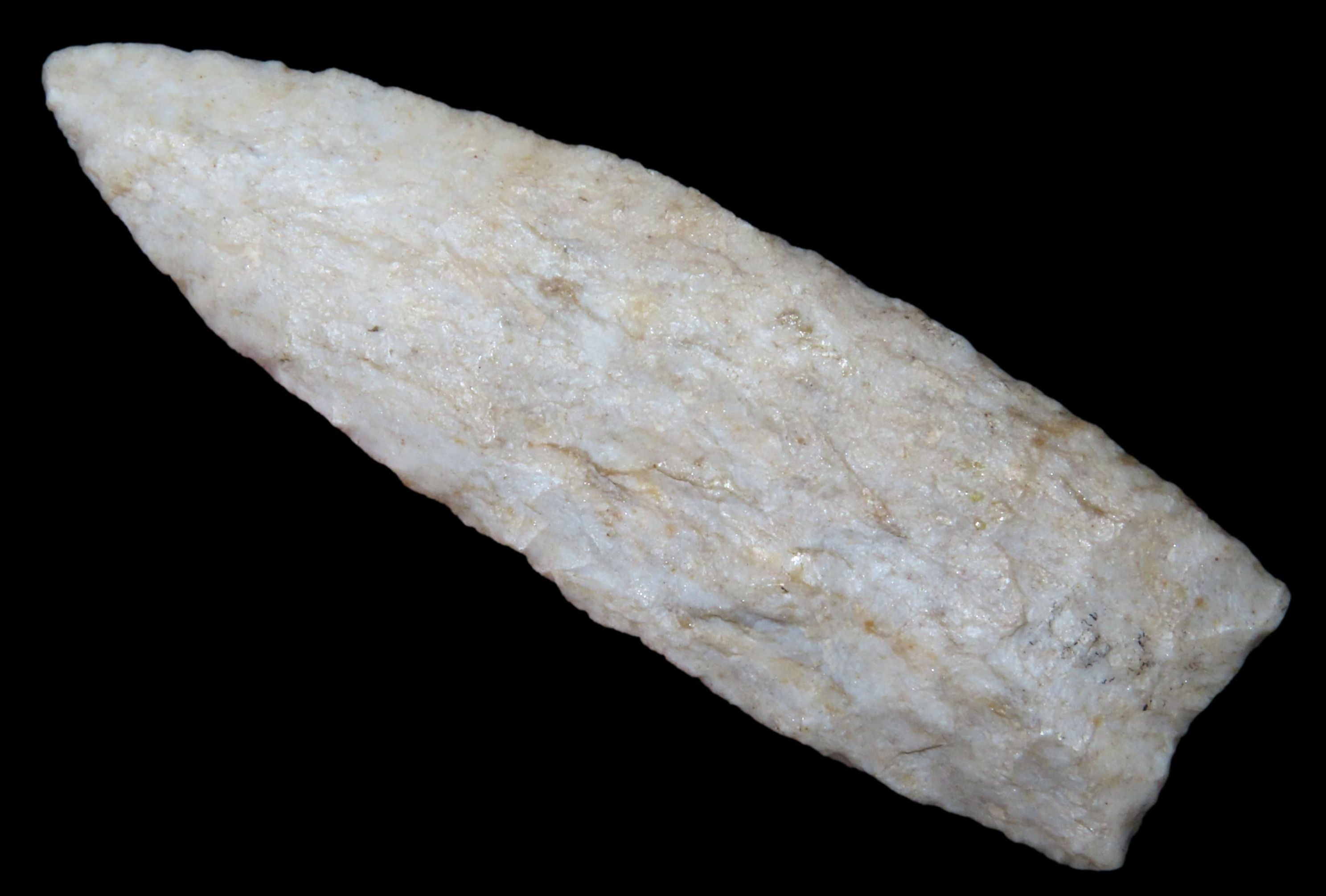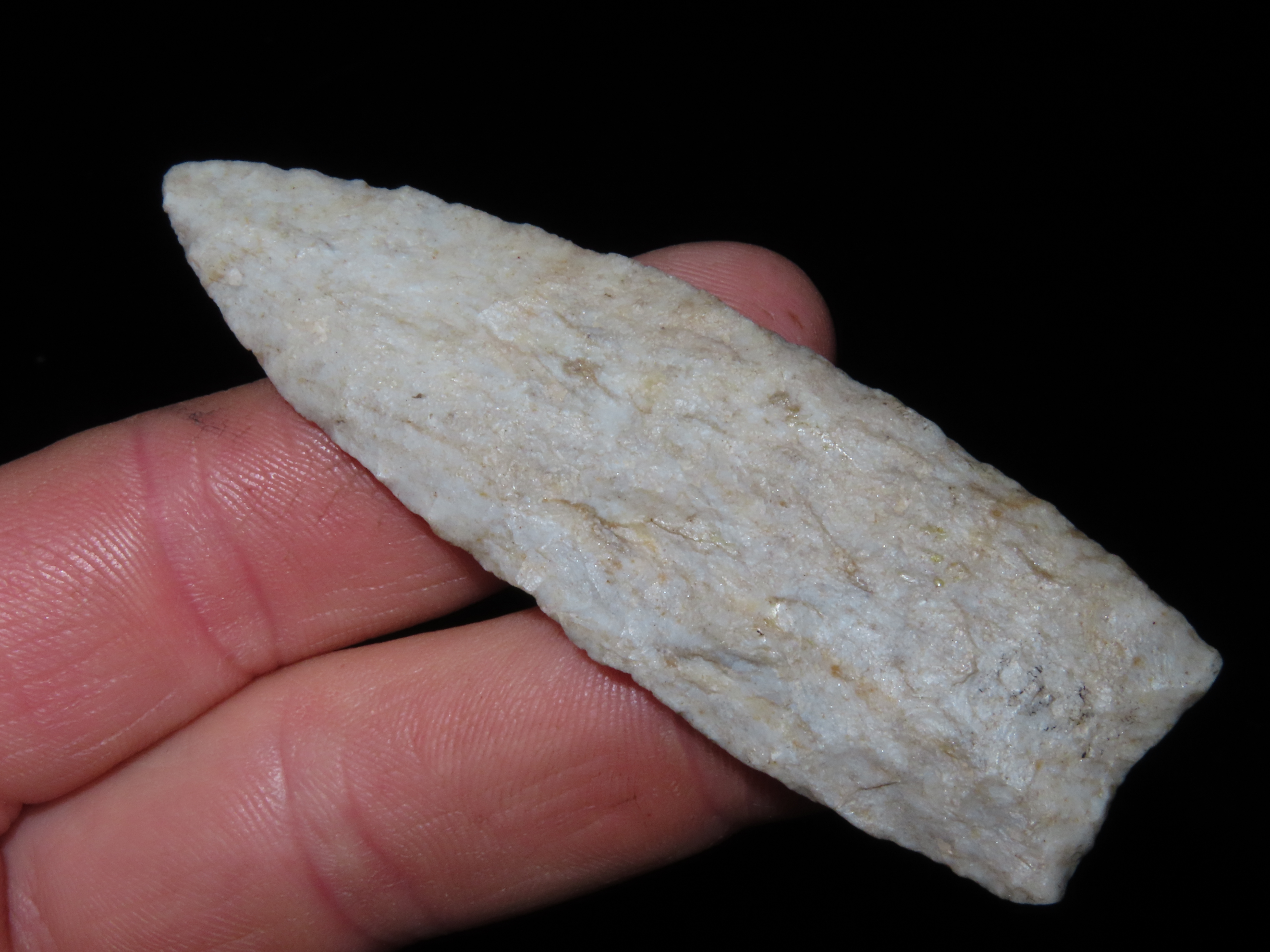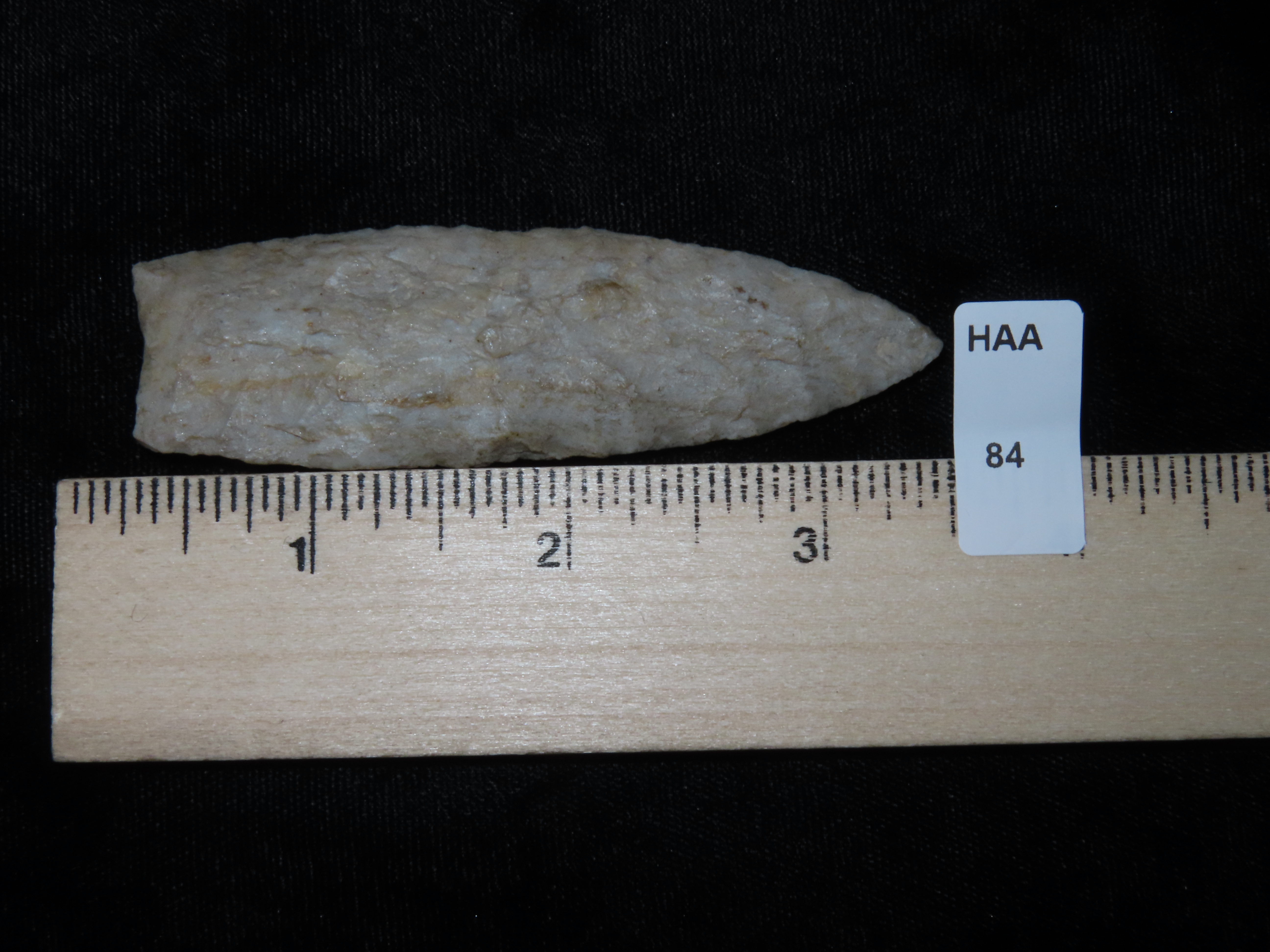 3 5/16" FINE ANGOSTURA FOUND IN ADAMS COUNTY ILLINOIS, THIN & WELL FLAKED EXAMPLE, INDIAN ARTIFACT, ARROWHEAD