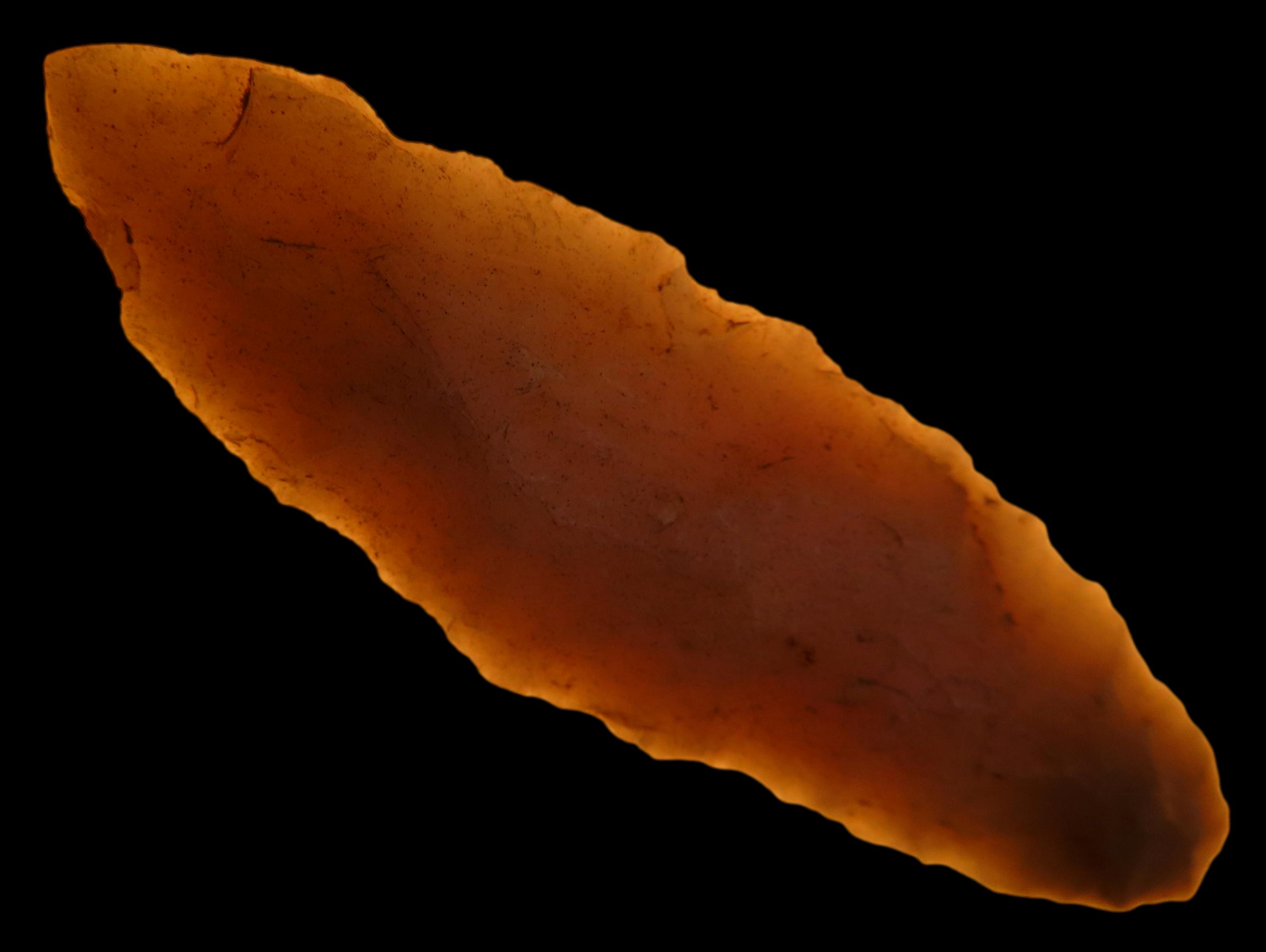 3 1/16" TRANSLUCENT NOVACULITE BIPOINT BLADE / NODENA FOUND IN GREENE COUNTY ARKANSAS, BEAUTIFUL MATERIAL