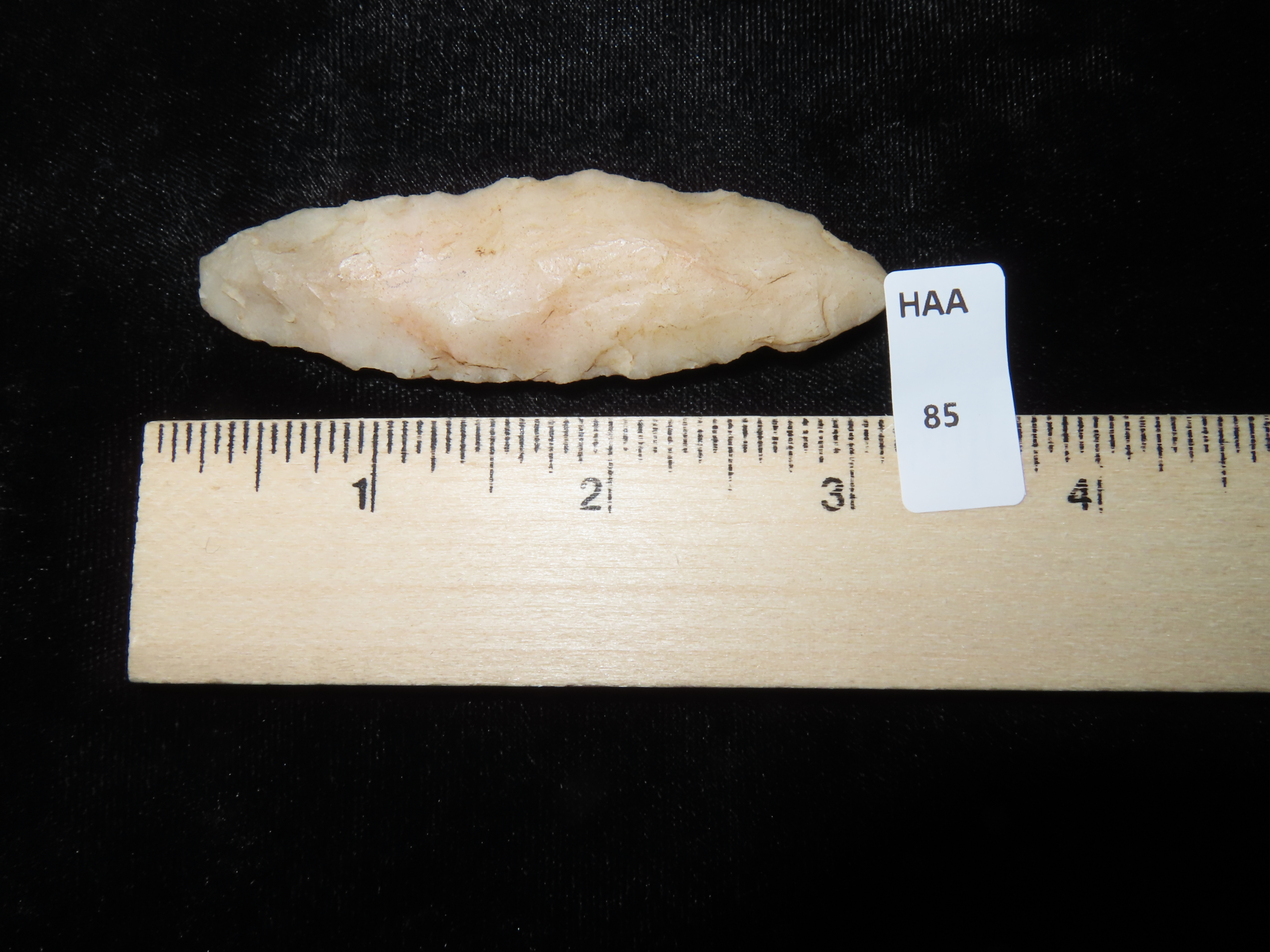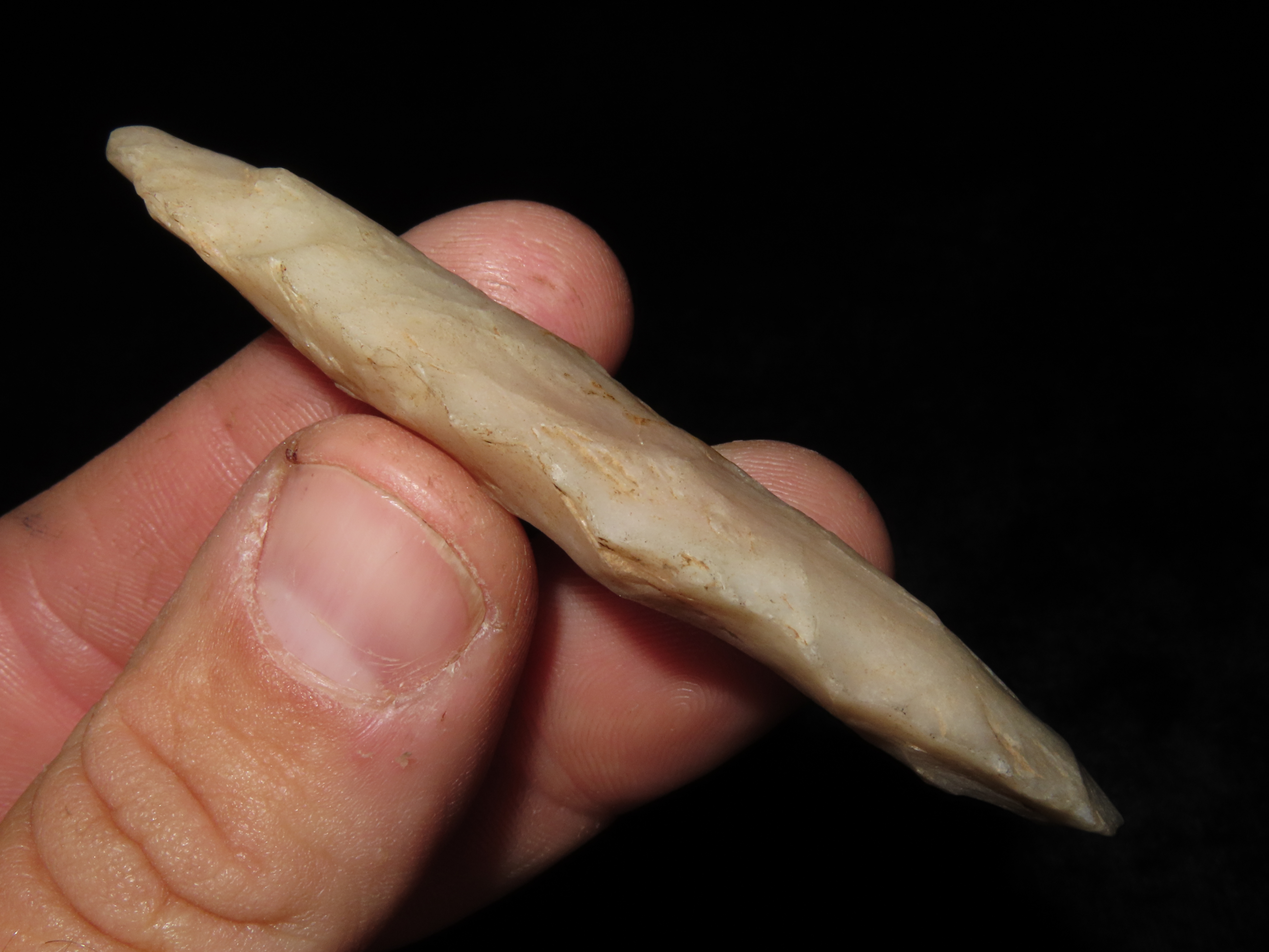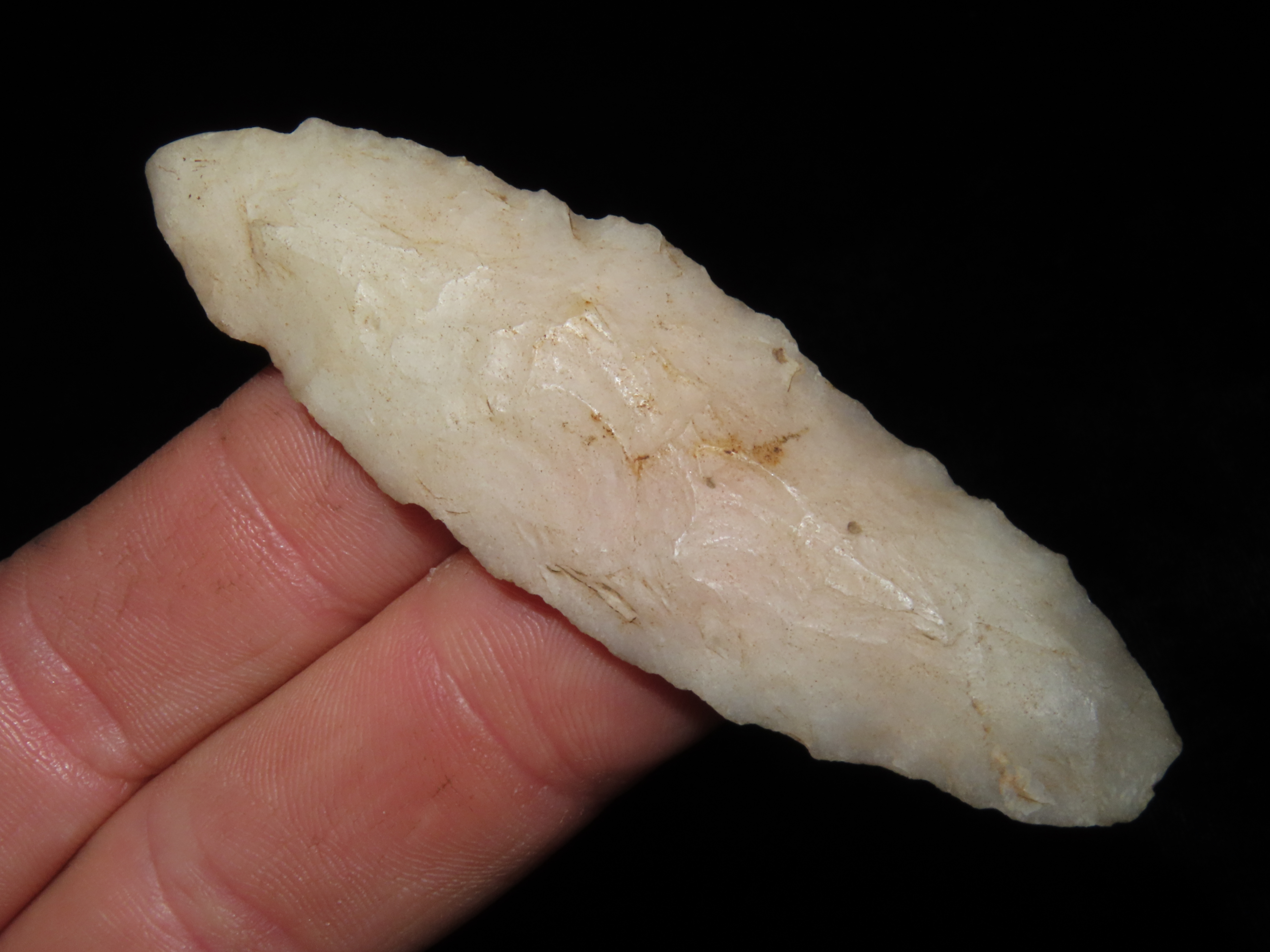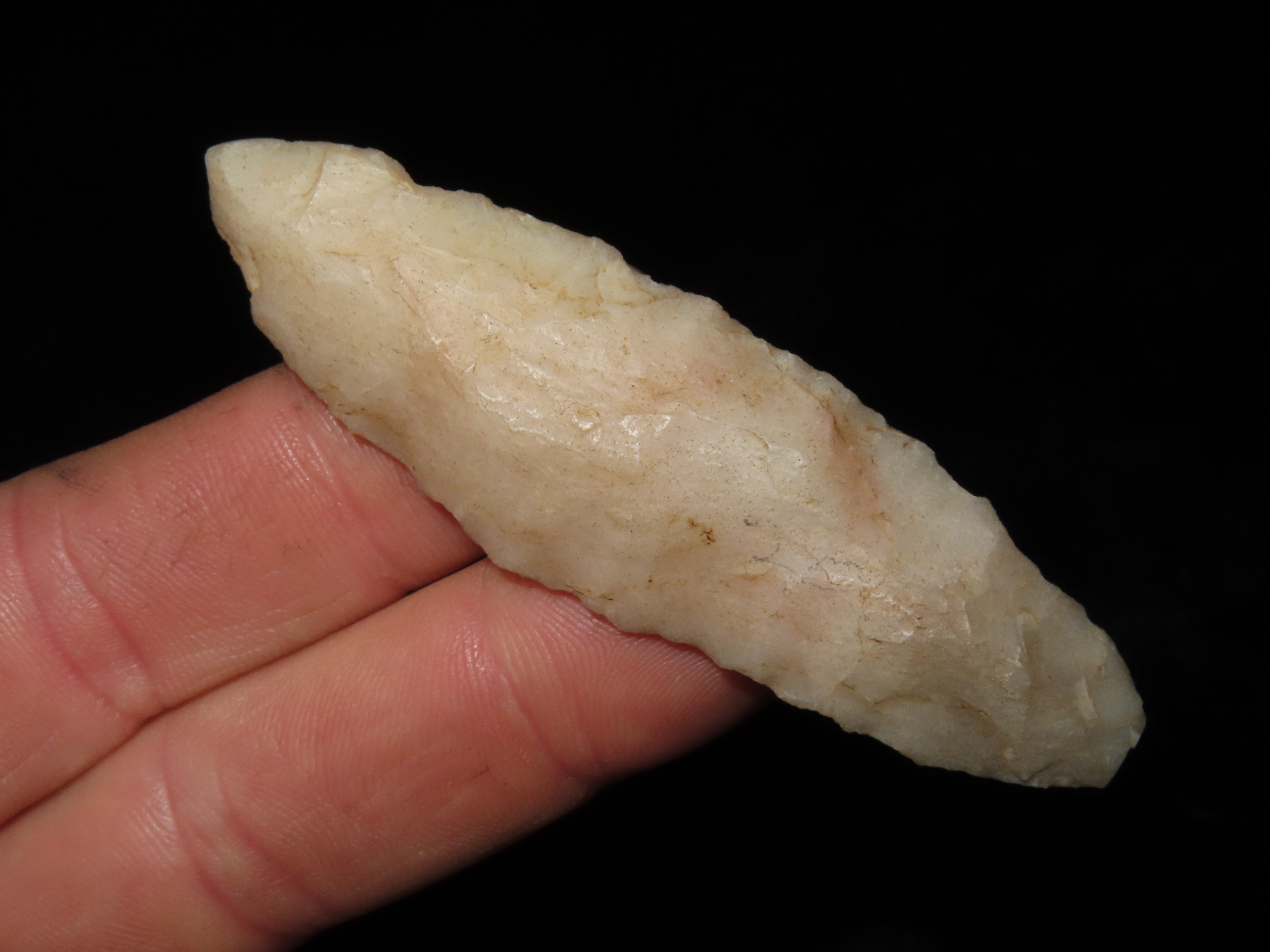 3 1/16″ TRANSLUCENT NOVACULITE BIPOINT BLADE / NODENA FOUND IN GREENE COUNTY ARKANSAS, BEAUTIFUL MATERIAL