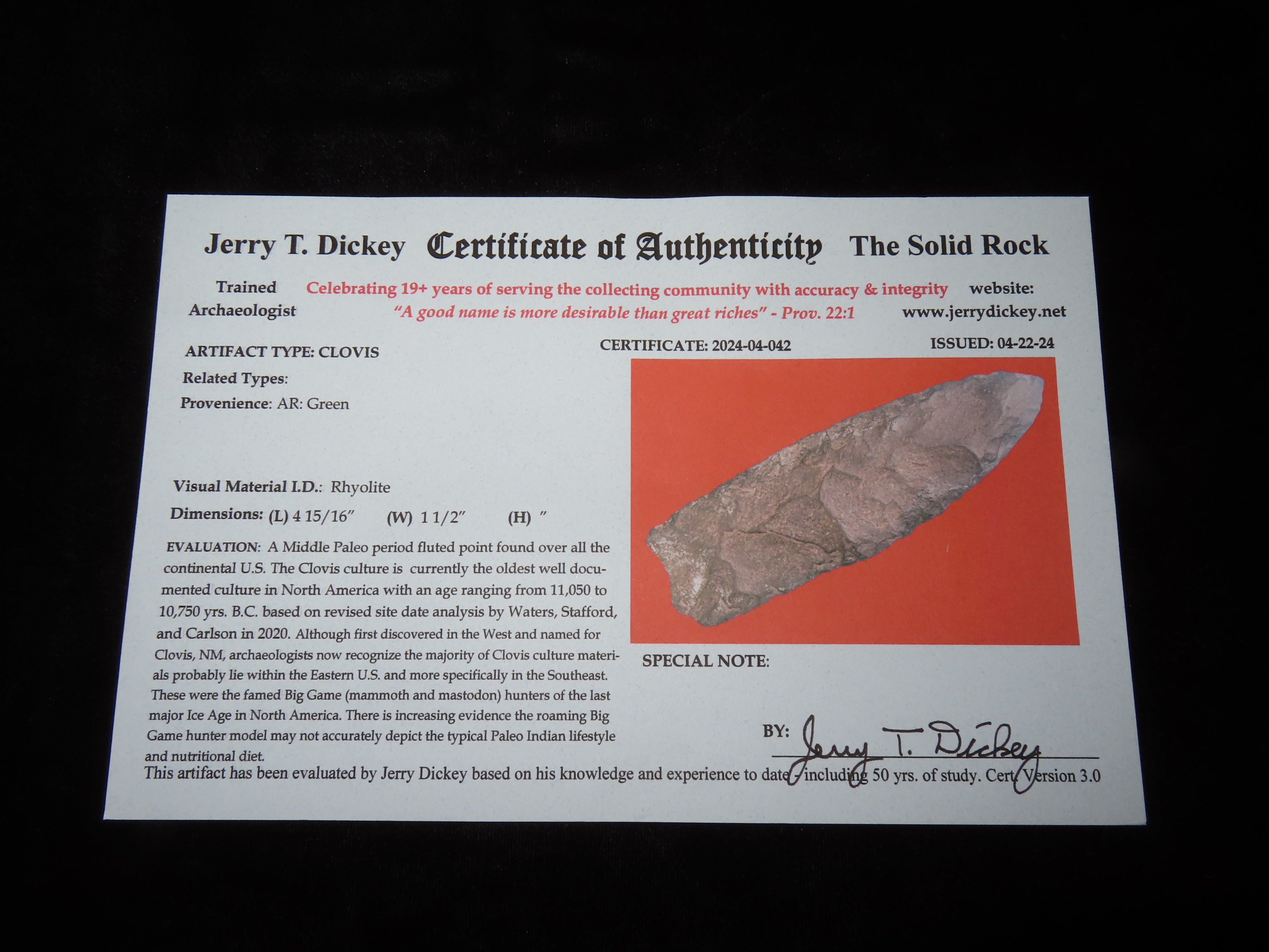 4 15/16″ Clovis, Dickey COA, found in Green Co., Arkansas