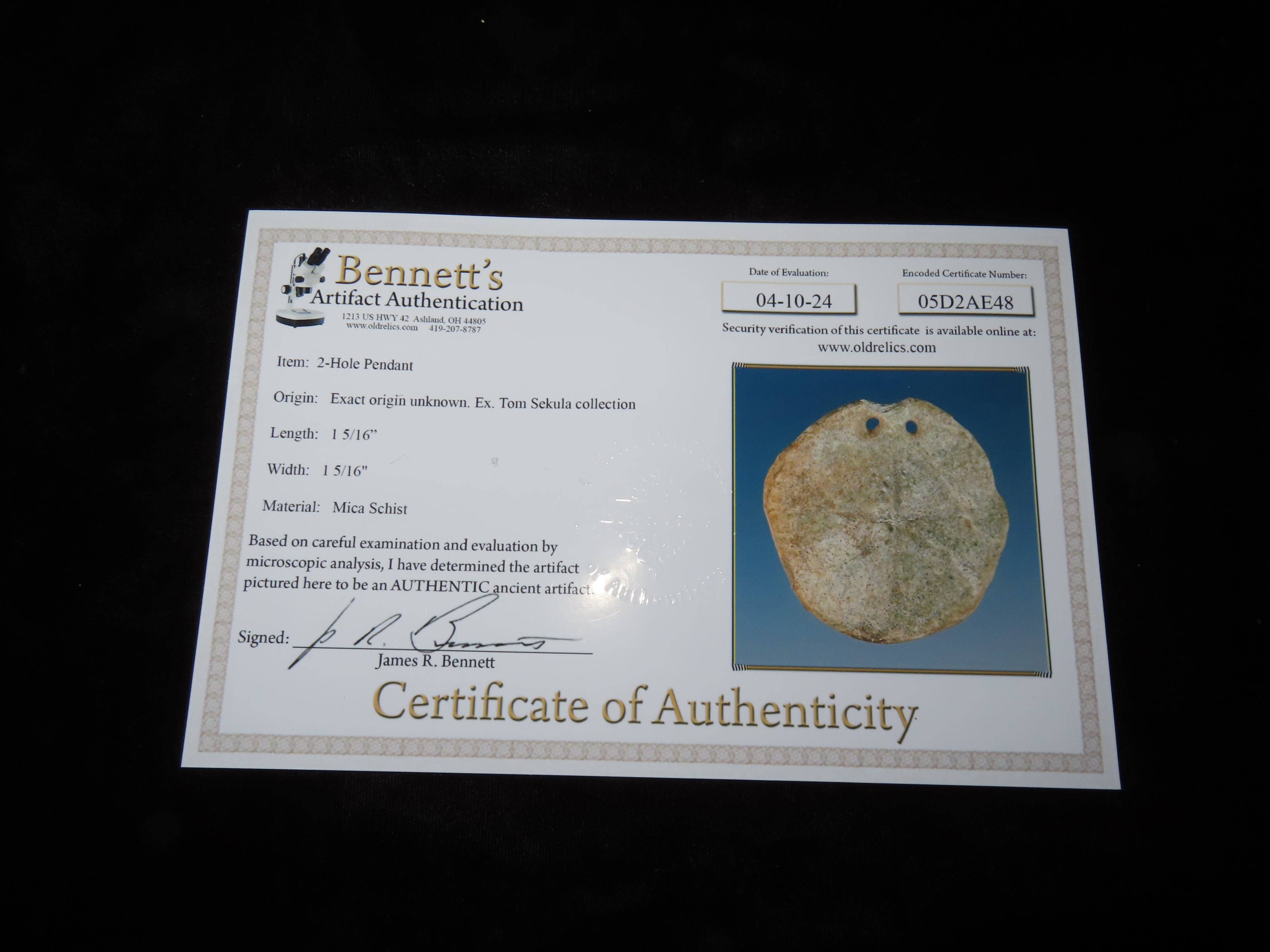 1 5/16" 2-Hole Pendant, Bennett COA, Ex Tom Sekula Collection