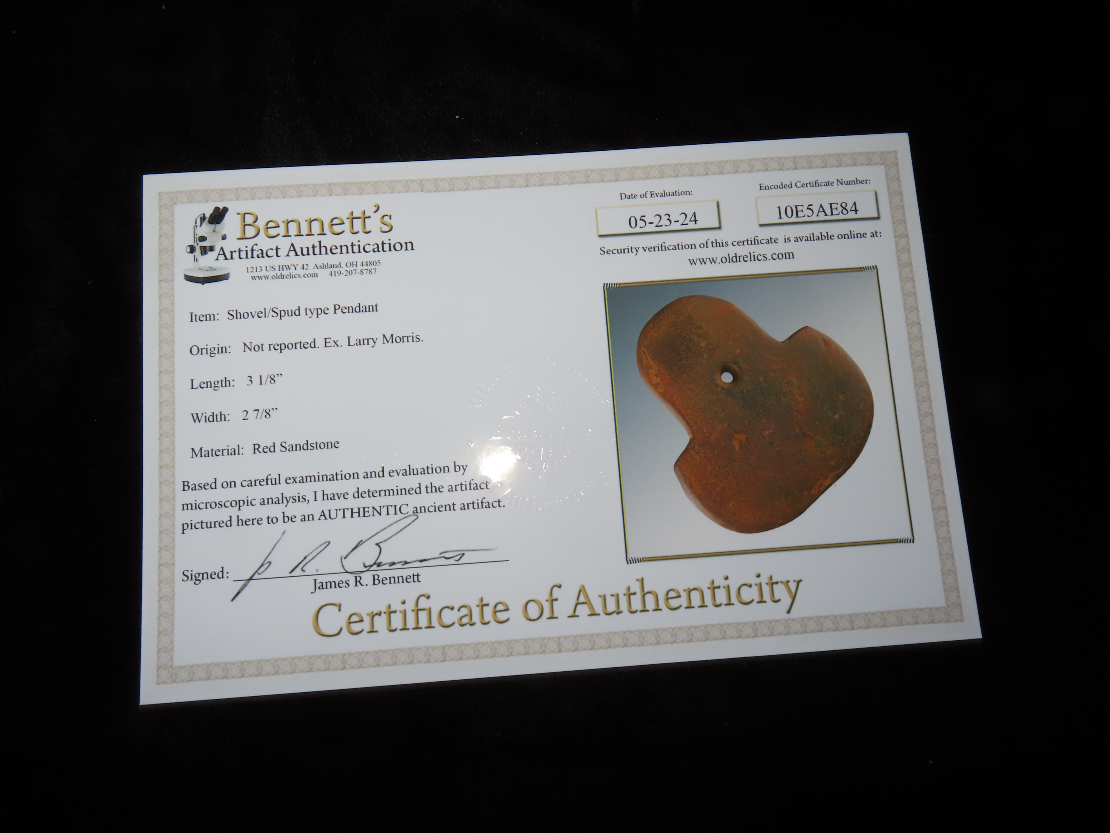 3 1/8″ Spud Pendant, Bennett COA, Ex Larry Morris Collection