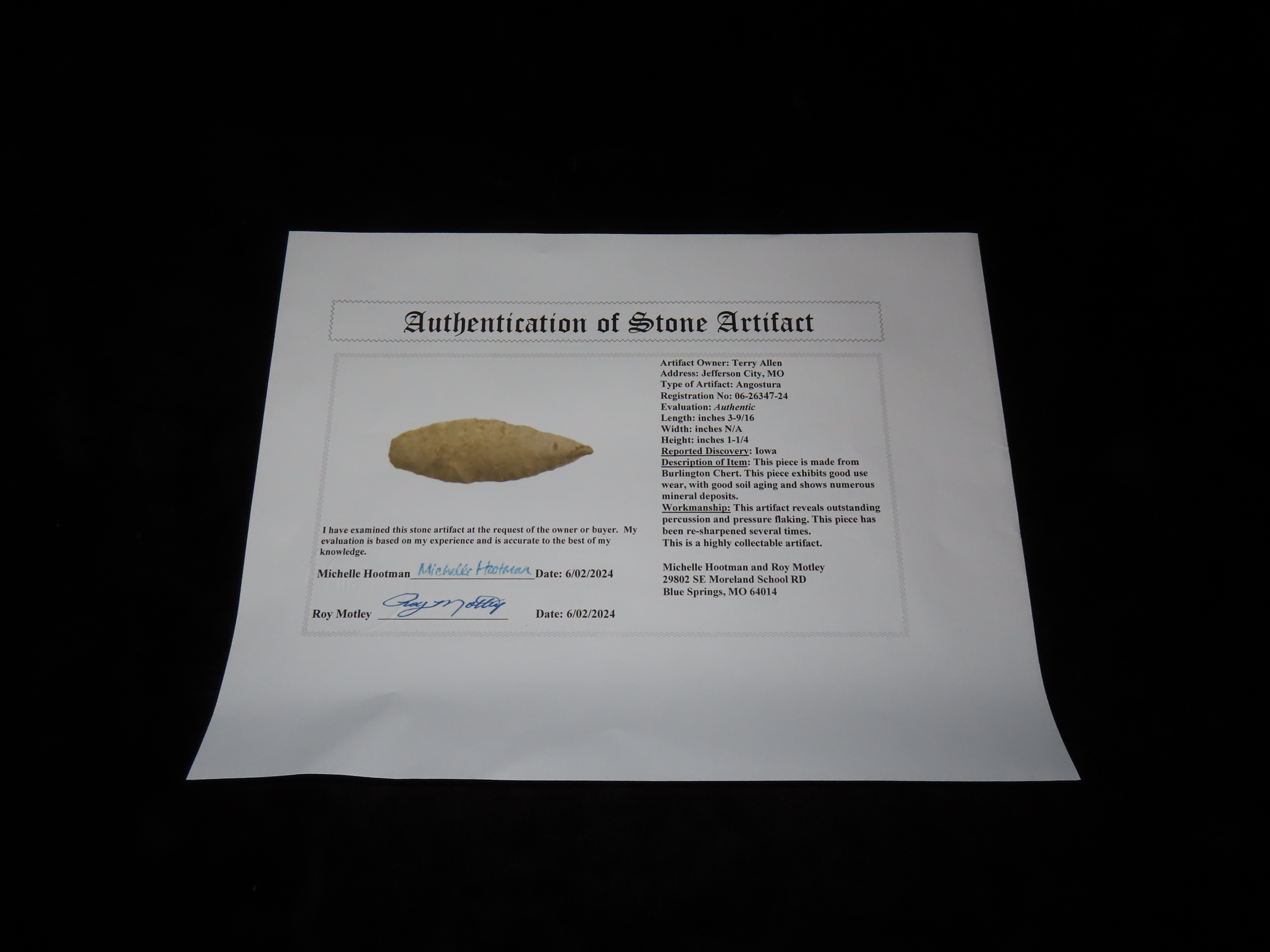 3 9/16″ Angostura, Motley COA, found in Iowa, Ex Terry Allen Collection