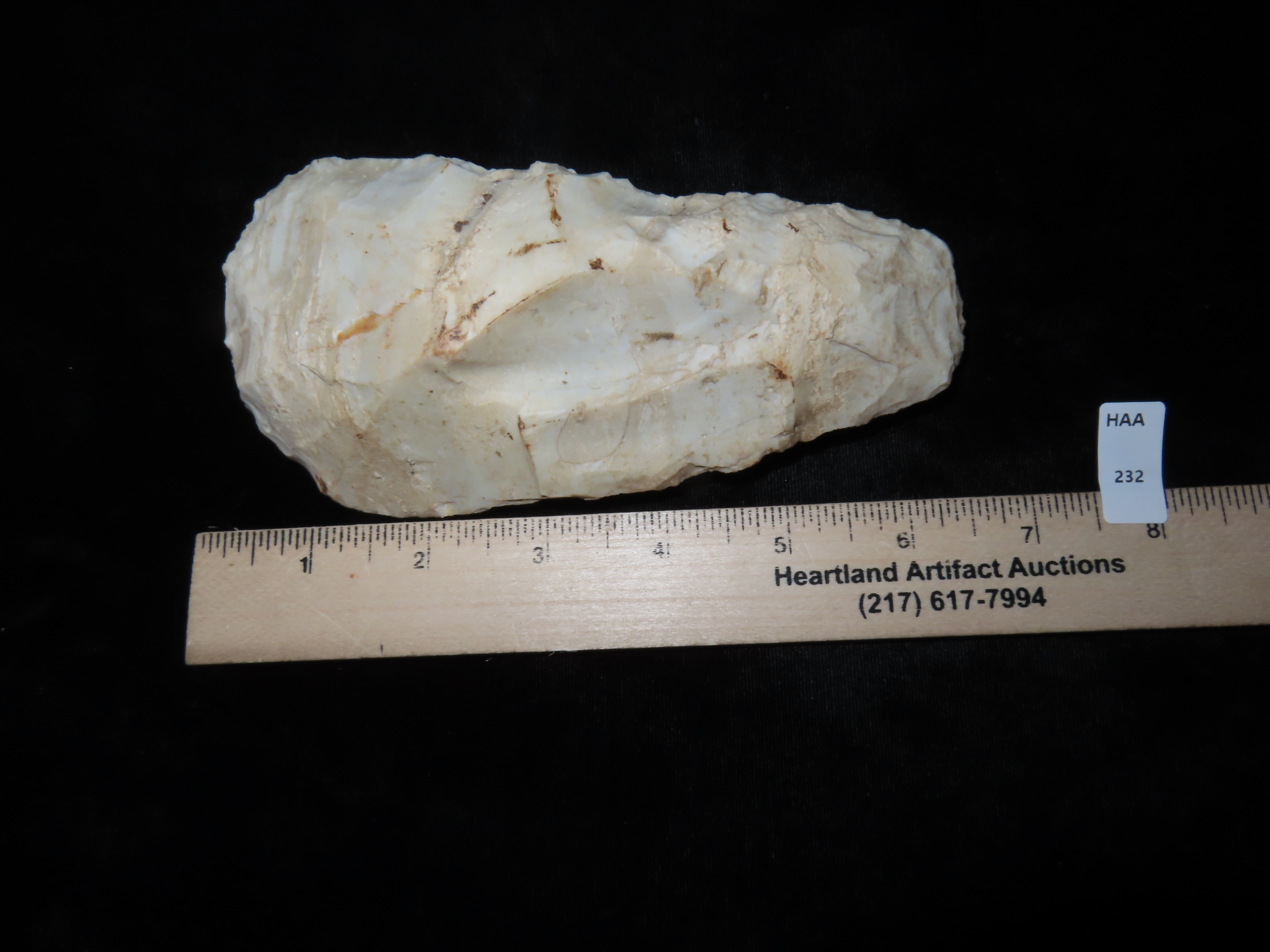 6 1/4″ Flint Hand Axe, found in Missouri, Ex Steve Lemons Collection