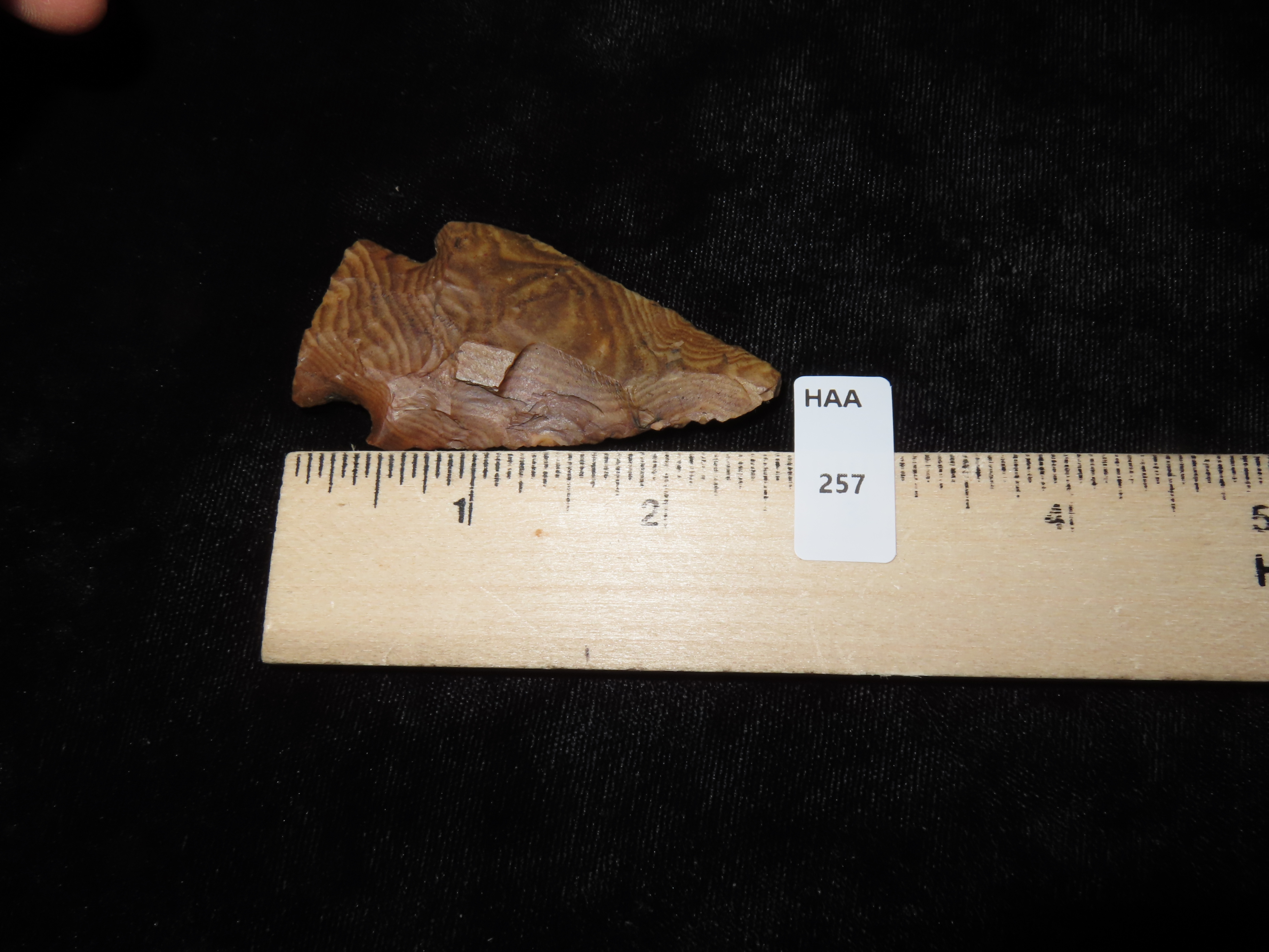 2 1/2″ Petrified Wood Stemmed Point, Ex Dennis Stonewall Collection