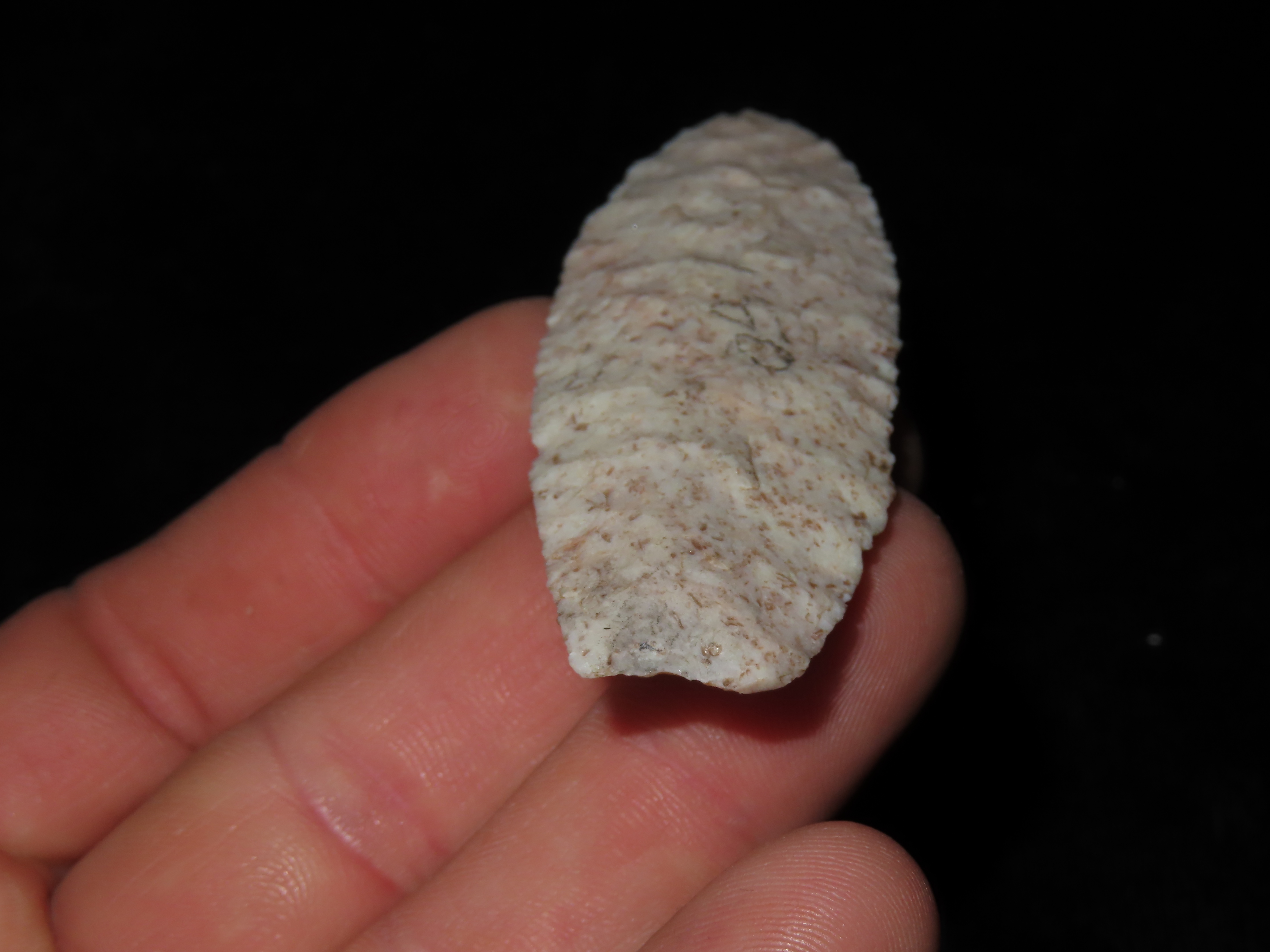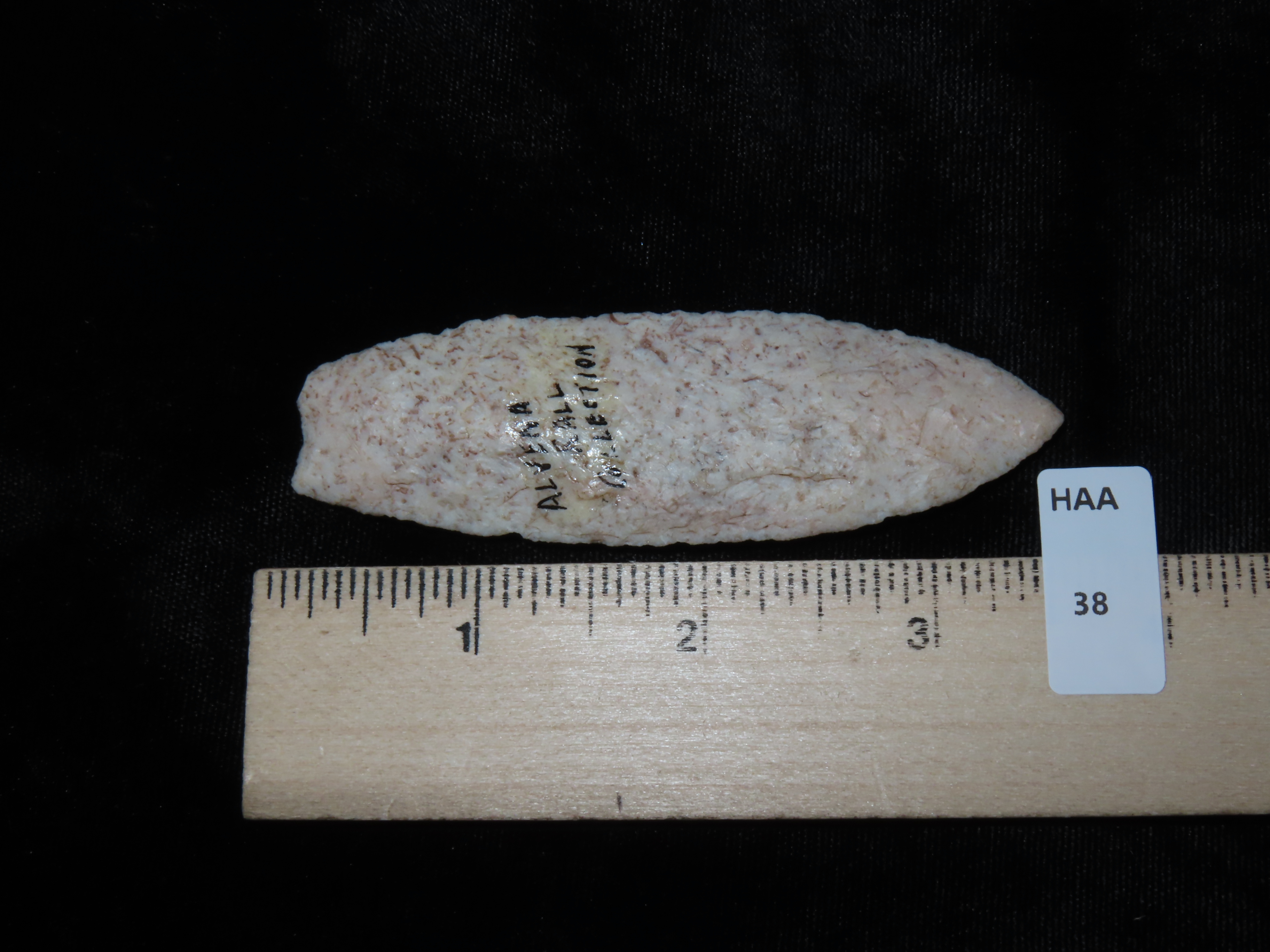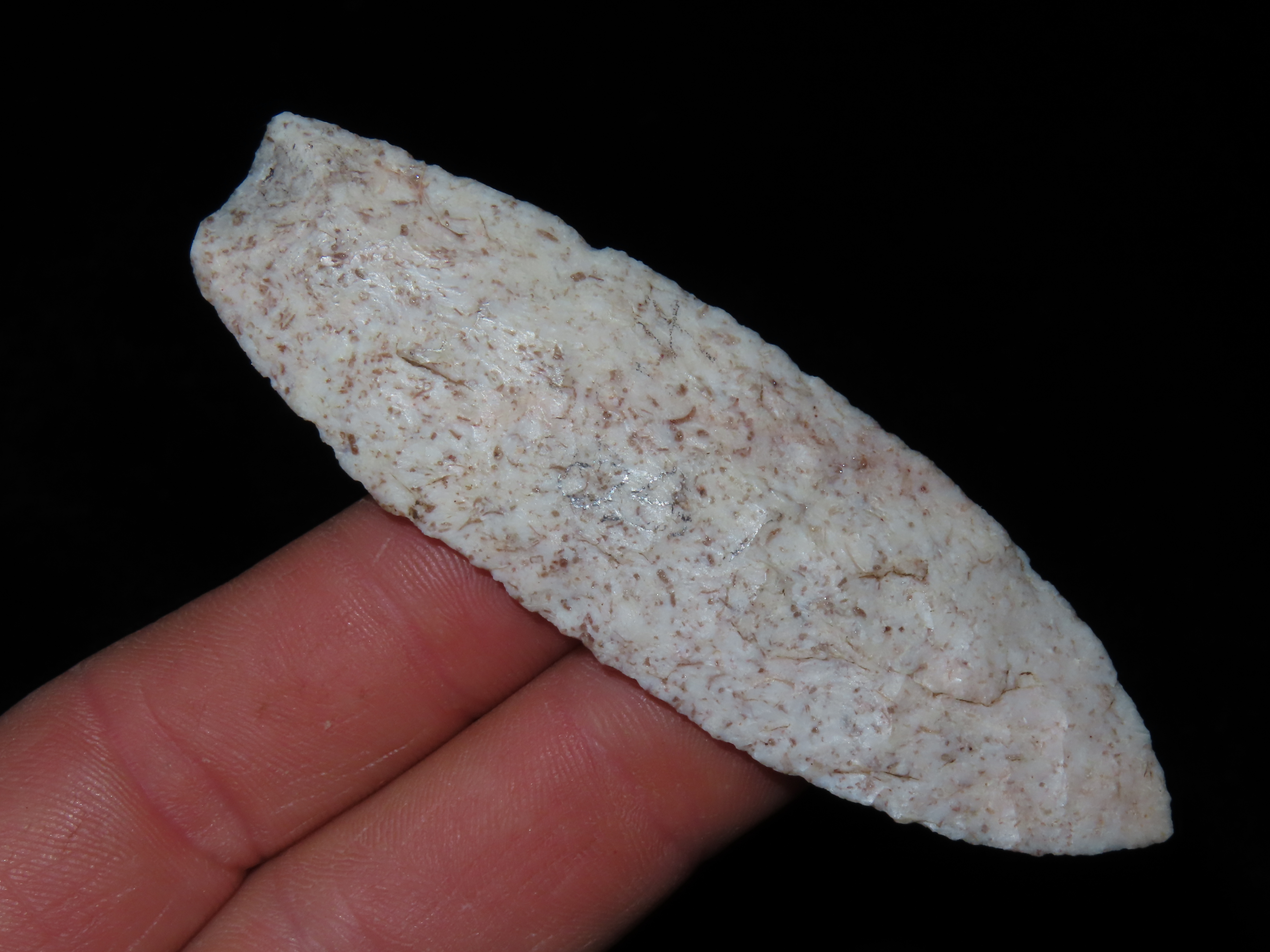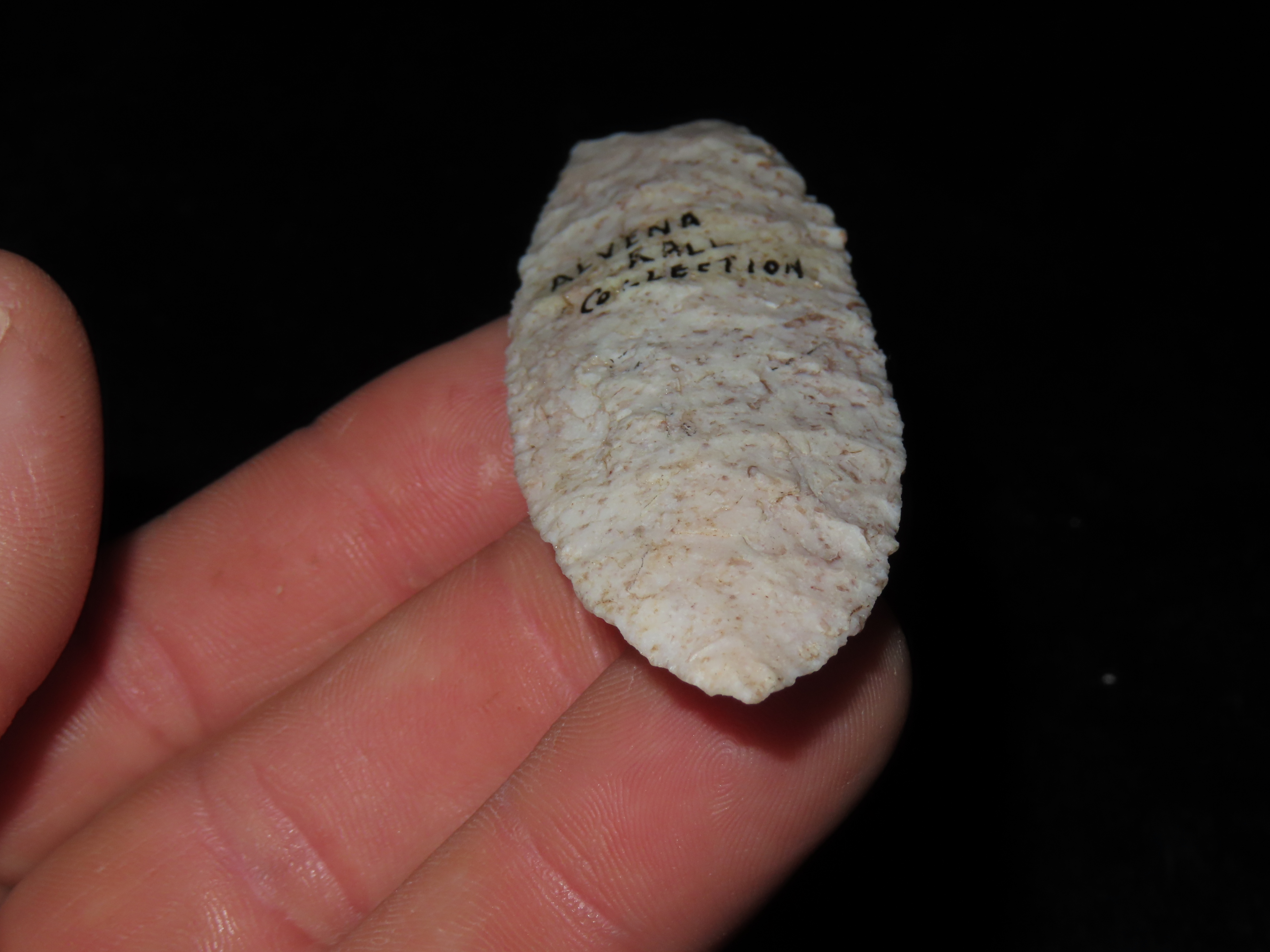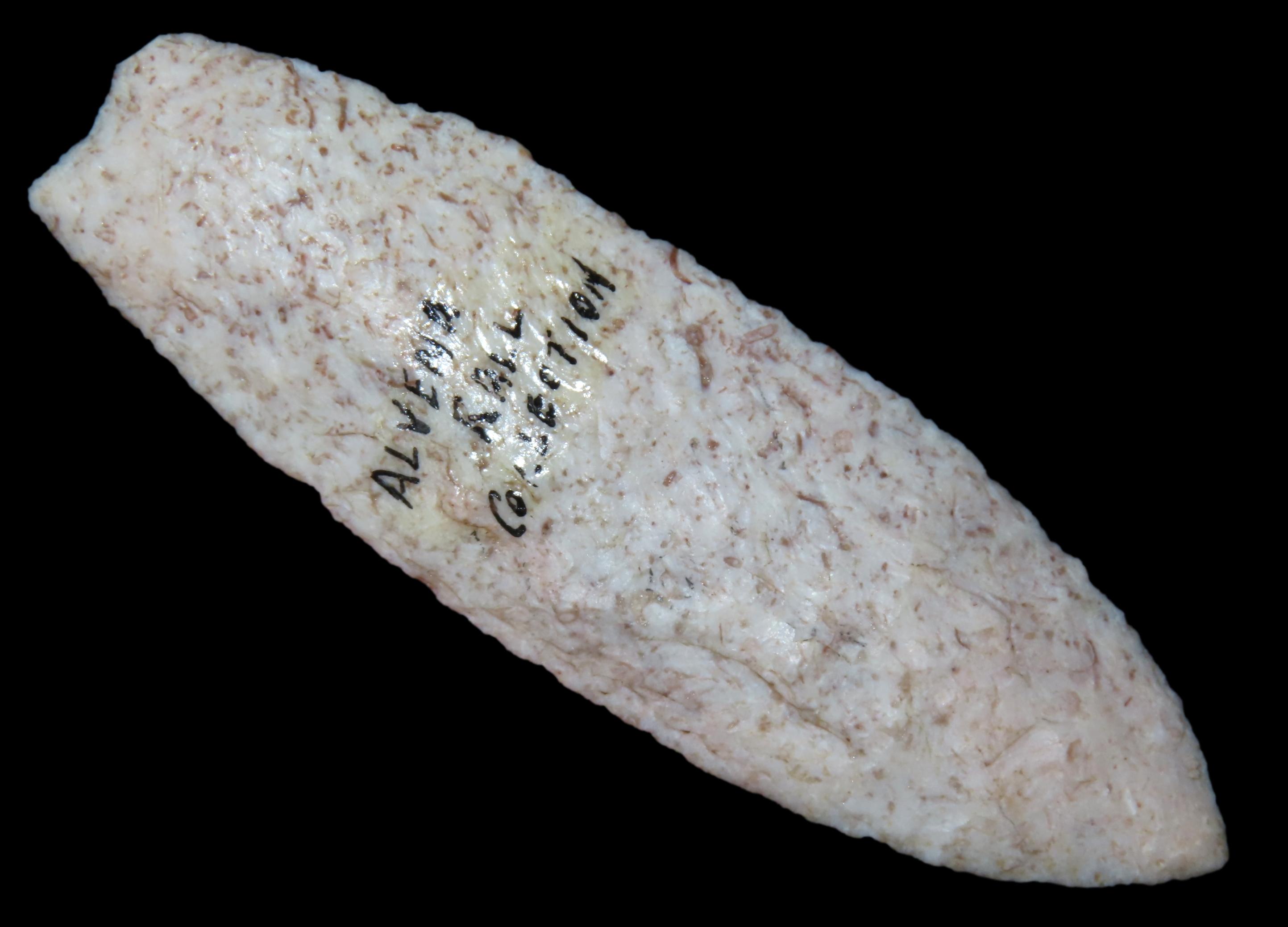 3 1/2″ Agate Basin, found in Missouri, Ex Alvena Rall, Ex George Robertson Collection