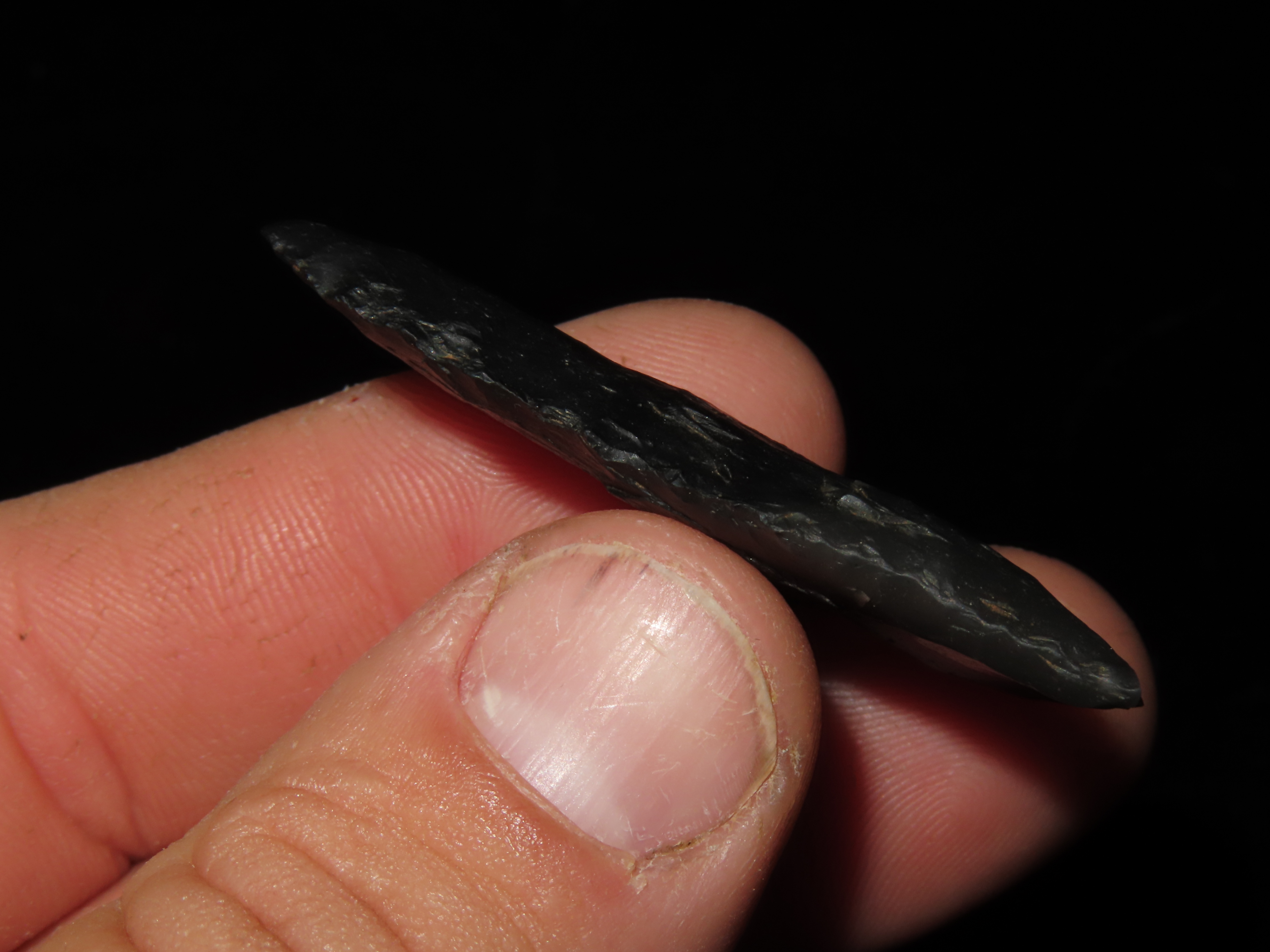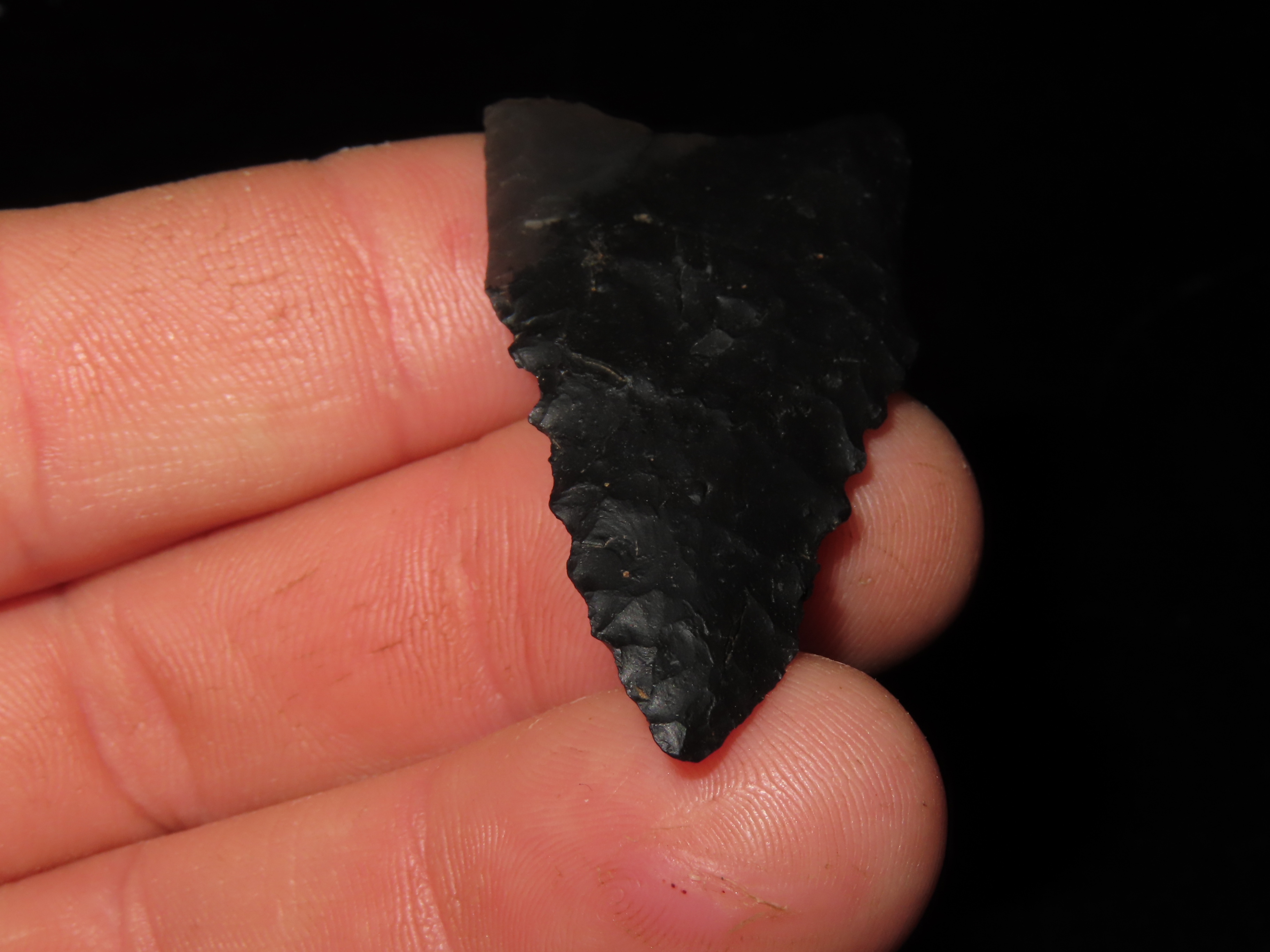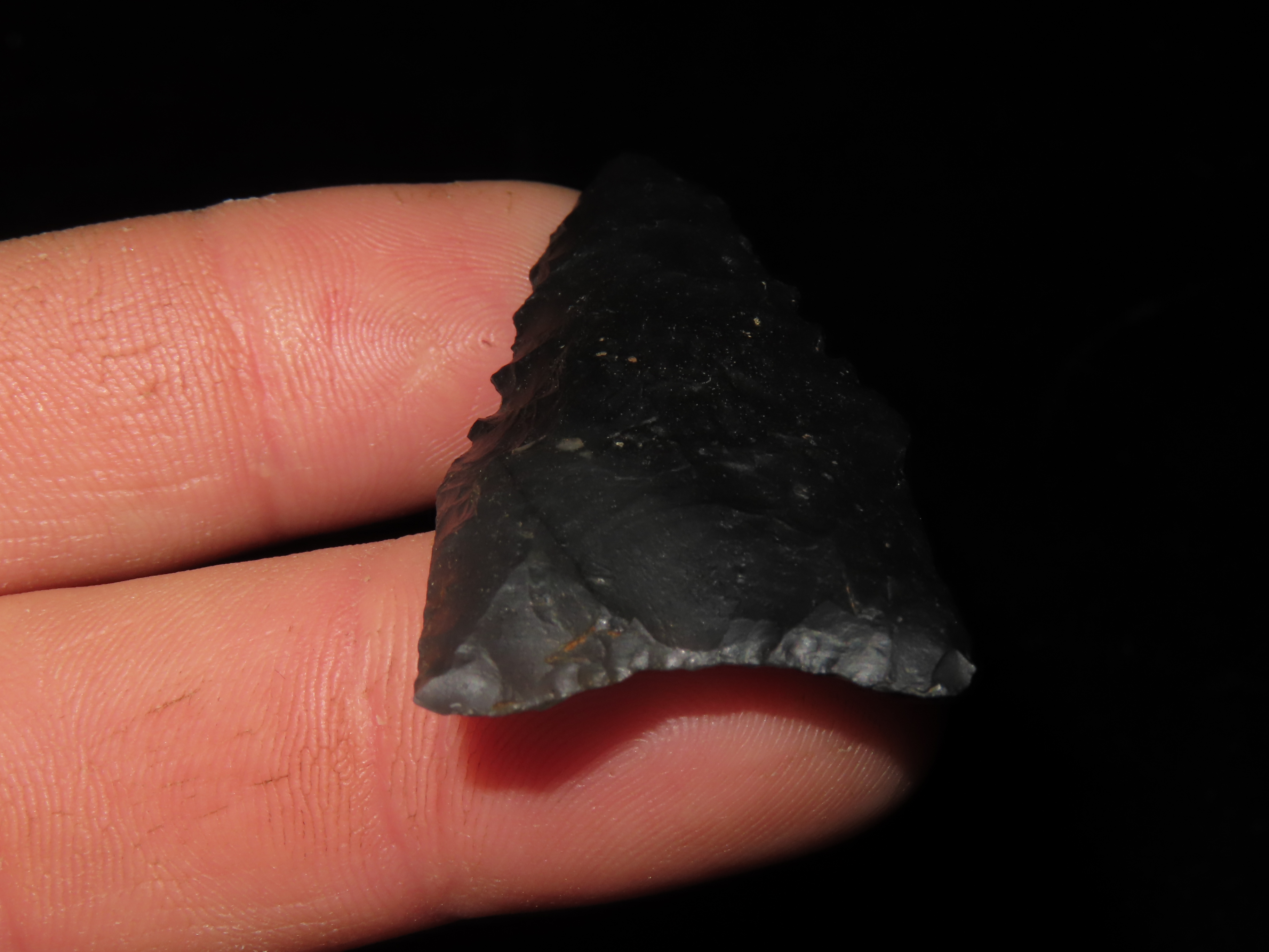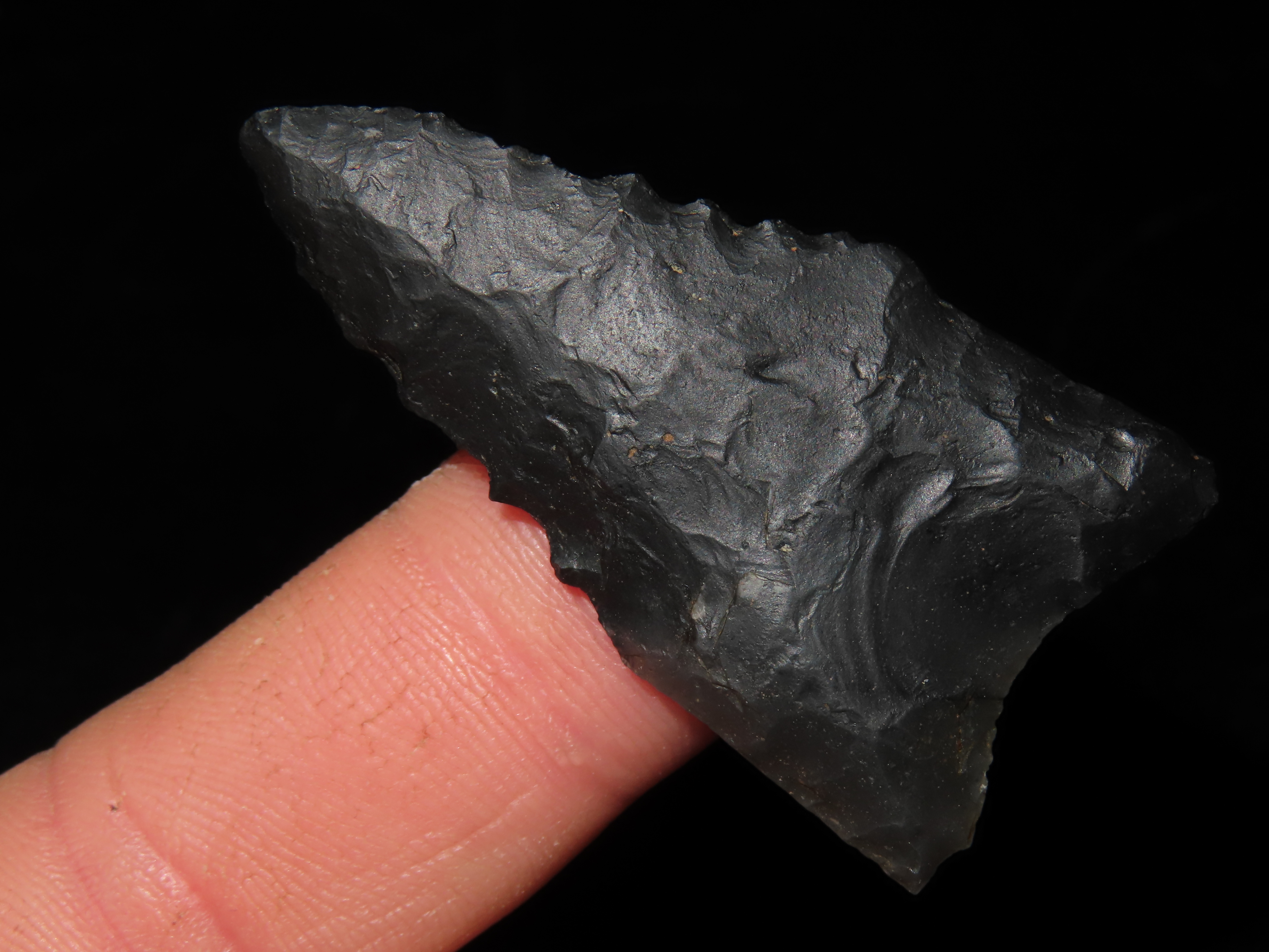 2″ Black Novaculite Dalton, Motley COA, found in Clay Co., Arkansas, Ex George Robertson Collection