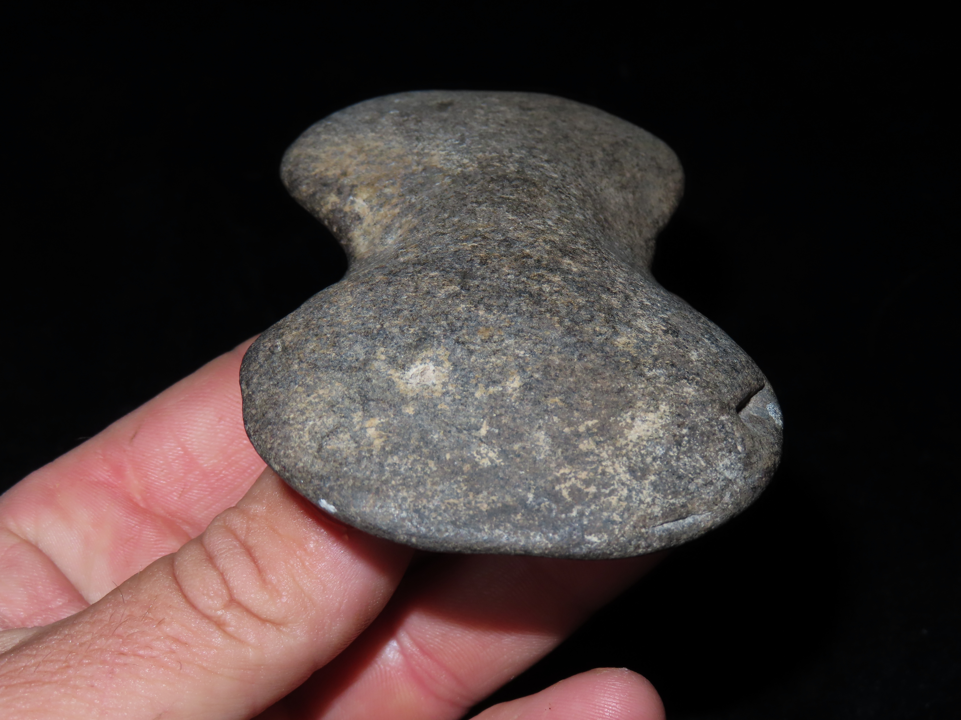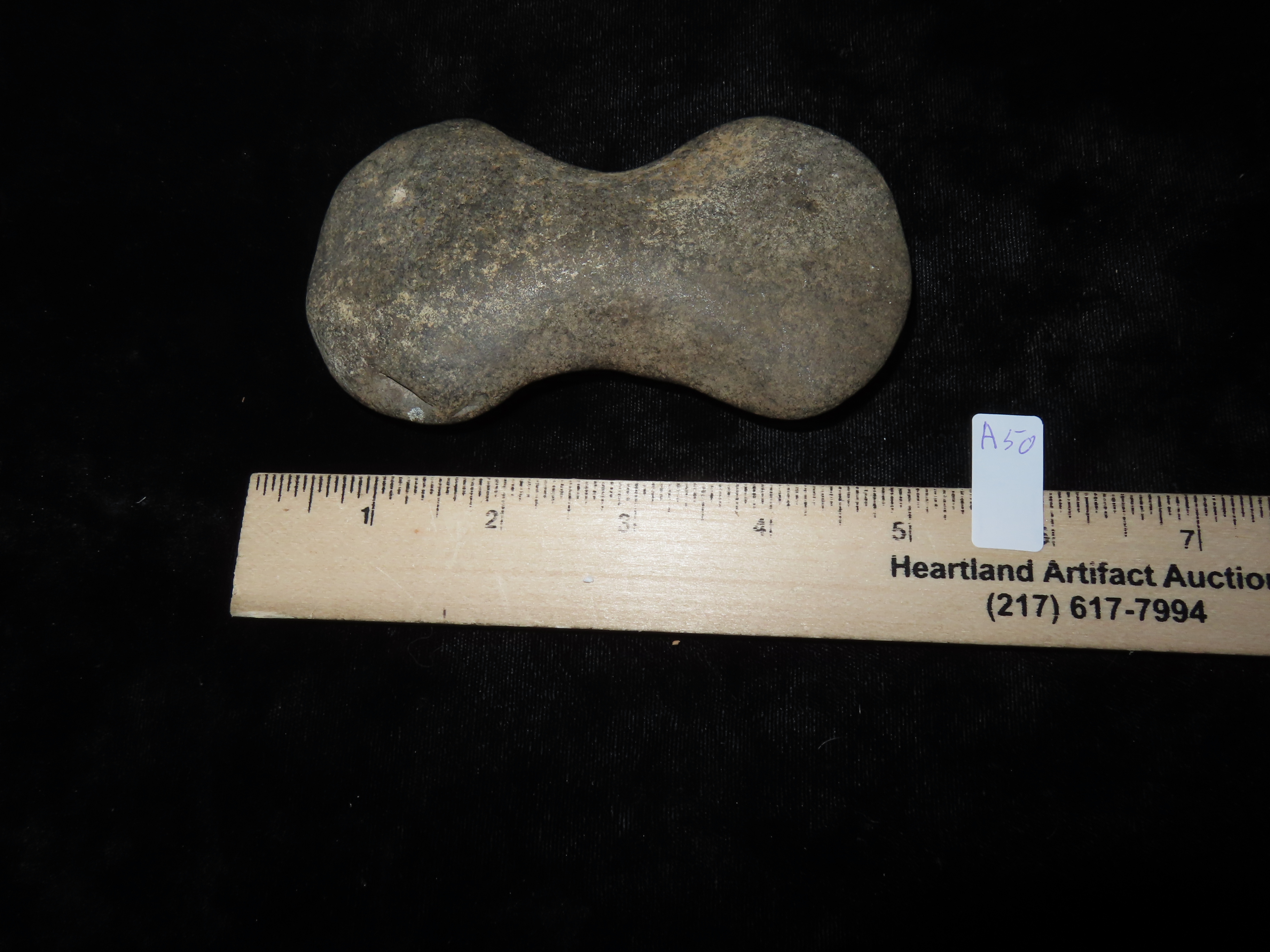 4 3/4″ Tie-On Bannerstone, Motley COA, found in Scott Co., Missouri, Ex George Robertson Collection