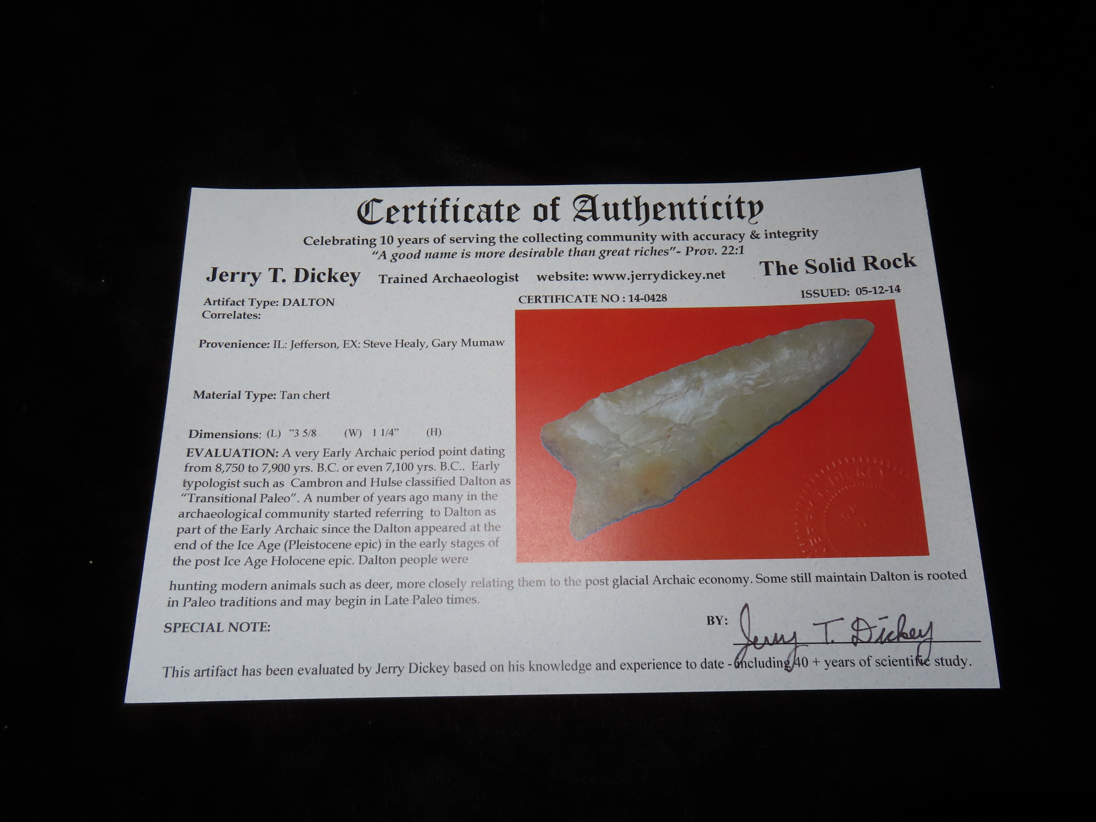 3 5/8″ Dalton, Dickey COA, found in Jefferson Co., Illinois