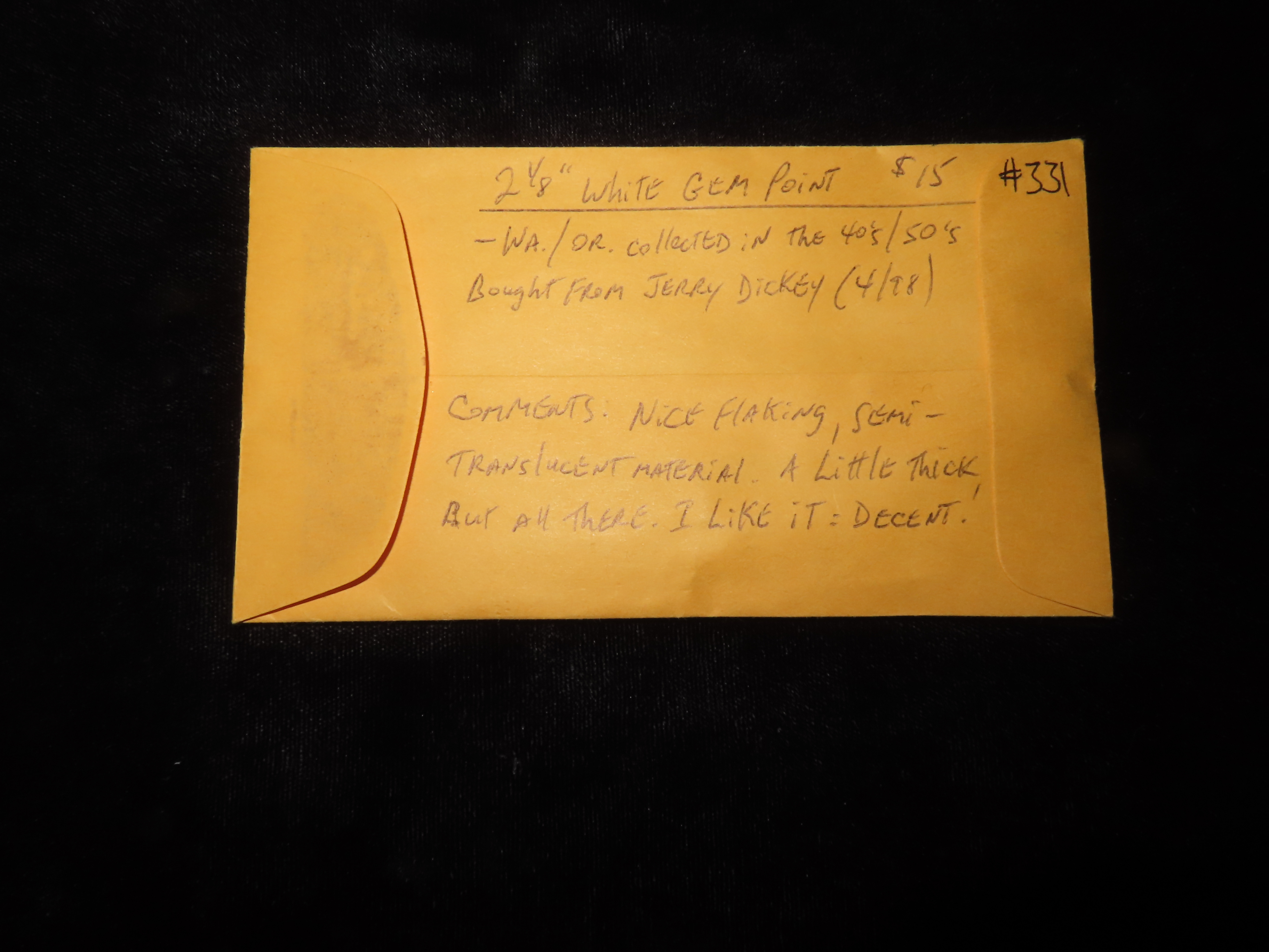 2 1/8″ Gem Pt, found in either Washington or Oregon states, Ex Jerry Dickey