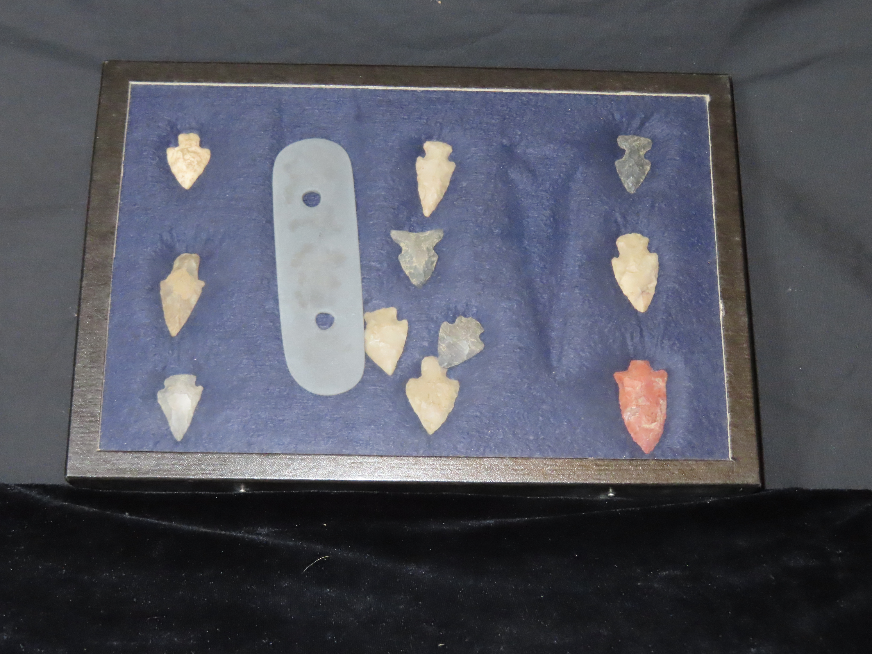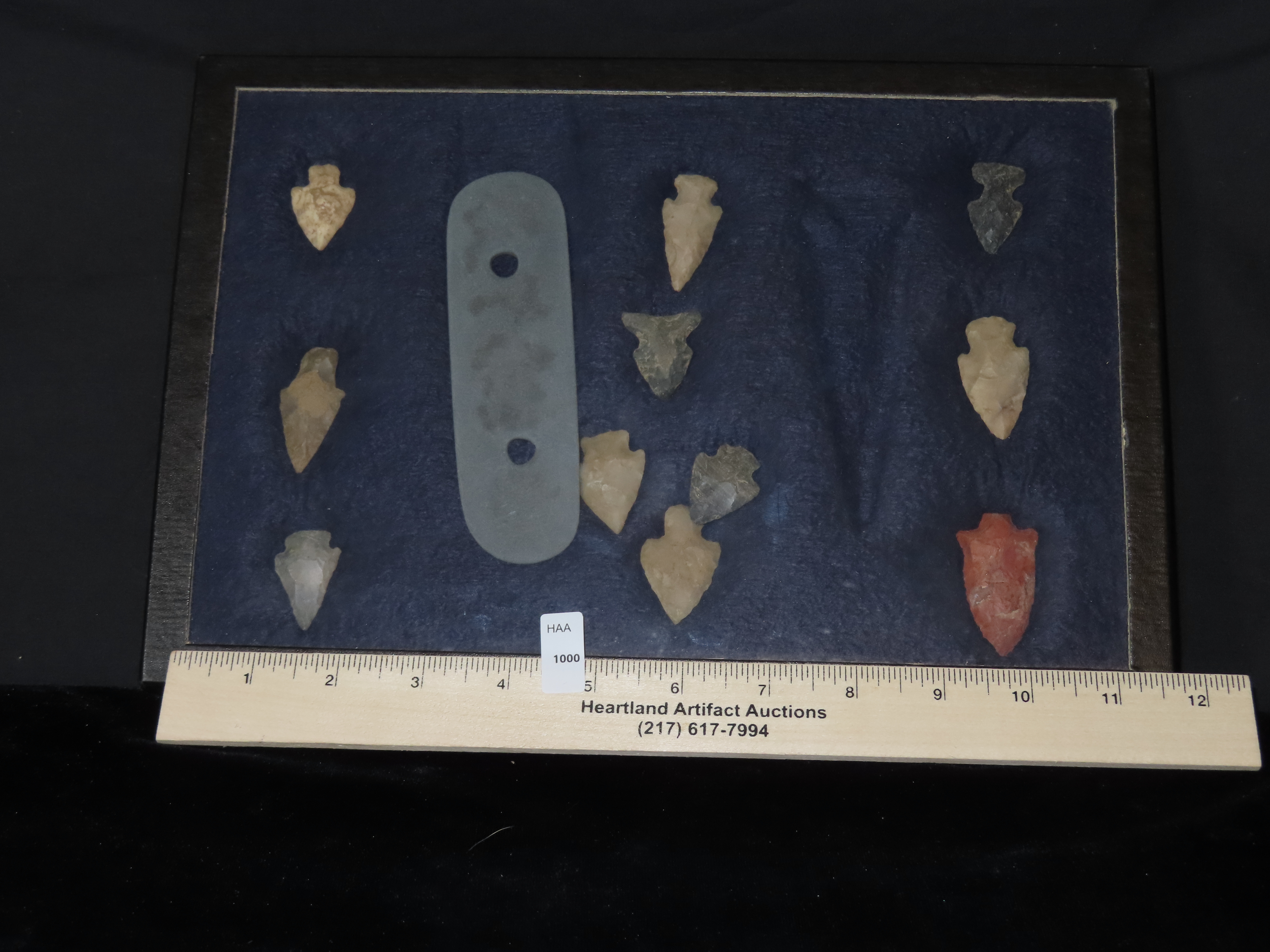 12″ x 8″ Frame of Arrowheads and Gorget ***REPRODUCTION***
