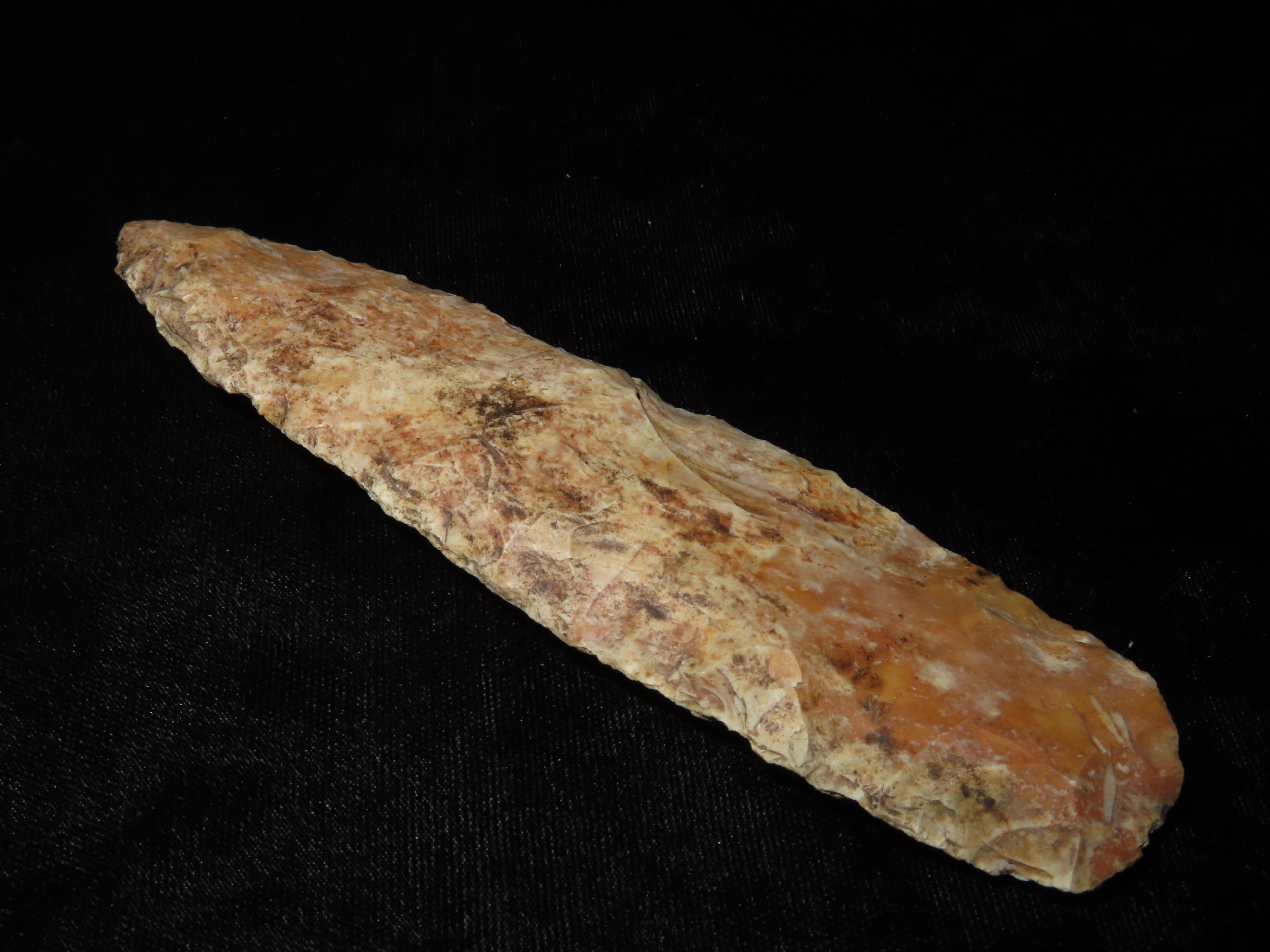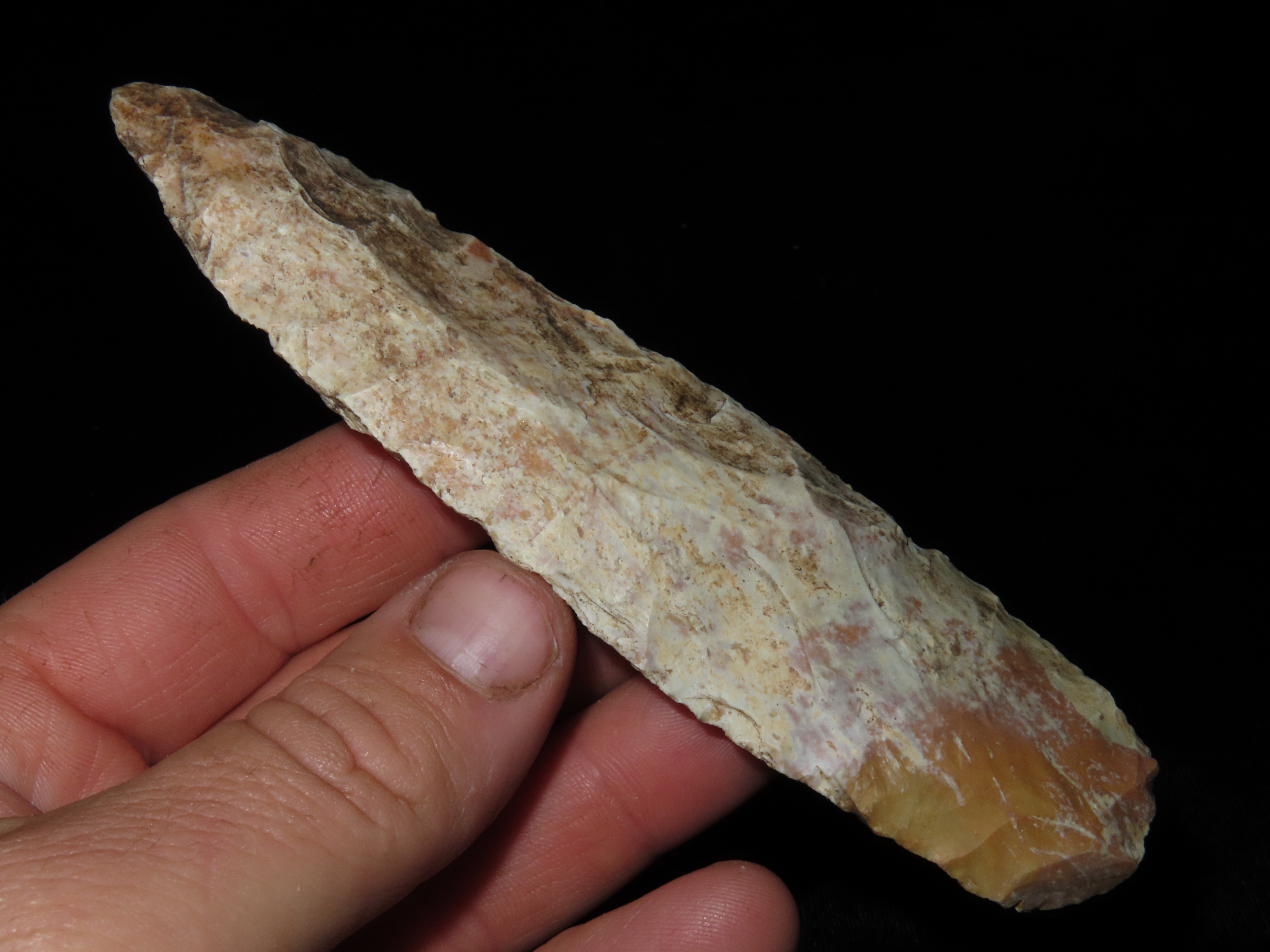 5 1/2″ Creek Stained Large Archaic Knife, Found by Kevin Timmerline near Burlington, IA