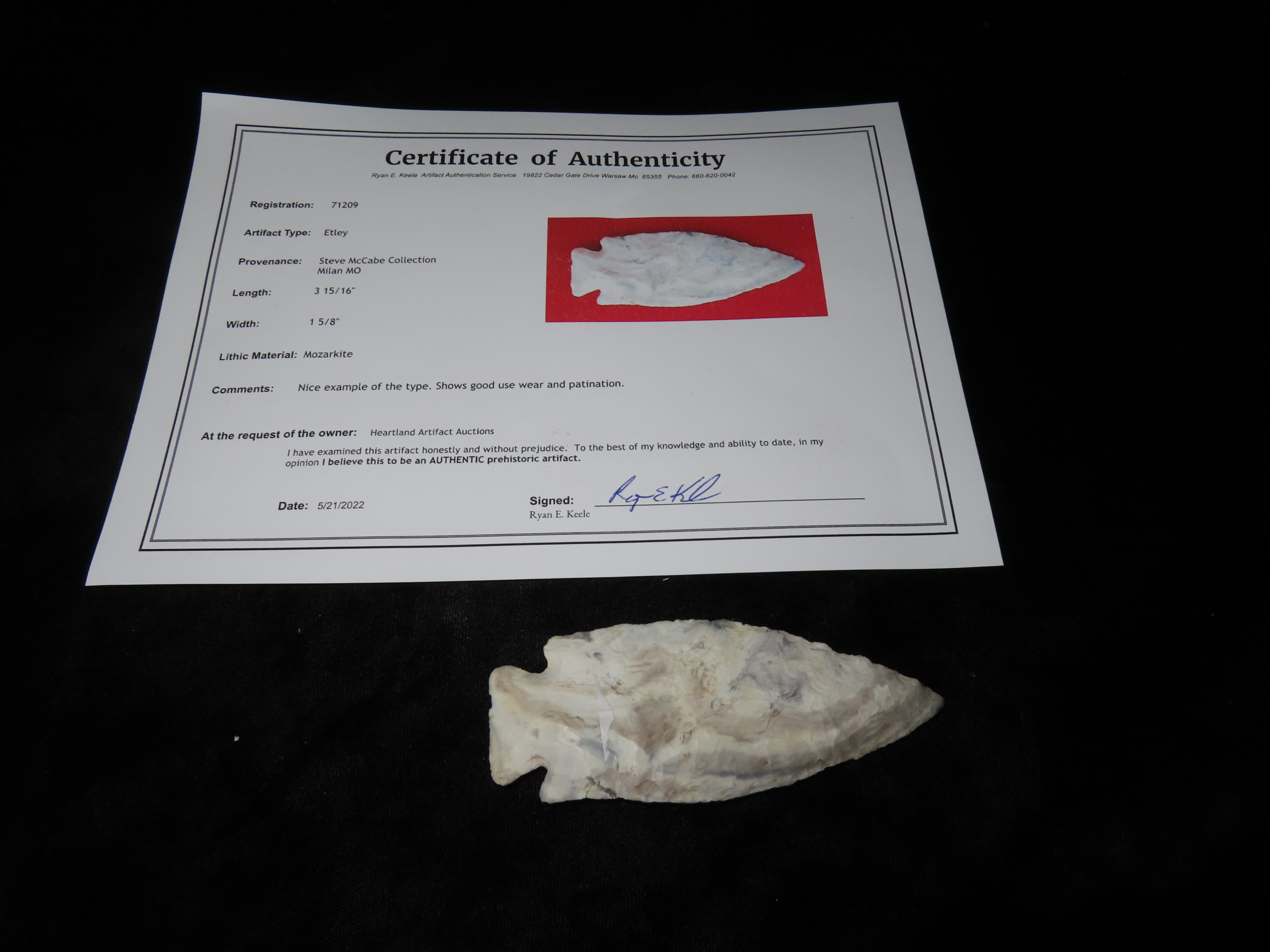 3 15/16″ Etley, Keele COA, Ex Steve McCabe, Sullivan Co., Missouri