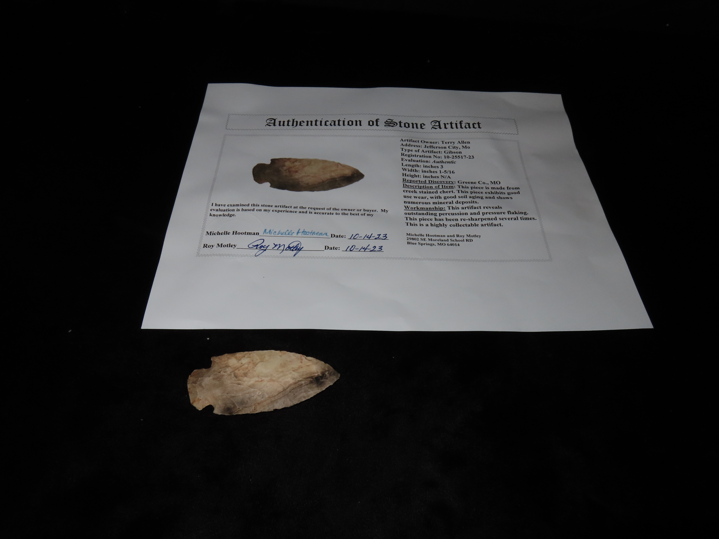 1 5/16″ Gibson, Motley COA, found in Greene Co., Missouri, Ex Terry Allen