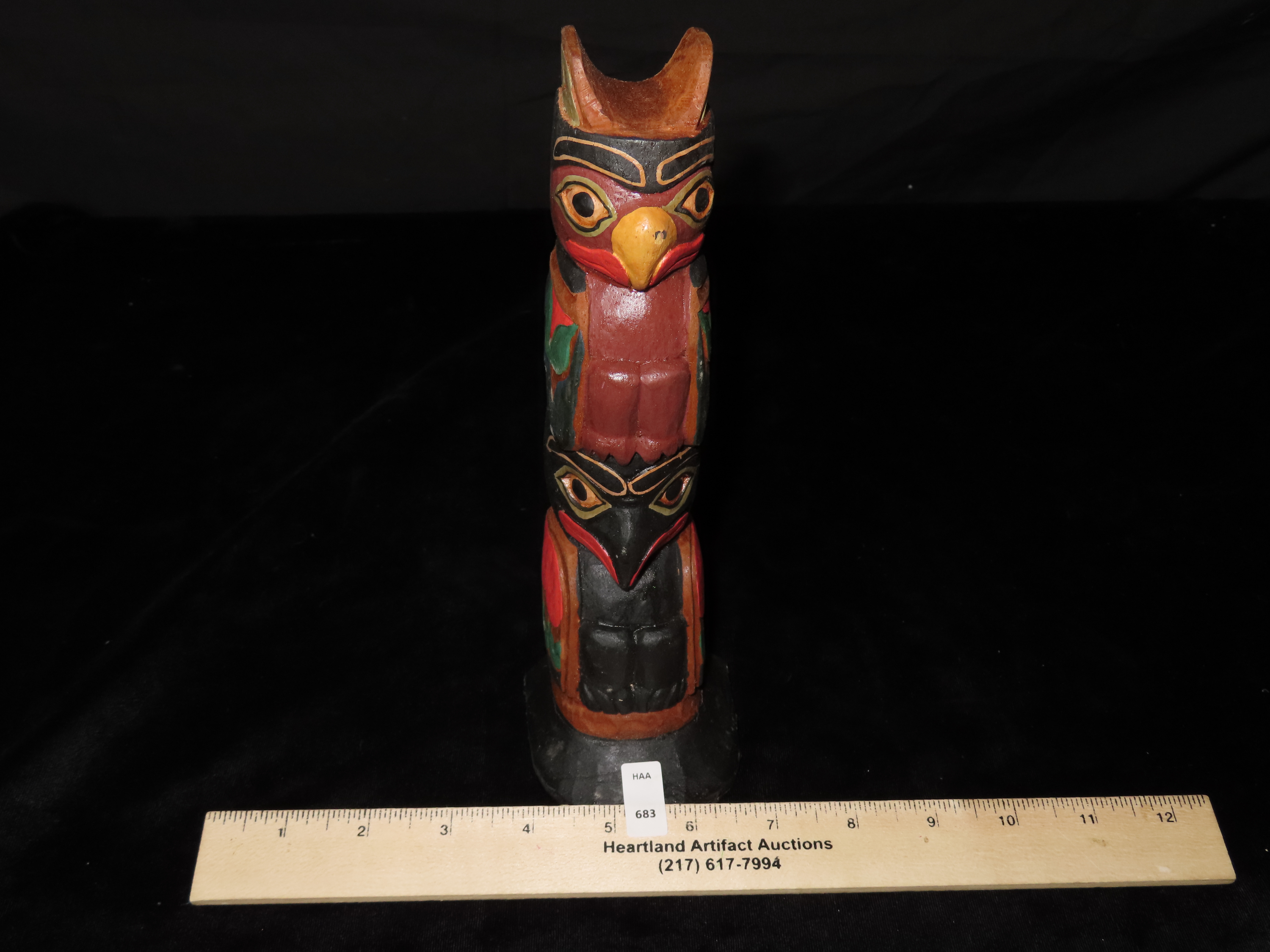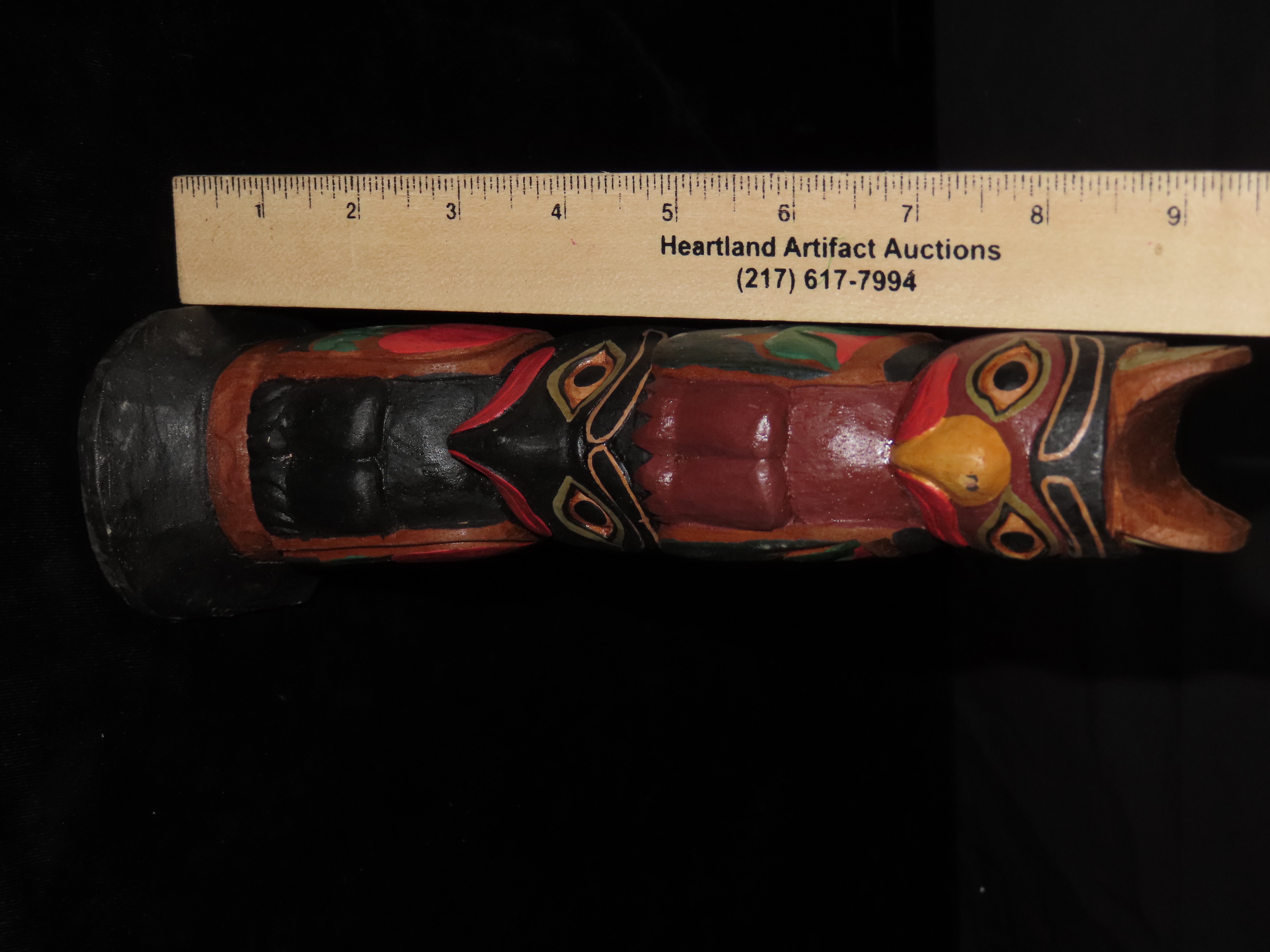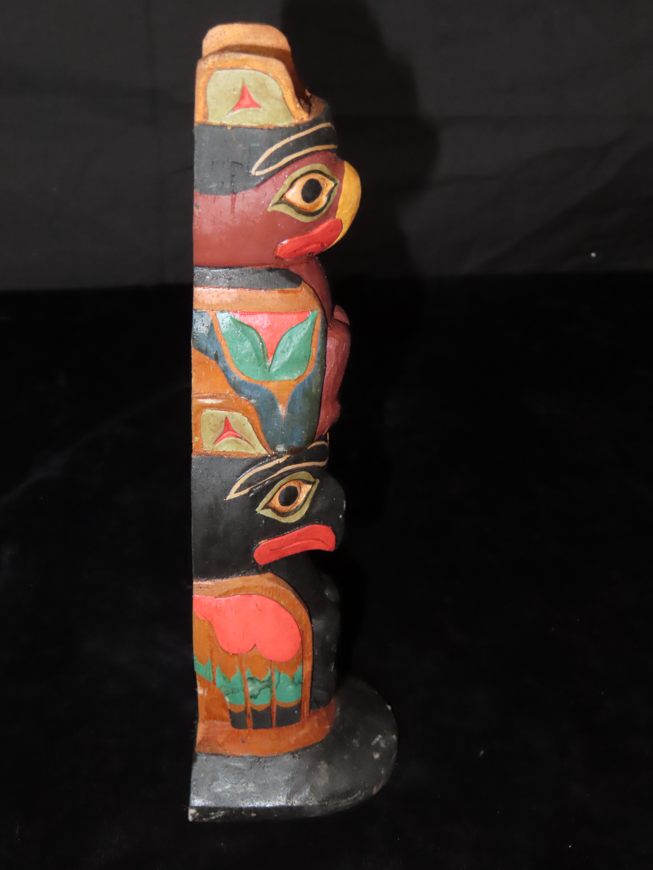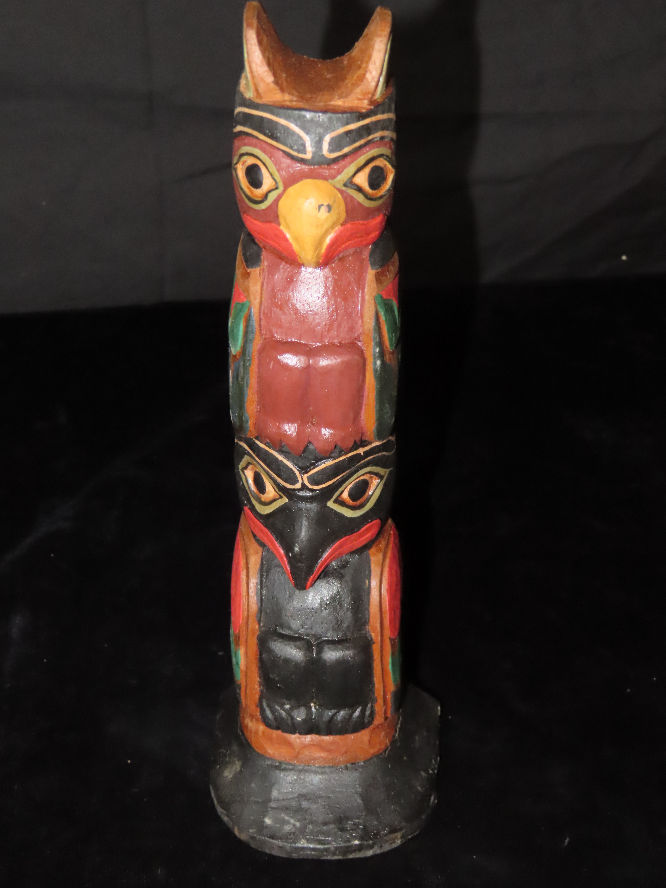 9 1/4″ Tourist Trade Totem Pole from the Pacific Northwest depicting Crow and Owl