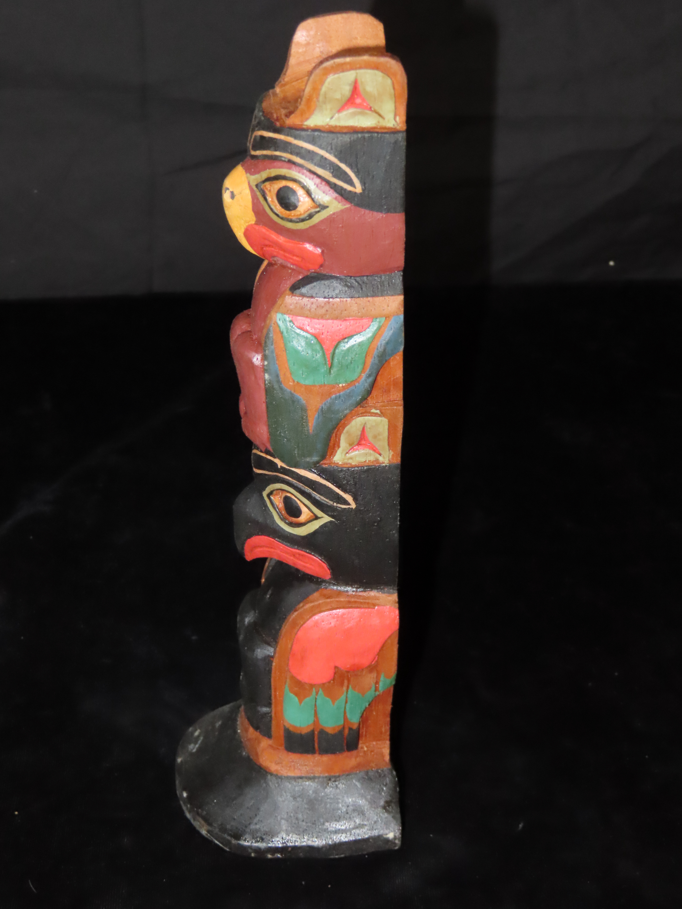 9 1/4" Tourist Trade Totem Pole from the Pacific Northwest depicting Crow and Owl