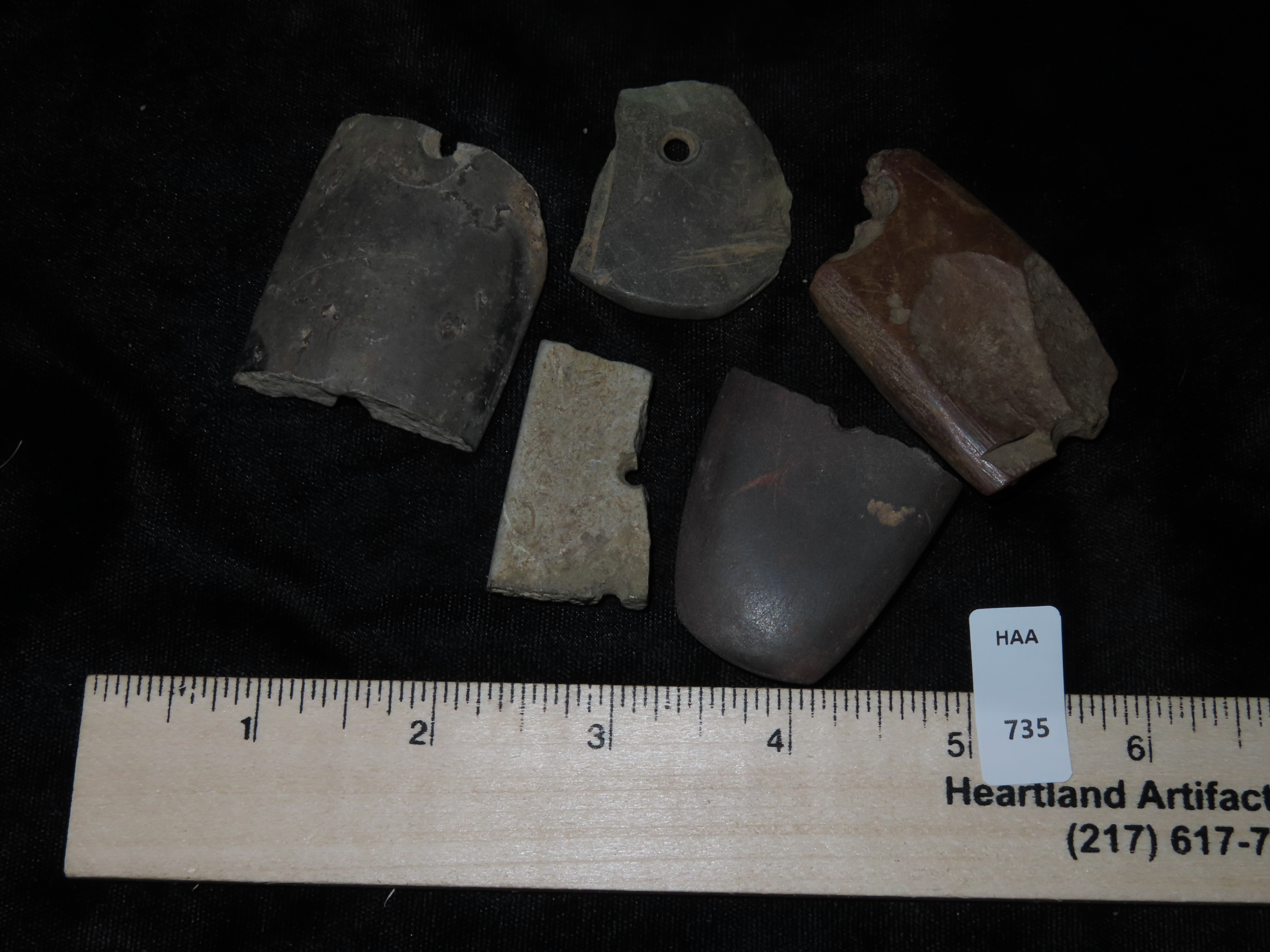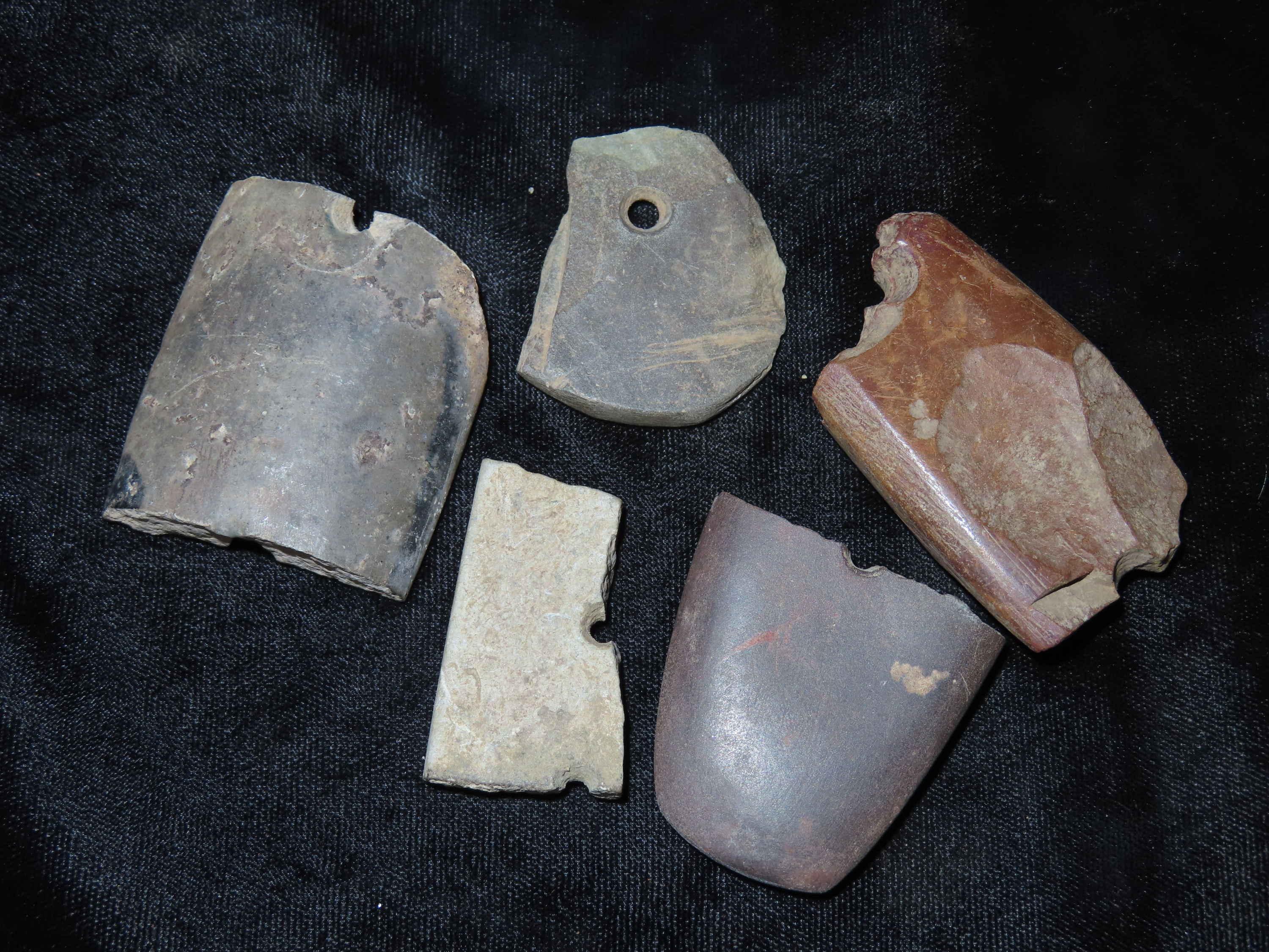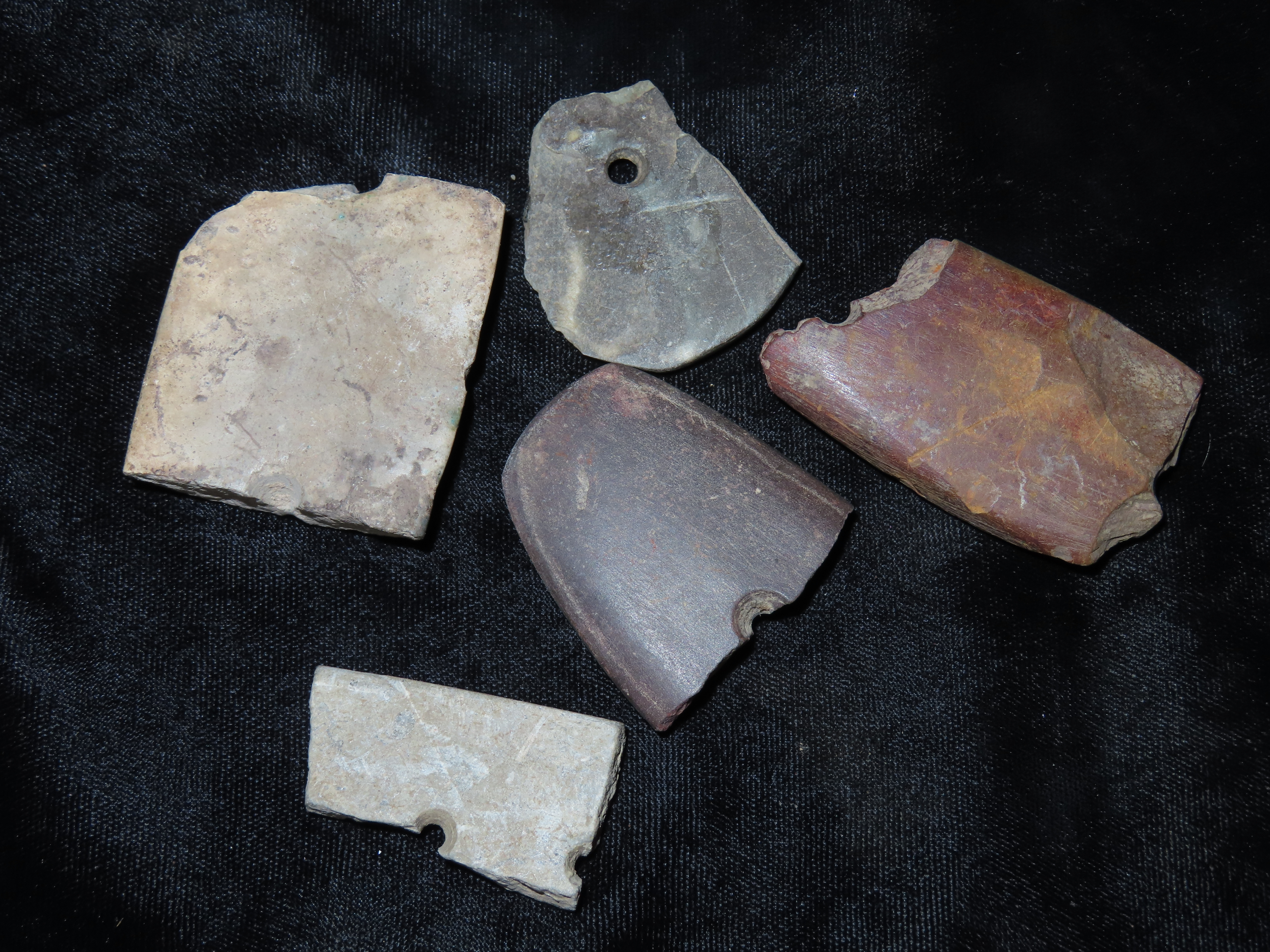 Group of 5 “Heartbreaker” Gorget Pcs., all found in Midwestern United States