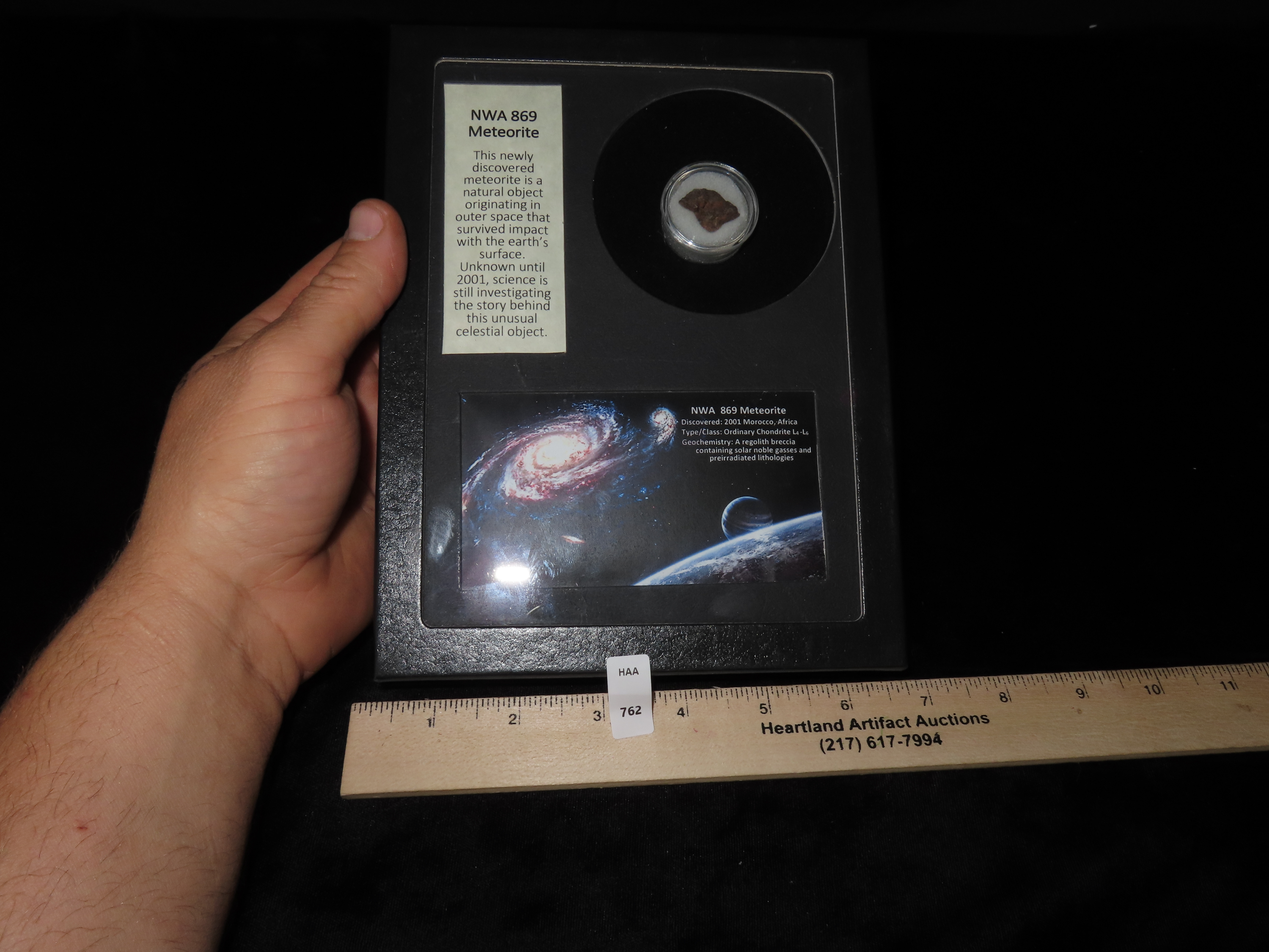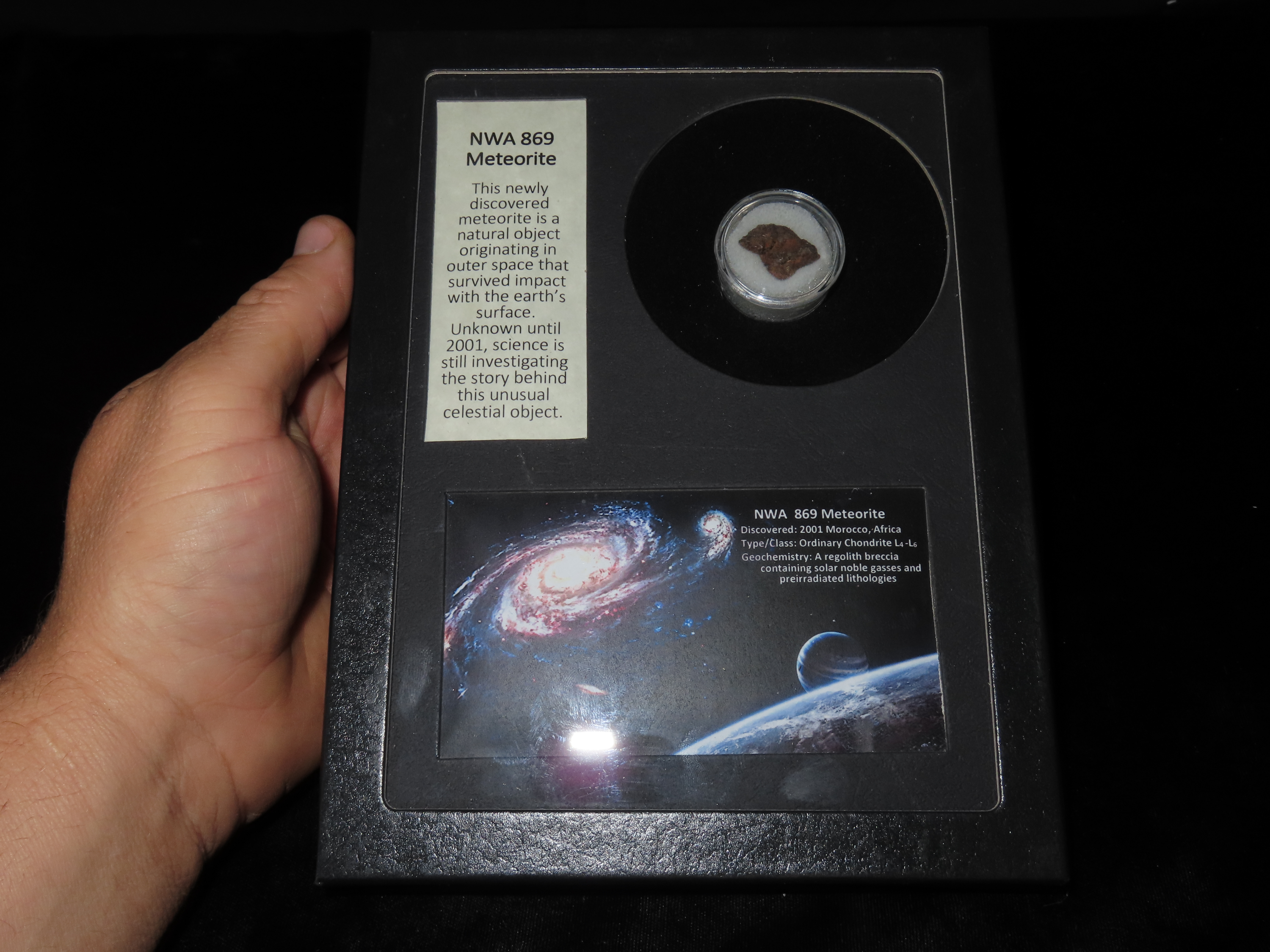 NWA 869 Meteorite Shard- in Collectors Case with Description- found in 2001 Morocco