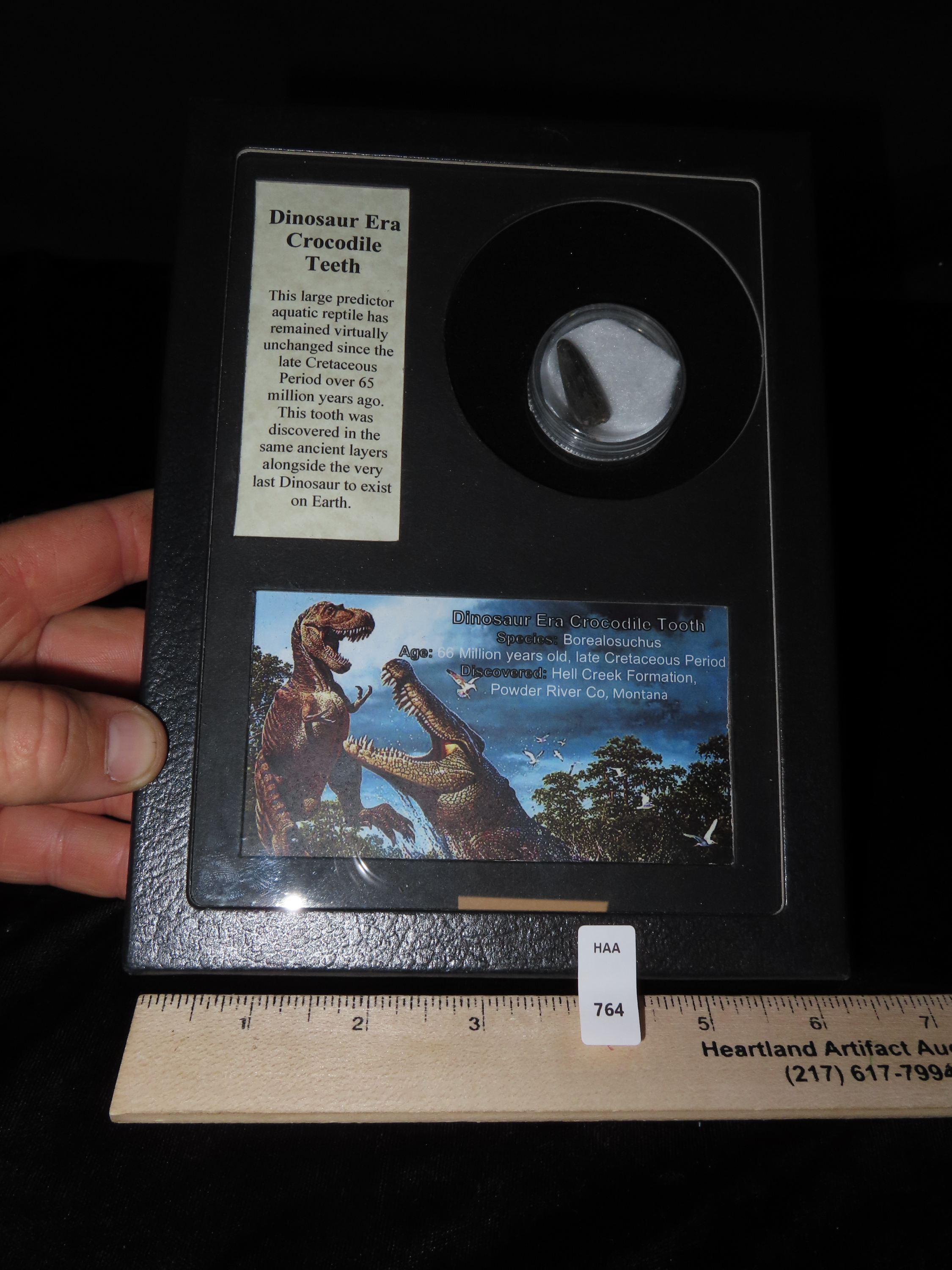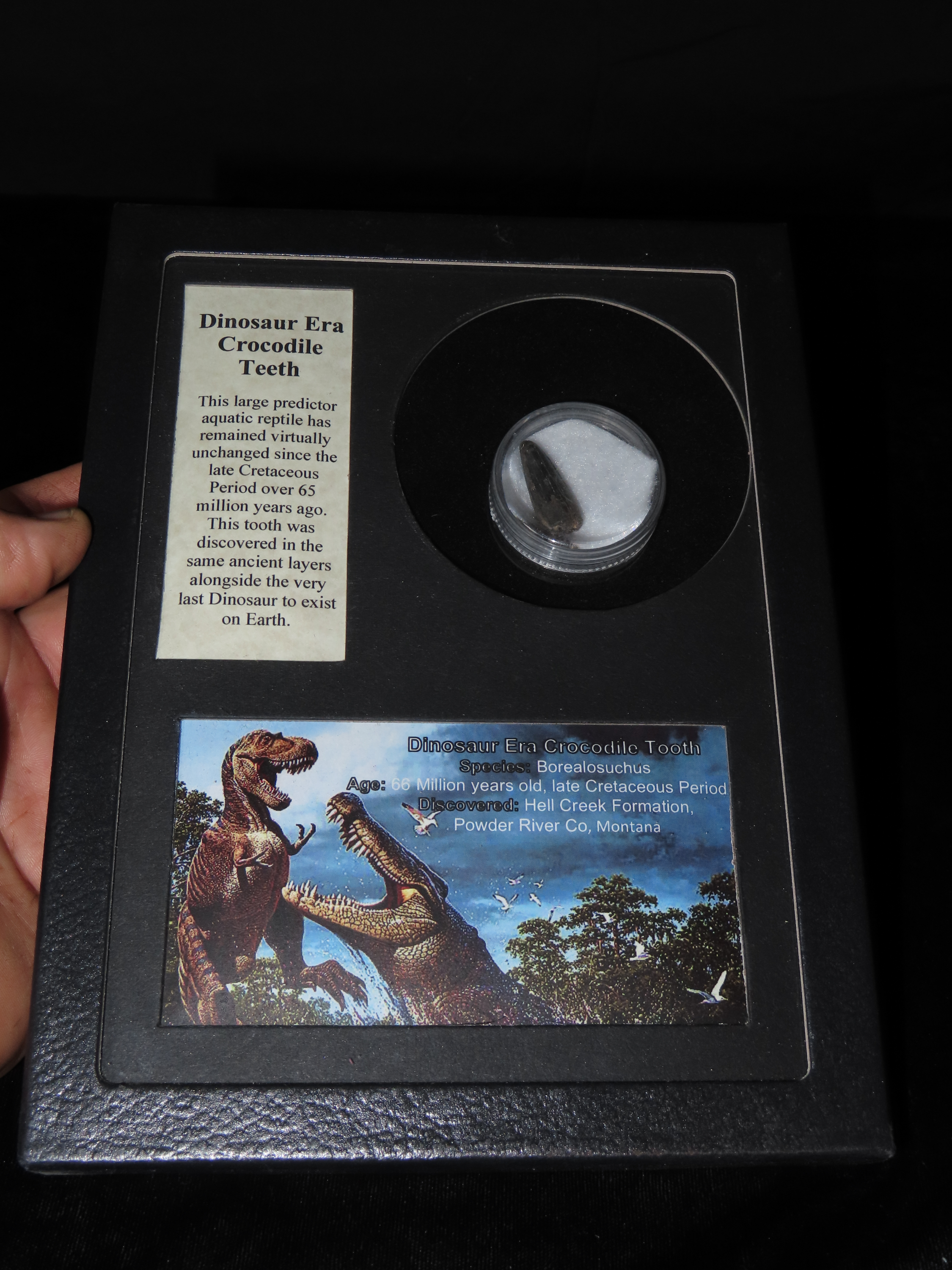 65 Million yr. old Fossilized Borealosuchus(Dinosaur-era Crocodile) Tooth, found at the Hell Creek Formation in Powder River, Montana-in collectors case
