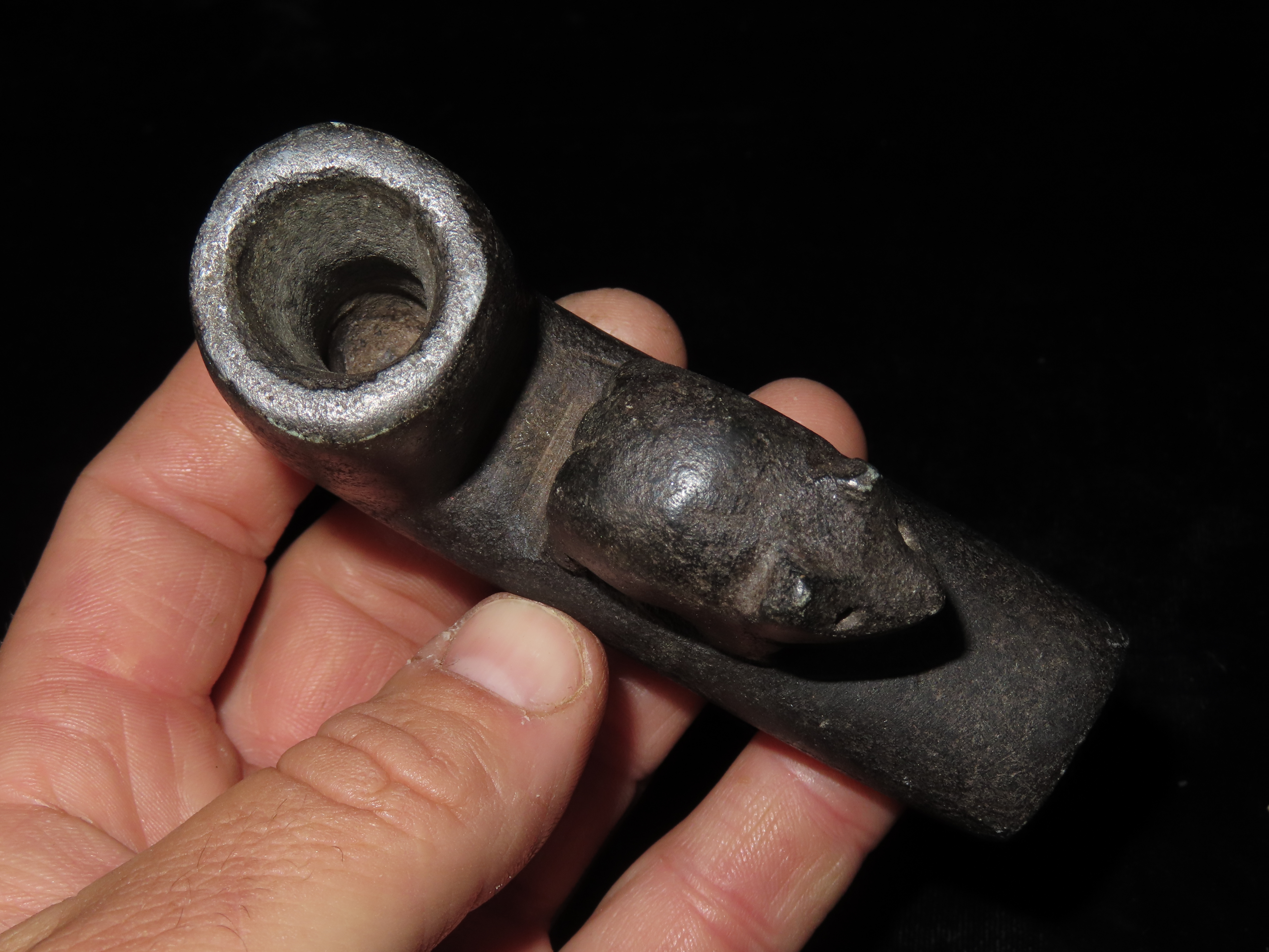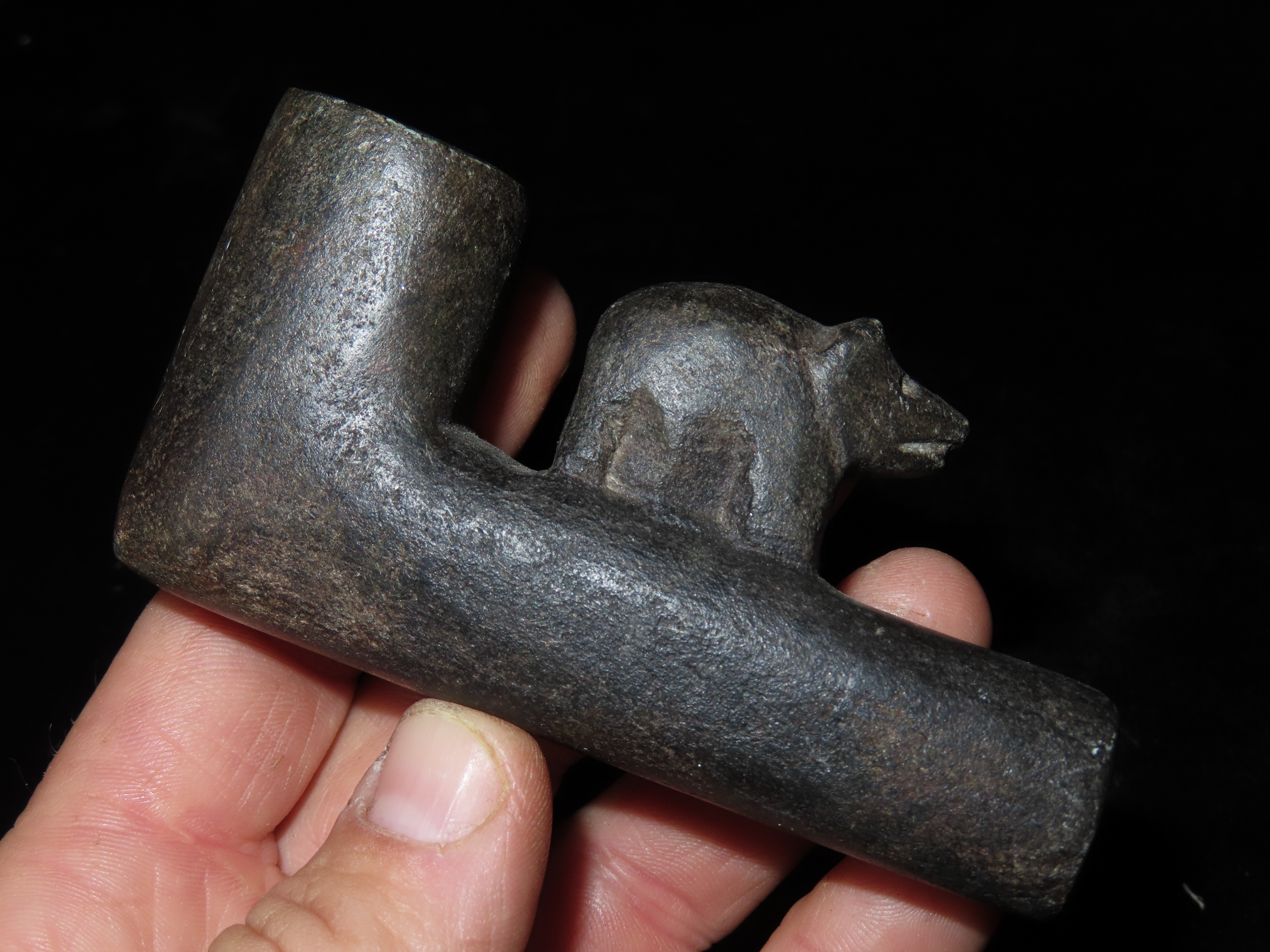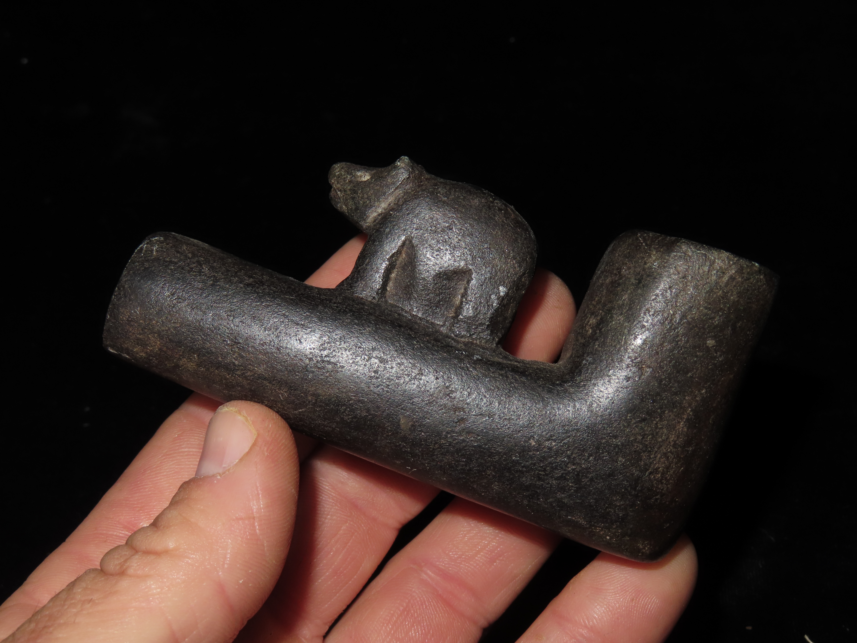 4 1/4″ Bear Effigy adorned Elbow Pipe ***REPRODUCTION***